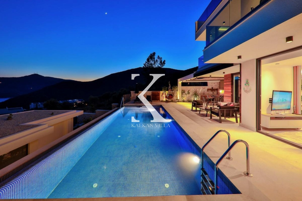 Villa Eos Kalamar is a luxury holiday villa located within walking distance to the city center, with its modern design and comfortable living spaces. With 3 bedrooms and a capacity of 6 people, this villa is within walking distance to markets, restaurants, entertainment venues and the beach. Kalkan’s nightlife and enchanting sea offer an unforgettable holiday experience in this villa.