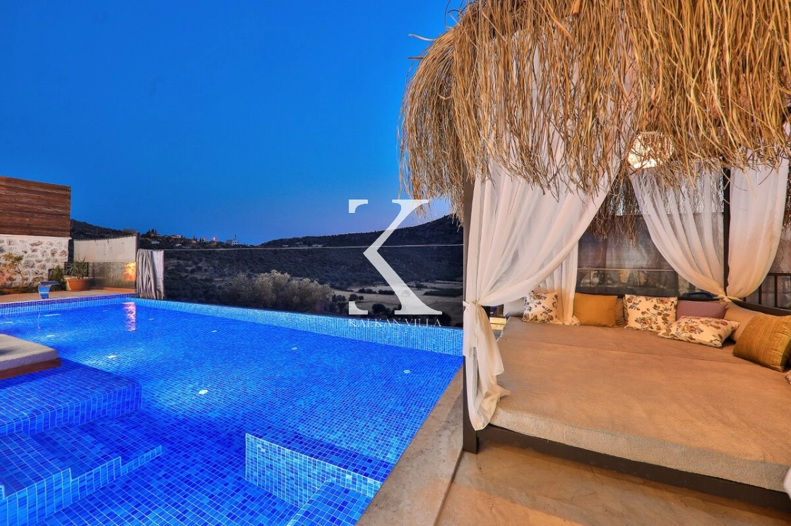 Villa Glorious is a special holiday villa located in the Ulugöl region of Kalkan, which stands out with its peaceful atmosphere surrounded by nature. With its 2 bedrooms and capacity for 4 people, it offers luxurious and modern accommodation for honeymooners or small families.
