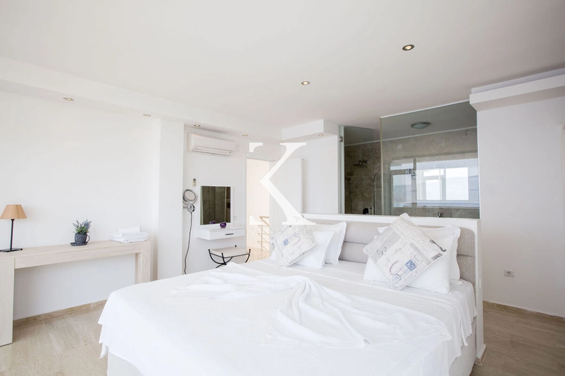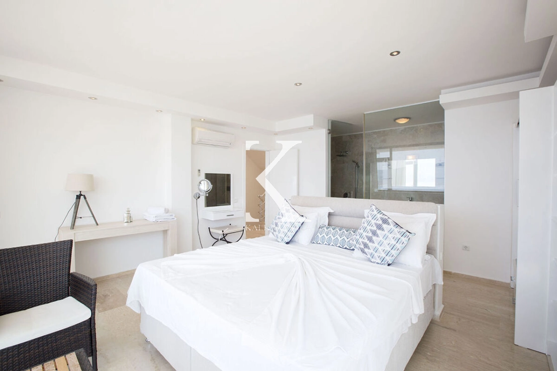 One of the most outstanding features of the villa is its uninterrupted sea and nature views. You can enjoy the stunning shades of the Mediterranean during the day and experience unforgettable sunsets in the evening.