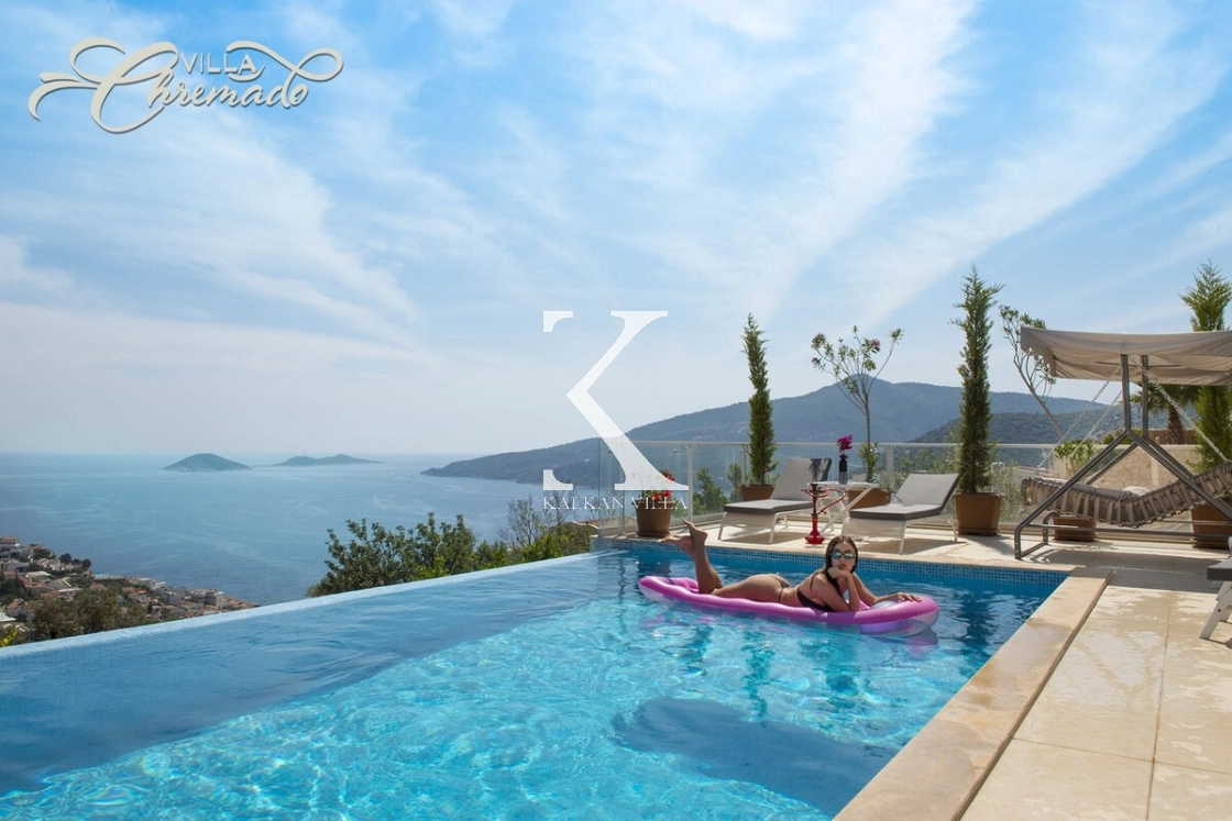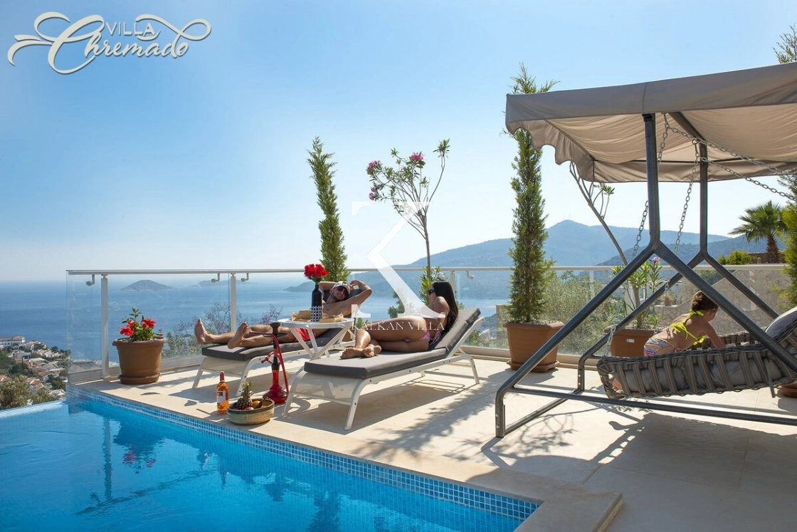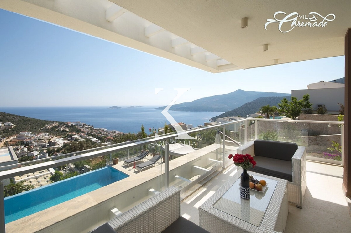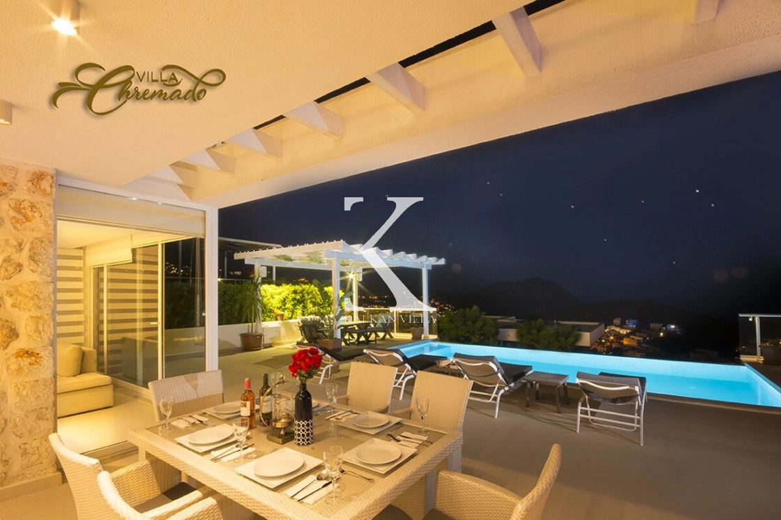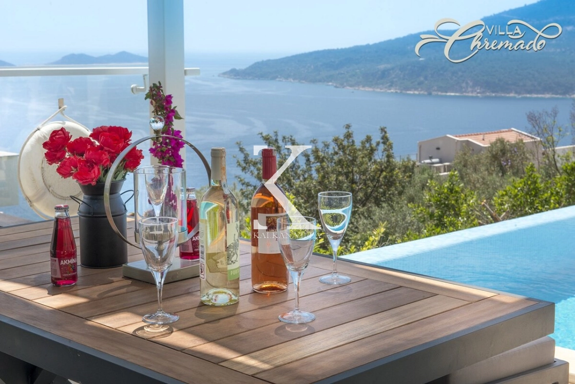 Located in Kalamar Bay, Kalkan, Villa Chremado is a stylish private holiday villa offering breathtaking sea and nature views.