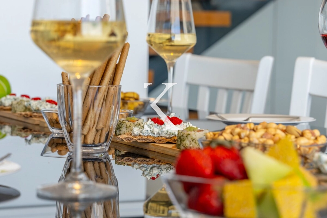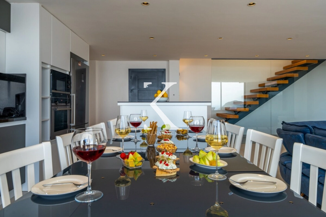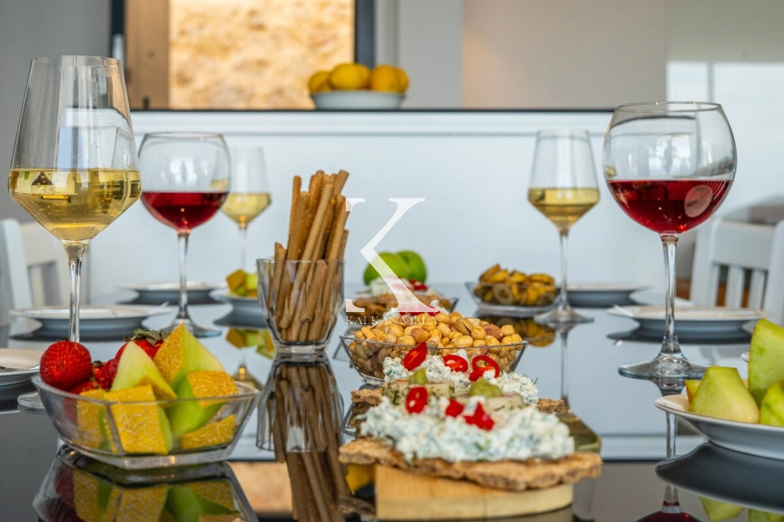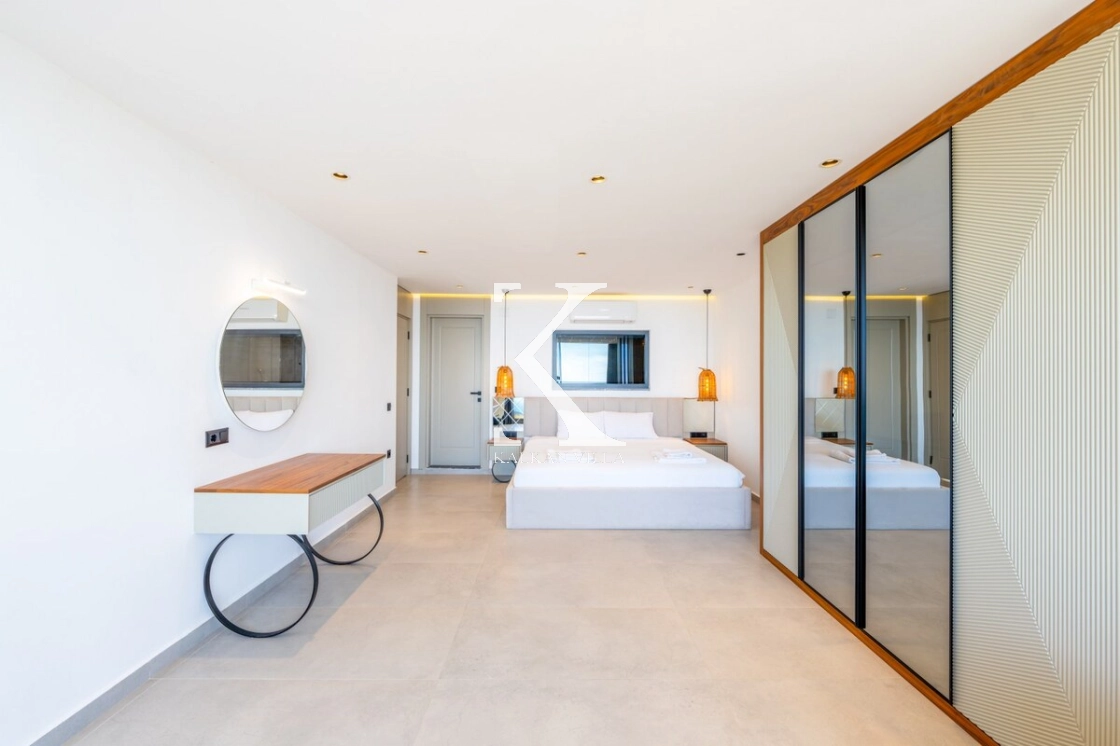 In the villa’s sea-view terrace and garden, you will find an infinity pool, sun loungers, outdoor dining table and BBQ area. Every detail has been carefully considered so that you can spend enjoyable and memorable moments with your loved ones. To make the most of the impressive view and sunlight, large windows and wide glass panels have been used throughout the villa, allowing all rooms to benefit from the natural light and scenery.