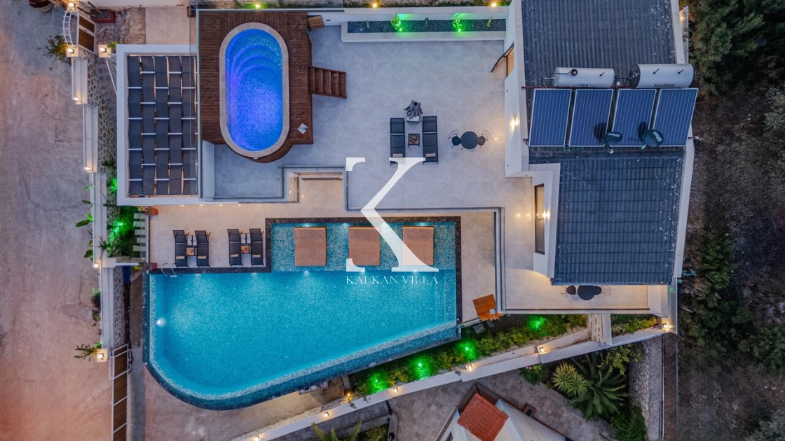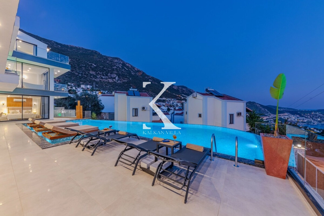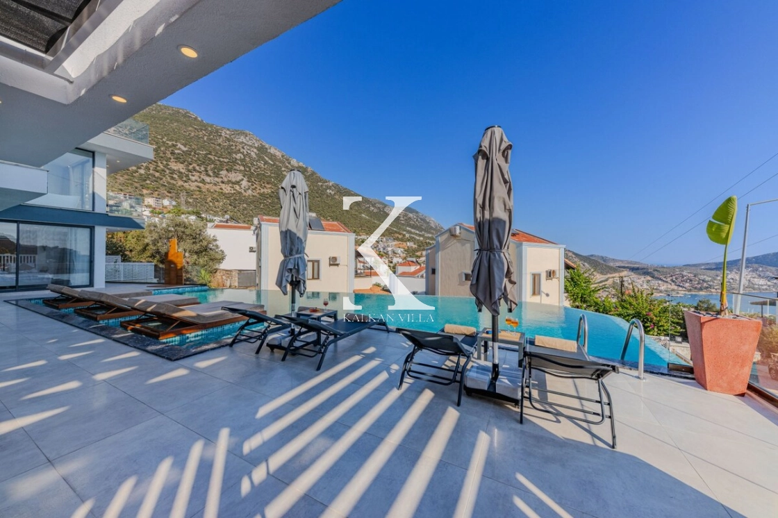 Villa Emporium is a luxurious holiday villa located in the prestigious Kızıltaş area of Kalkan, offering a perfect combination of elegance, comfort, and breathtaking views. Within walking distance to Kalkan center, this exclusive villa provides 5 bedrooms and accommodation capacity for up to 10 guests, making it an ideal choice for large families and groups of friends.