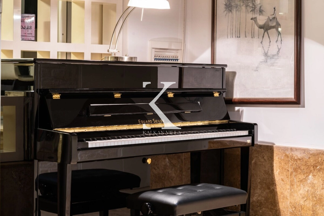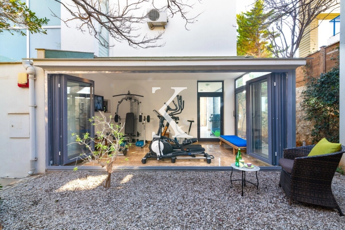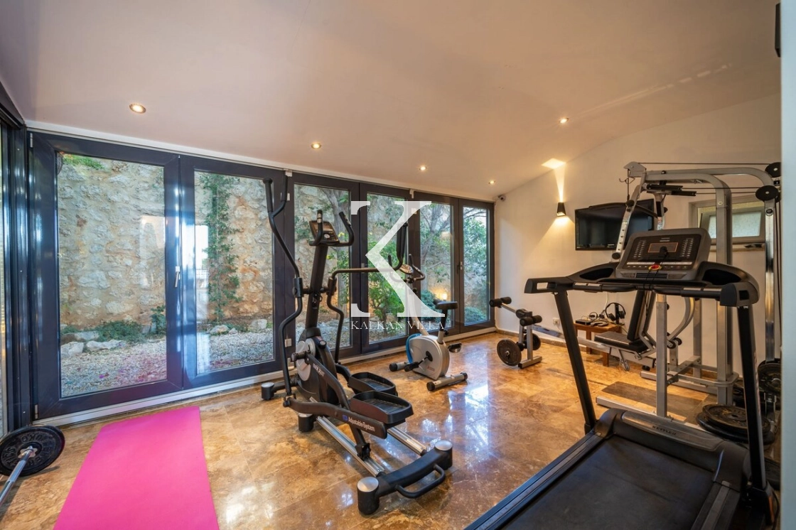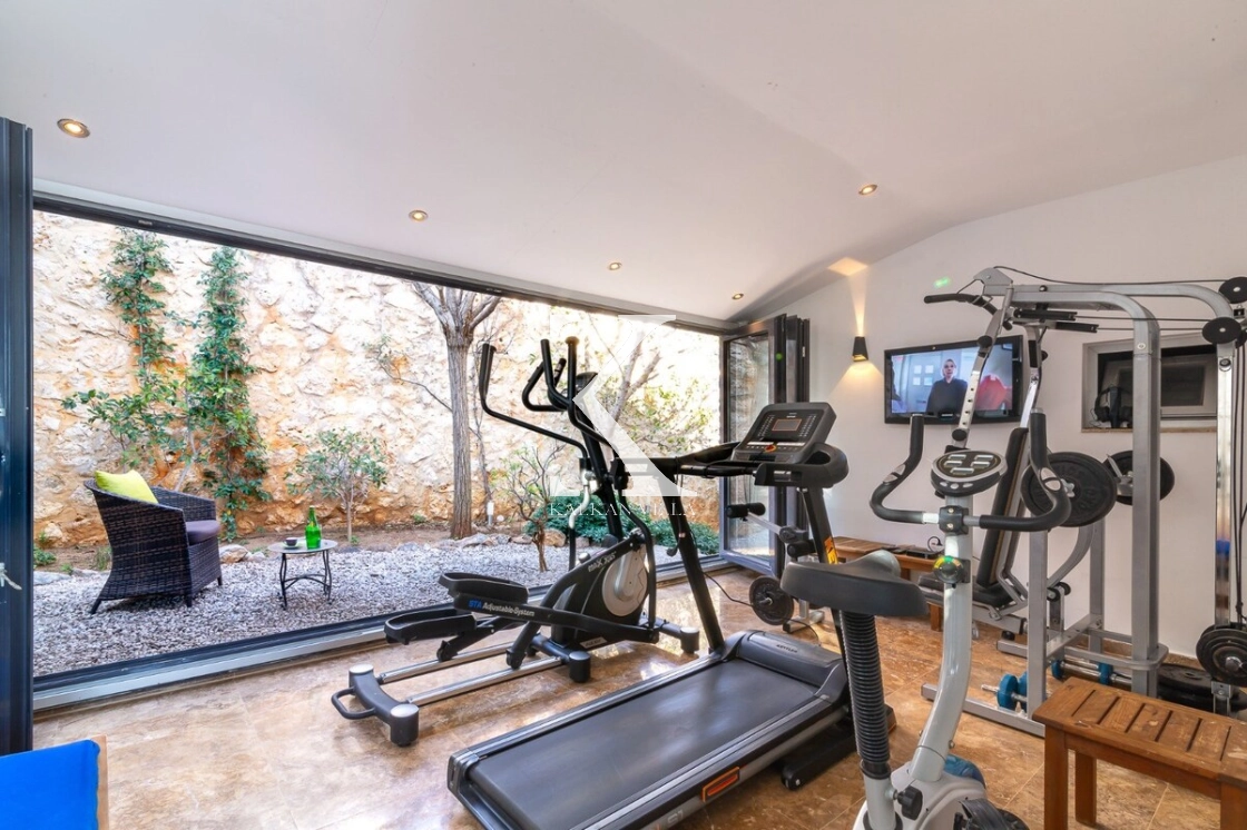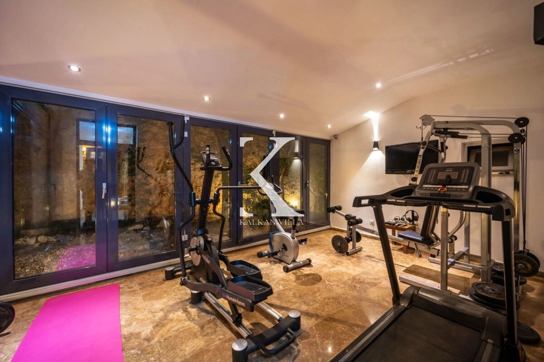 The villa also includes a private fitness area equipped with sports equipment, allowing guests to maintain an active lifestyle during their stay.