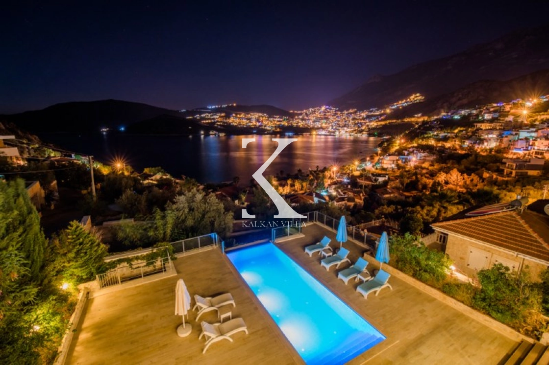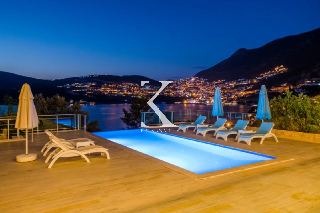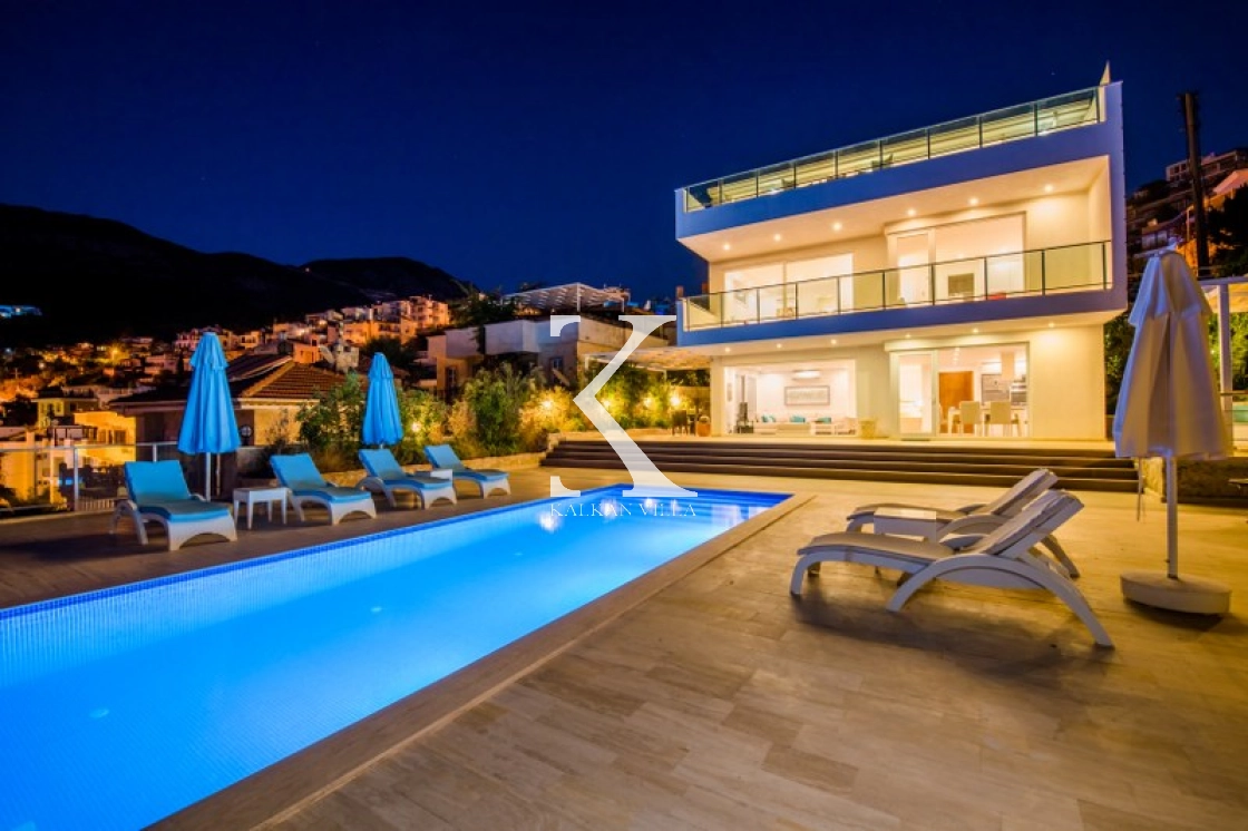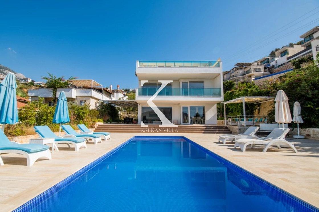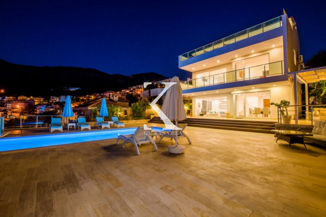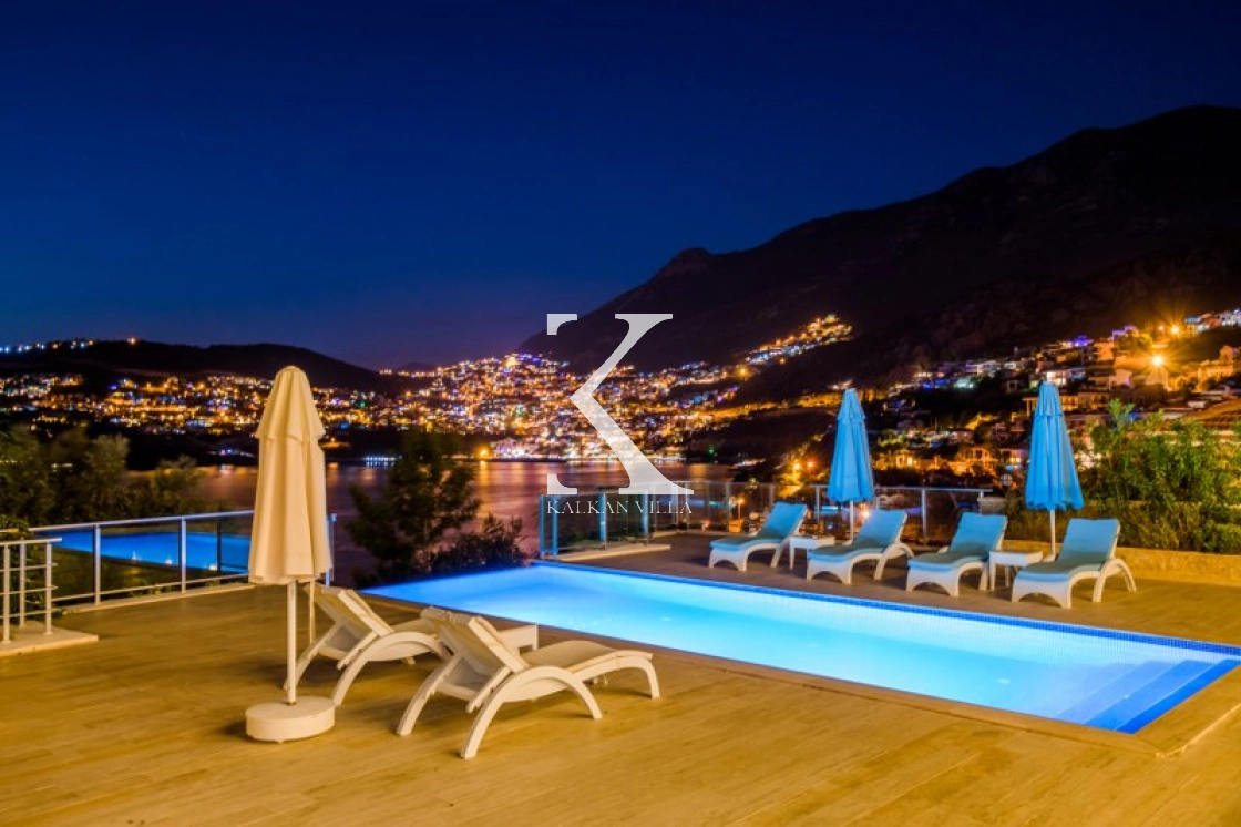 Located in Kışla, one of Kalkan’s most exclusive areas, just 500 meters from the sea, this modern 3-bedroom villa sleeps up to 6 people. Enjoy moments of relaxation overlooking the Mediterranean Sea on its infinity pool and large terrace with sun loungers, a seating area, a BBQ, and a dining table.