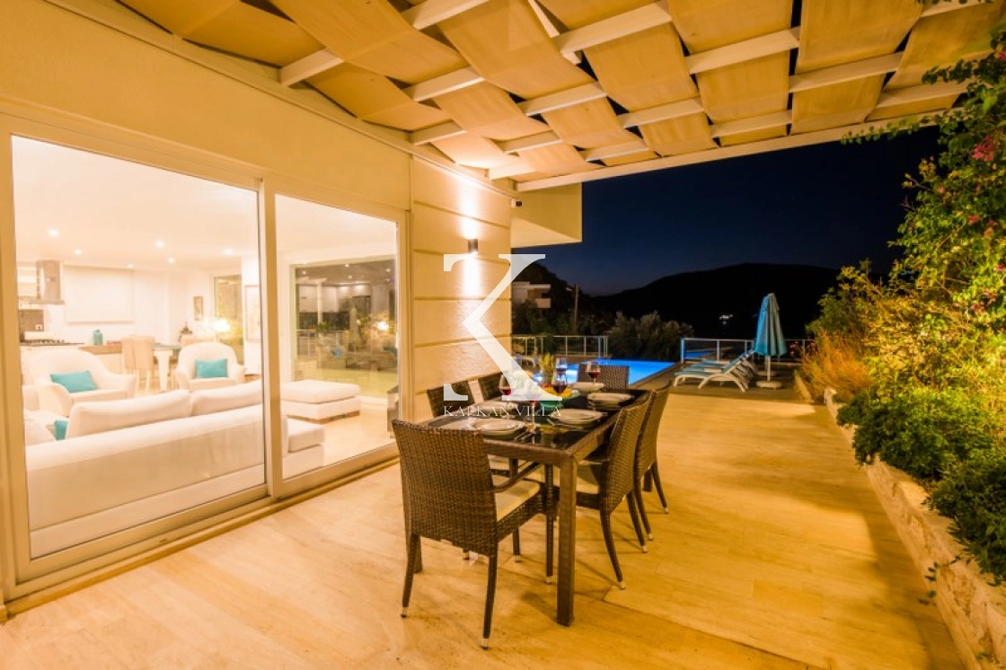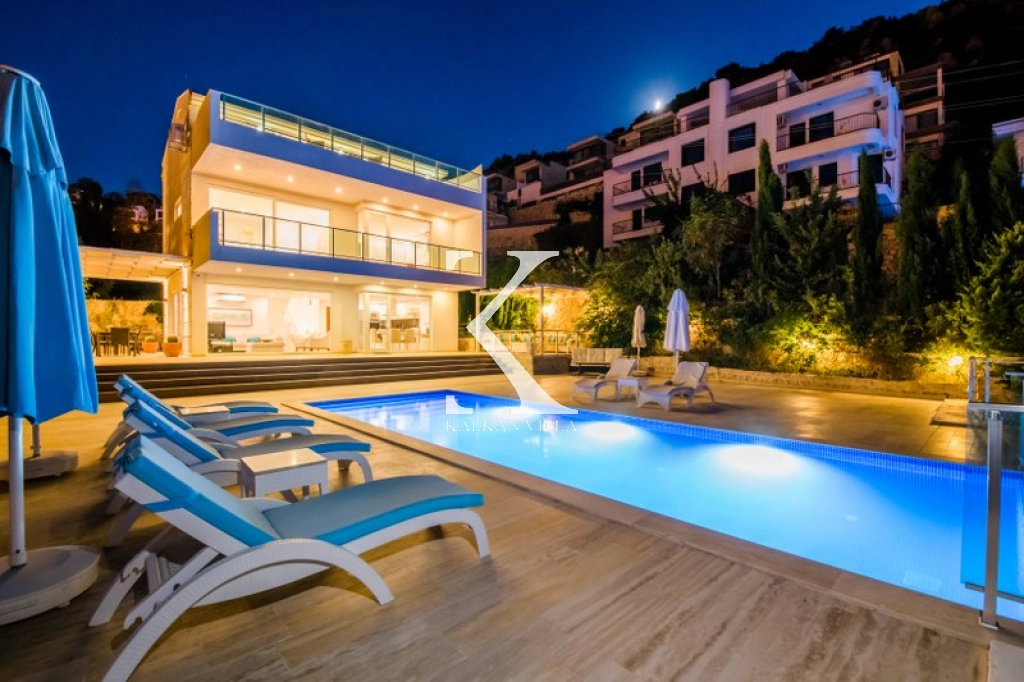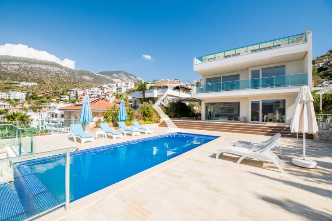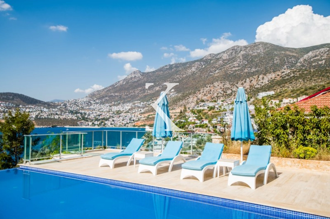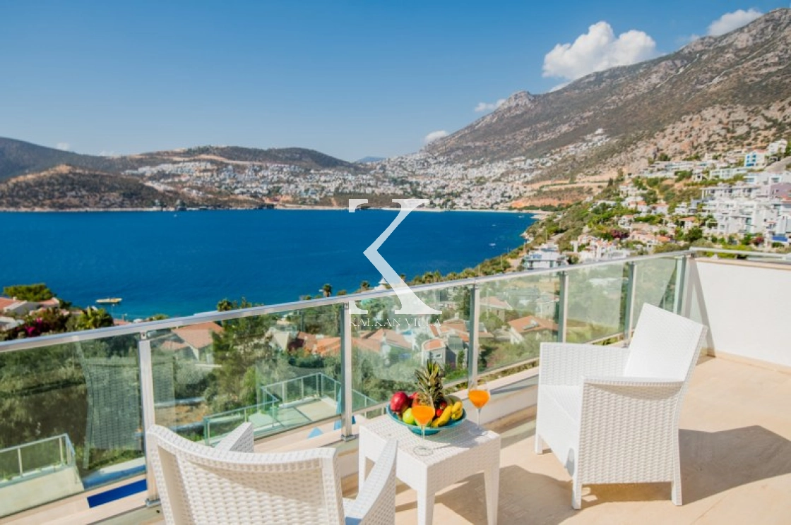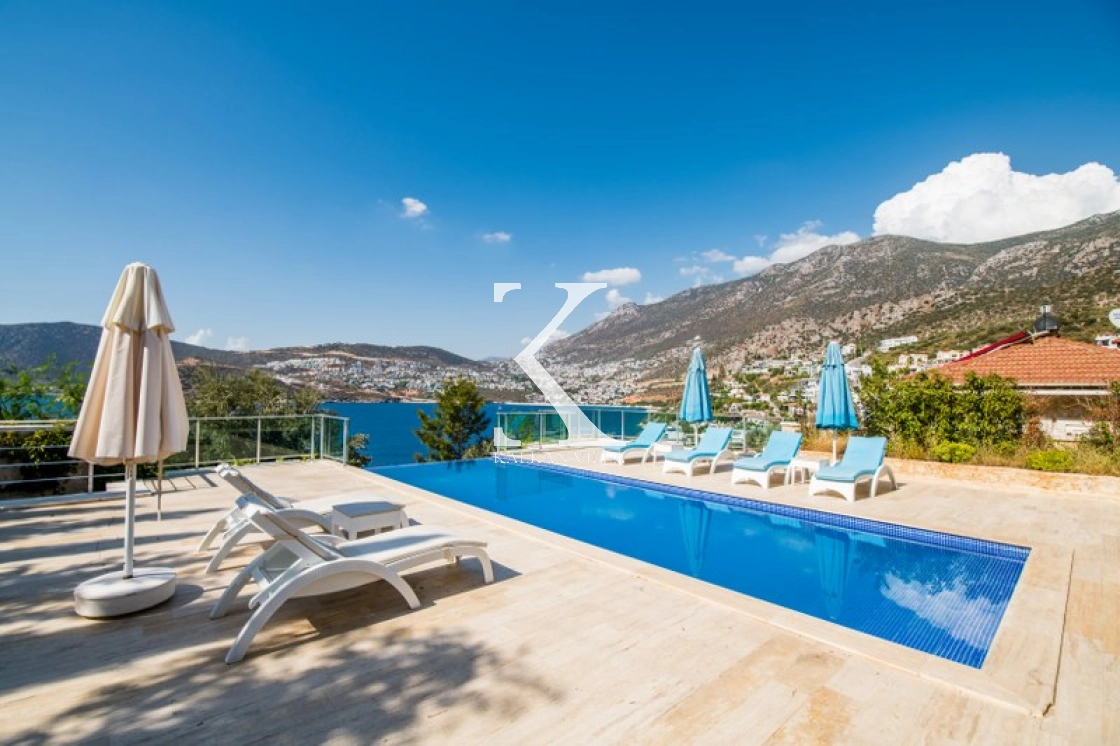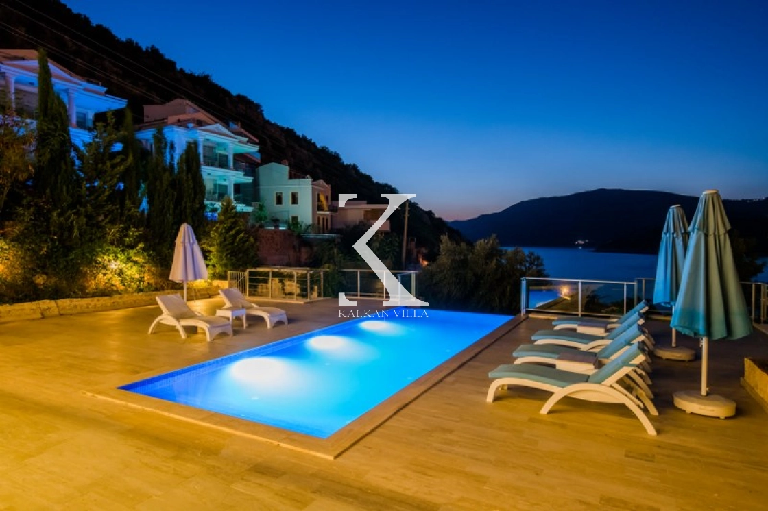 Located in Kışla, one of Kalkan’s most exclusive areas, just 500 meters from the sea, this modern 3-bedroom villa sleeps up to 6 people. Enjoy moments of relaxation overlooking the Mediterranean Sea on its infinity pool and large terrace with sun loungers, a seating area, a BBQ, and a dining table.