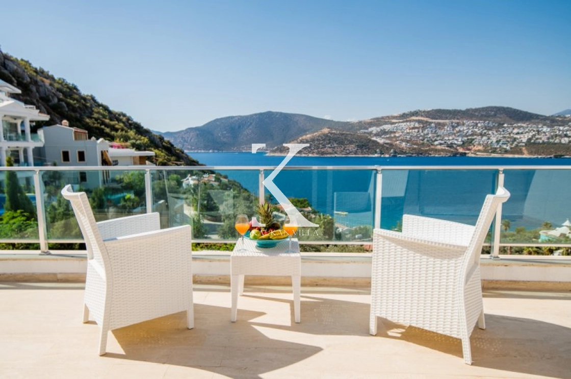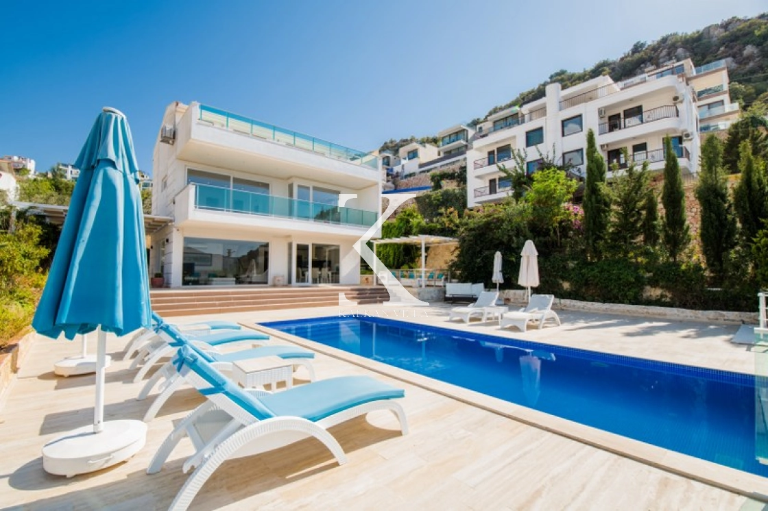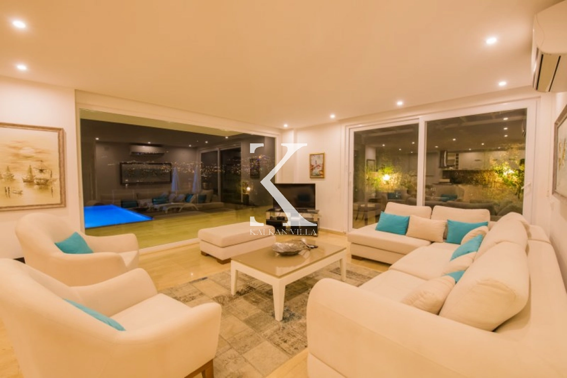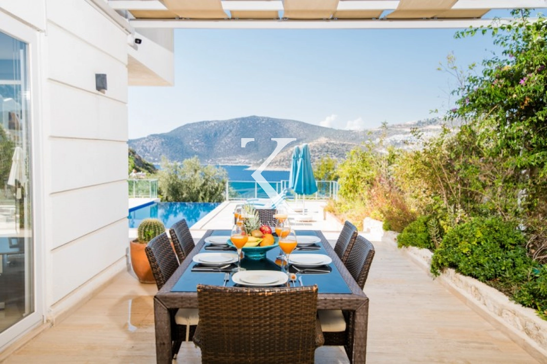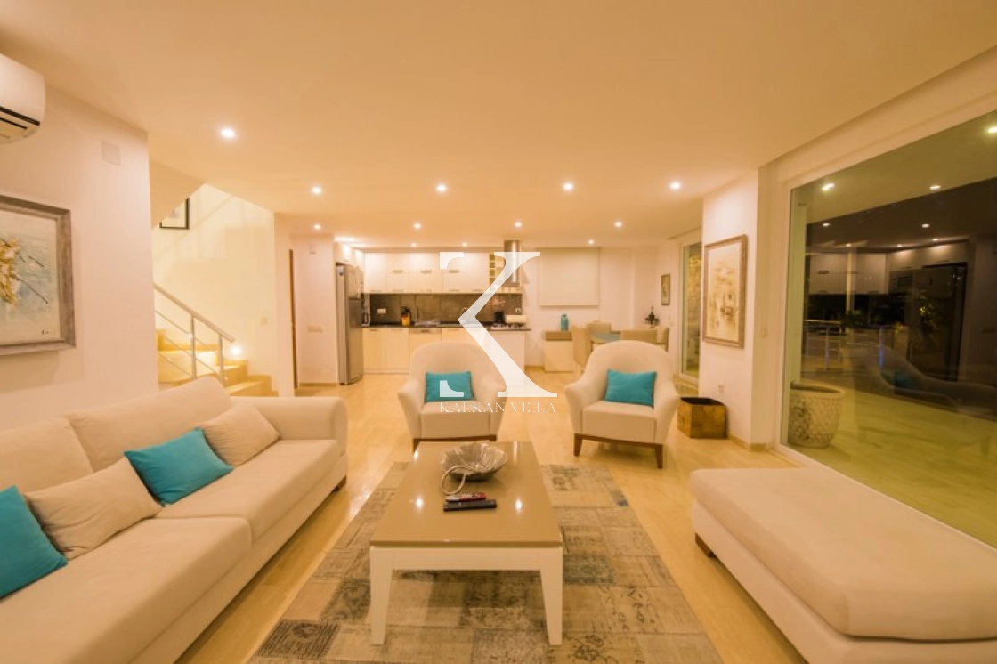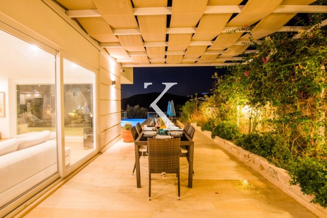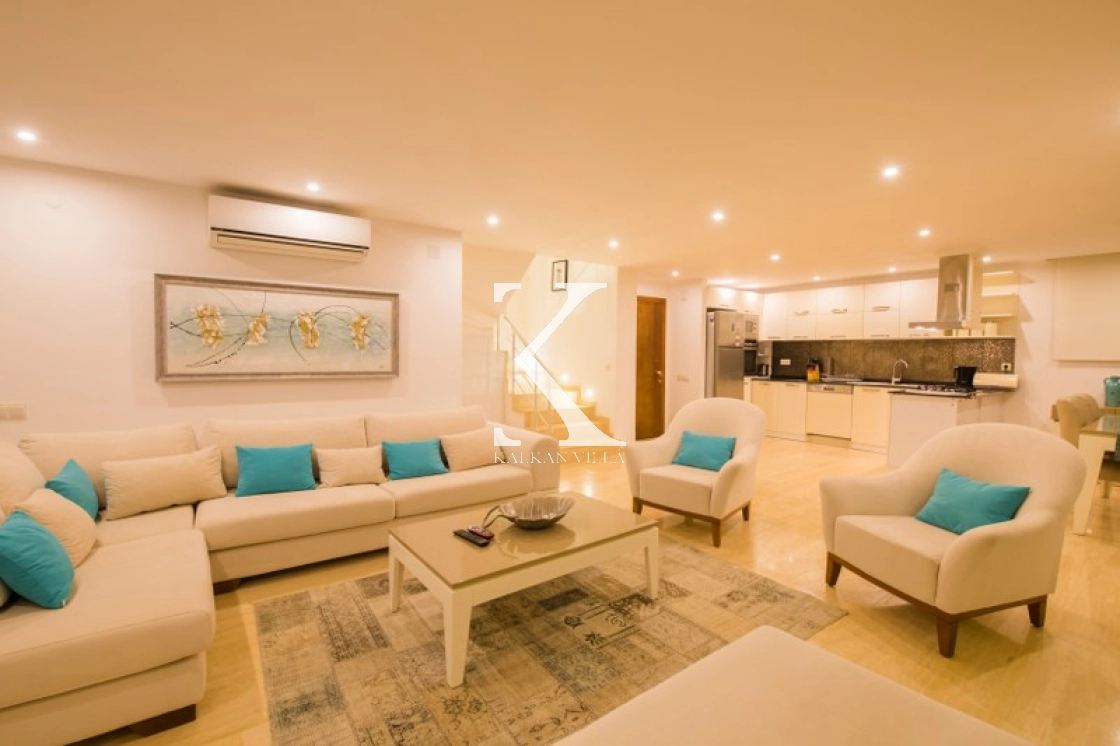 Located in Kışla, one of Kalkan’s most exclusive areas, just 500 meters from the sea, this modern 3-bedroom villa sleeps up to 6 people. Enjoy moments of relaxation overlooking the Mediterranean Sea on its infinity pool and large terrace with sun loungers, a seating area, a BBQ, and a dining table.