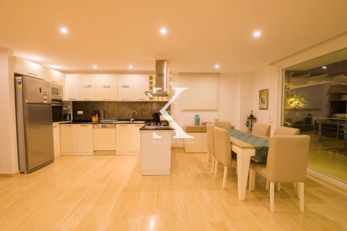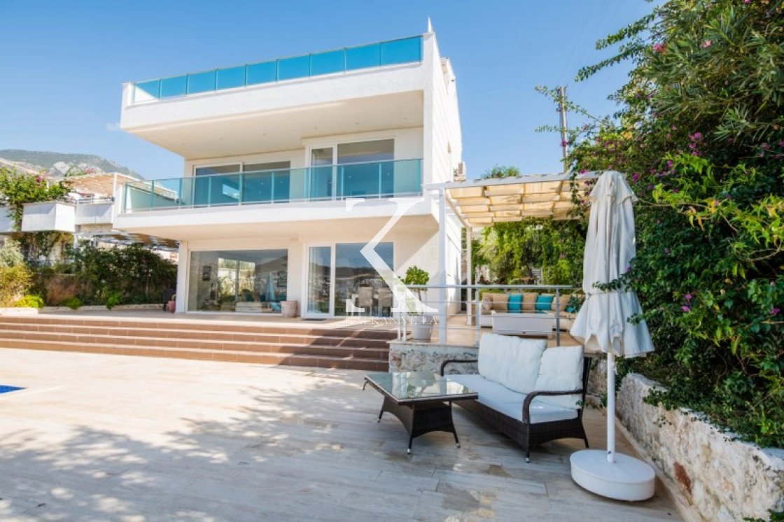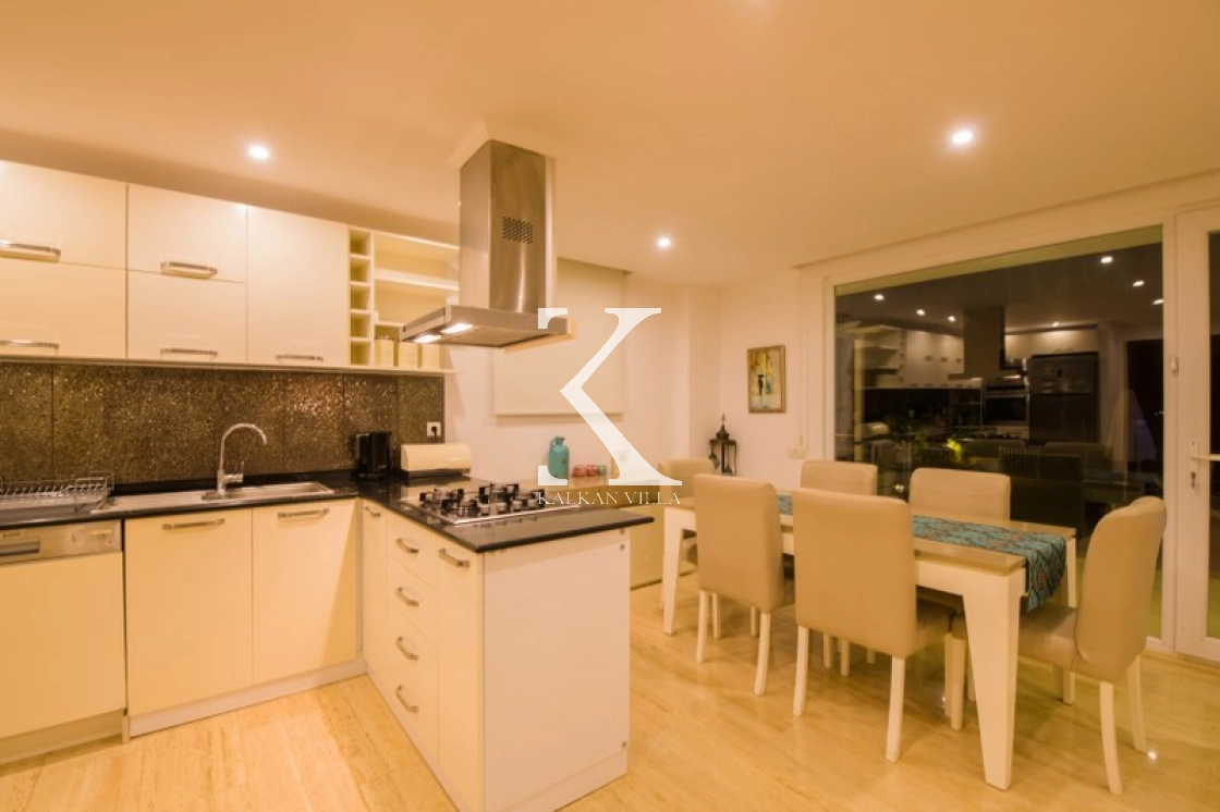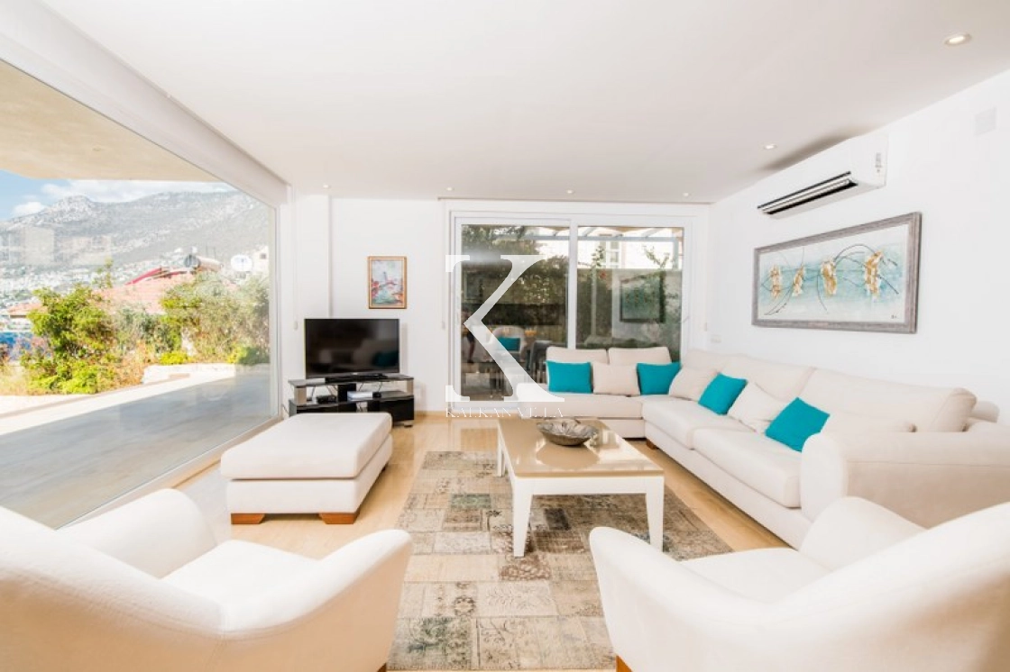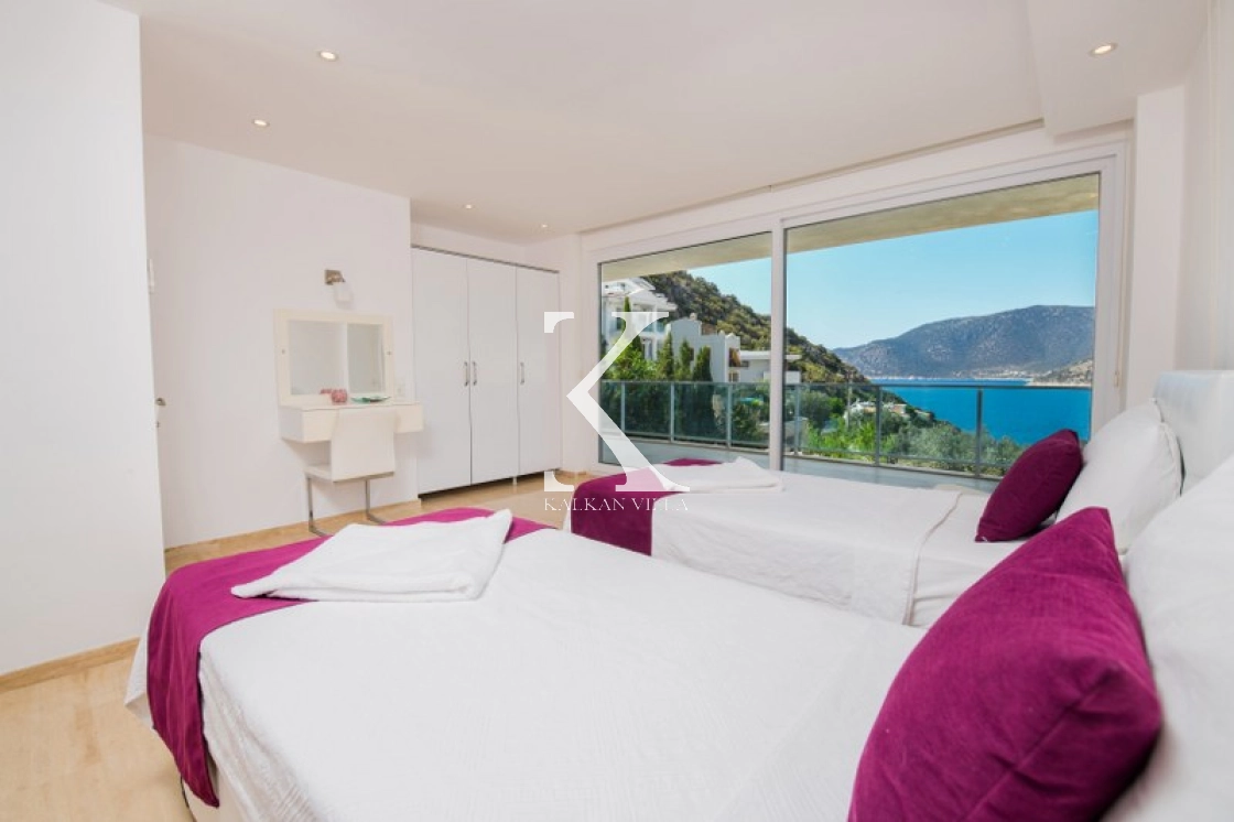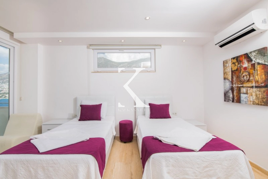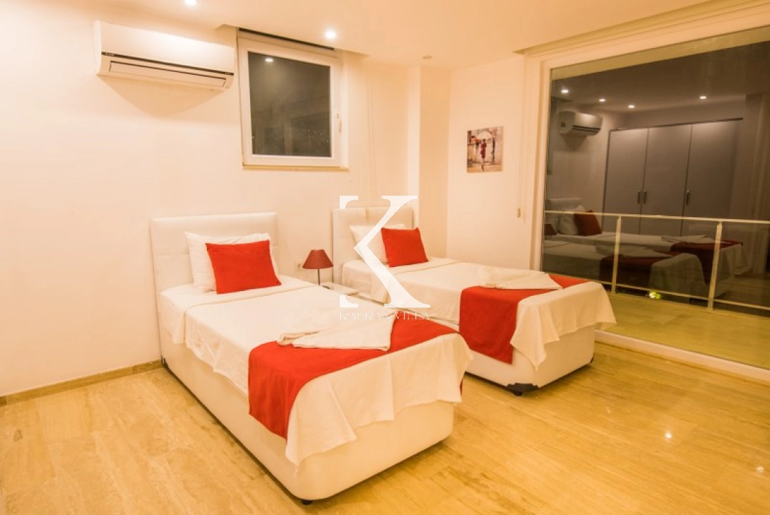 Located in Kışla, one of Kalkan’s most exclusive areas, just 500 meters from the sea, this modern 3-bedroom villa sleeps up to 6 people. Enjoy moments of relaxation overlooking the Mediterranean Sea on its infinity pool and large terrace with sun loungers, a seating area, a BBQ, and a dining table.