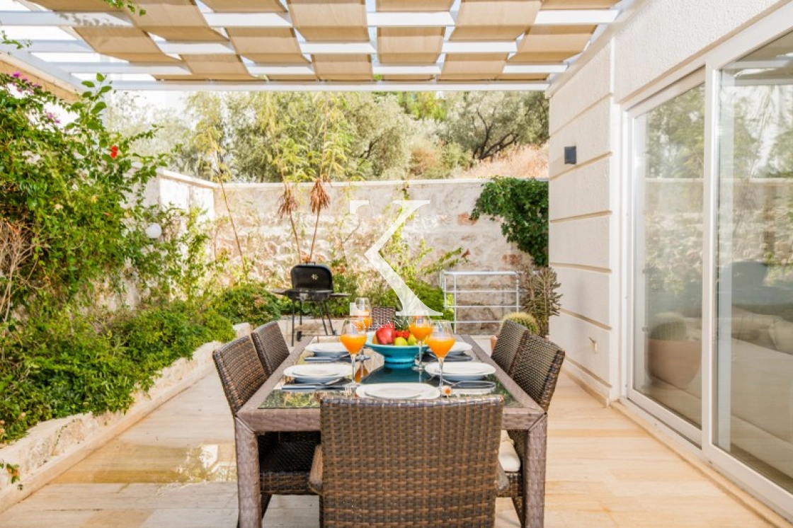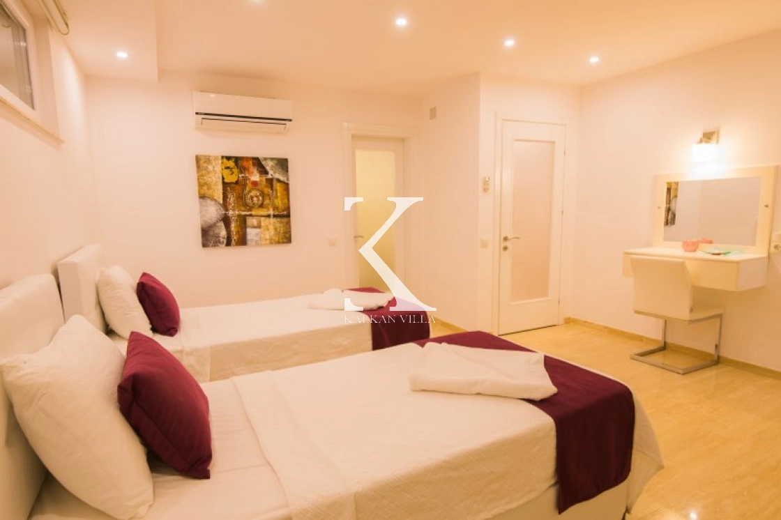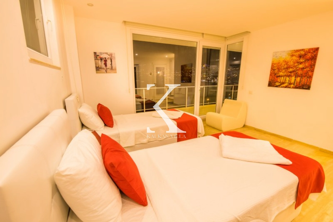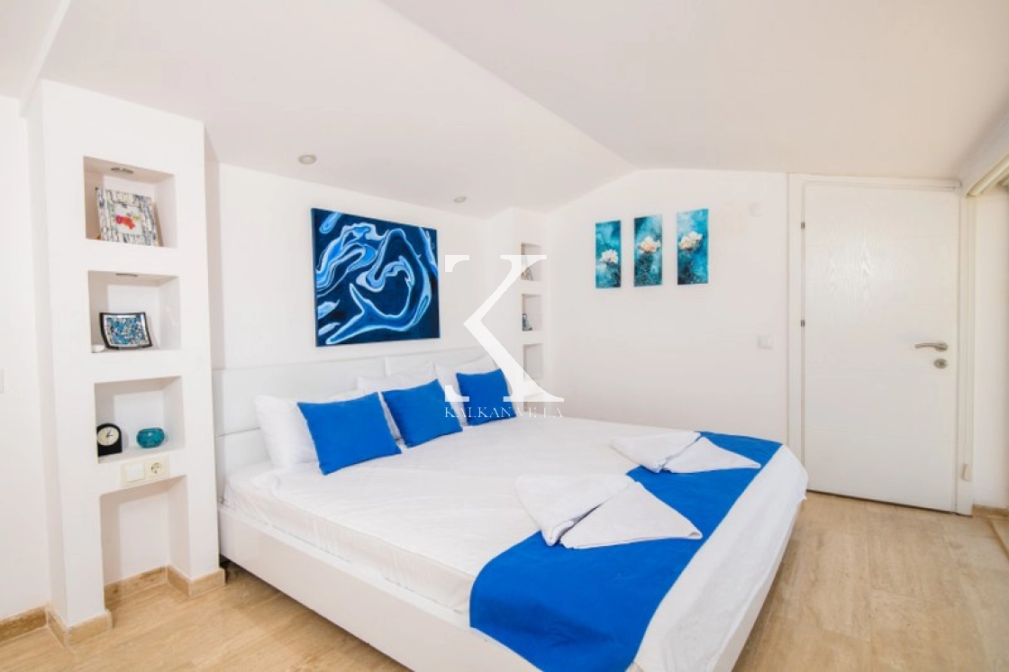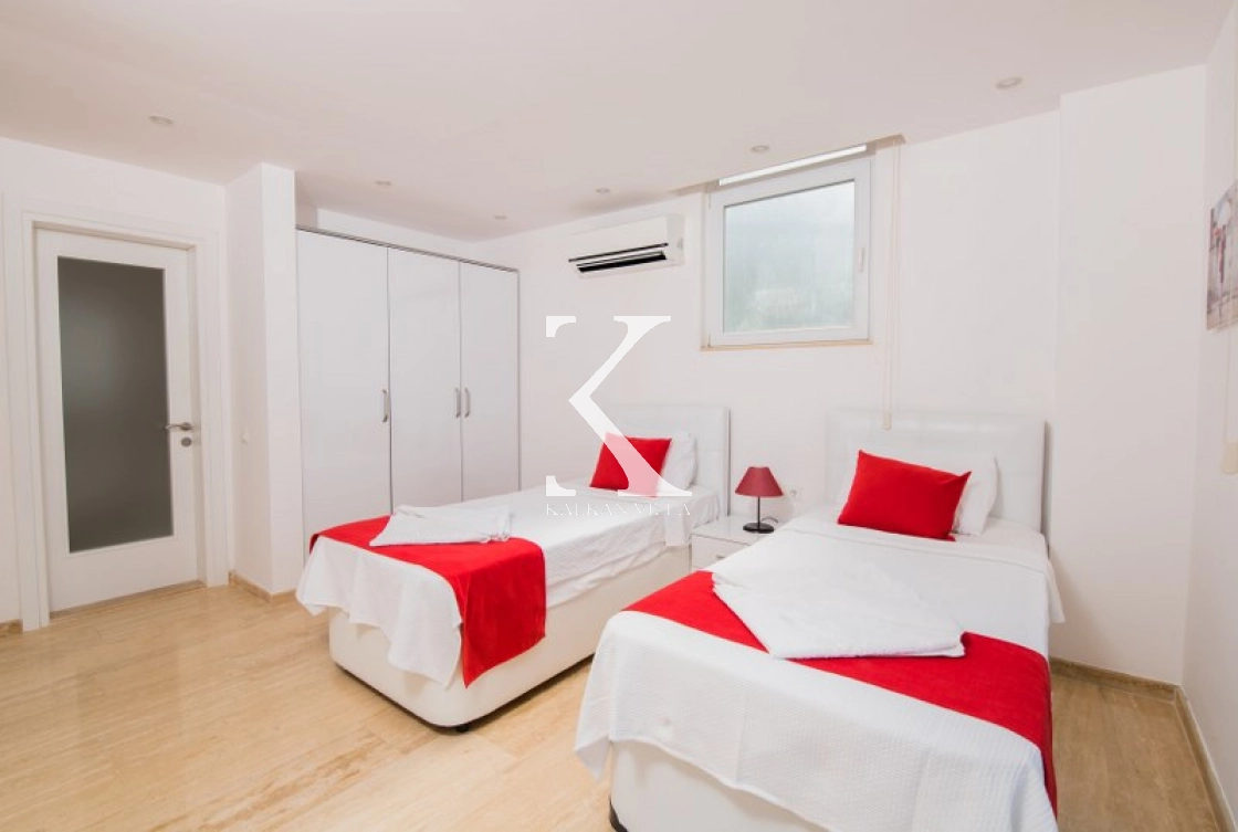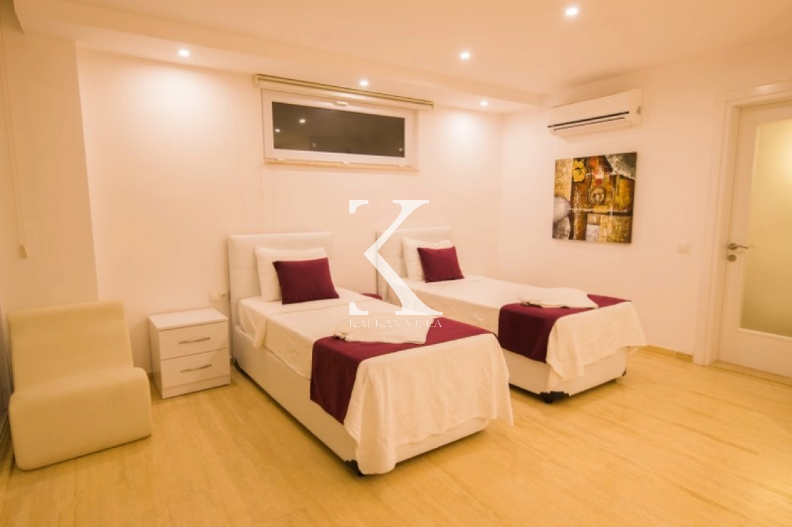Located in Kışla, one of Kalkan’s most exclusive areas, just 500 meters from the sea, this modern 3-bedroom villa sleeps up to 6 people. Enjoy moments of relaxation overlooking the Mediterranean Sea on its infinity pool and large terrace with sun loungers, a seating area, a BBQ, and a dining table.