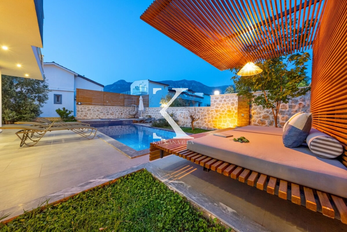 Villa Lalin is a luxury holiday villa located in the popular Kalamar area of Kalkan, offering a perfect combination of modern architecture and stylish design. With 3 bedrooms and a capacity of up to 6 guests, the villa is an ideal accommodation option for families and groups of friends.