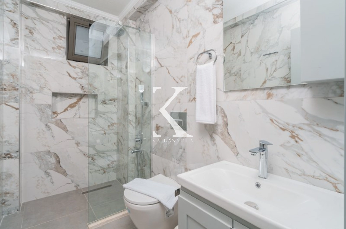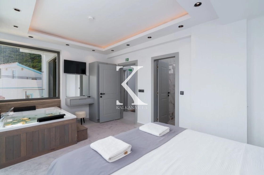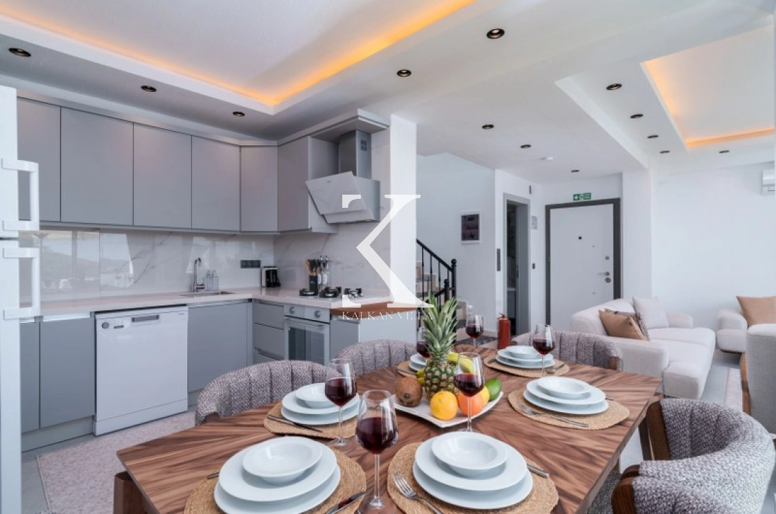 Villa Laren is a 6-person holiday villa with partial sea view, located in central Kalkan. It is an ideal choice for large families and groups of friends, offering a comfortable layout, modern design and a central location close to amenities.