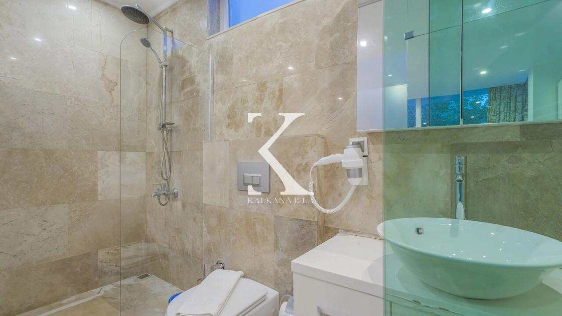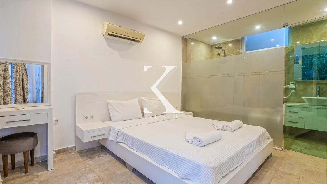 All bedrooms in the villa are air-conditioned and feature en-suite bathrooms, ensuring maximum comfort and privacy. Some rooms open onto sea-view balconies, allowing you to wake up to breathtaking Mediterranean views every morning.