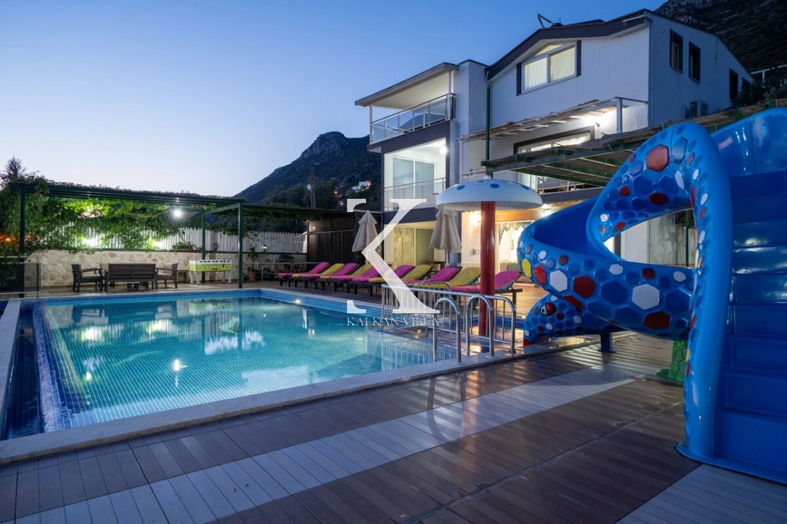 Located in the beautiful Kördere area of Kalkan, where nature meets the sea, Villa Akca is a spacious holiday villa with 7 bedrooms and a capacity for up to 14 guests, making it an excellent choice for large families and groups of friends.