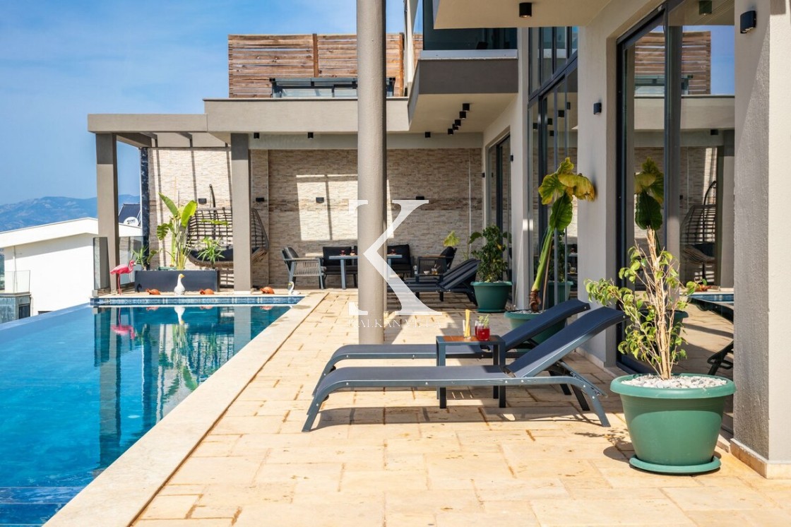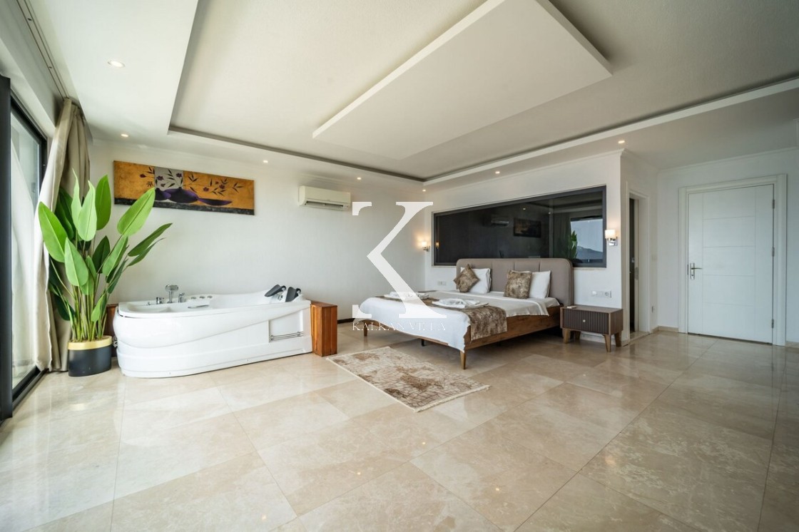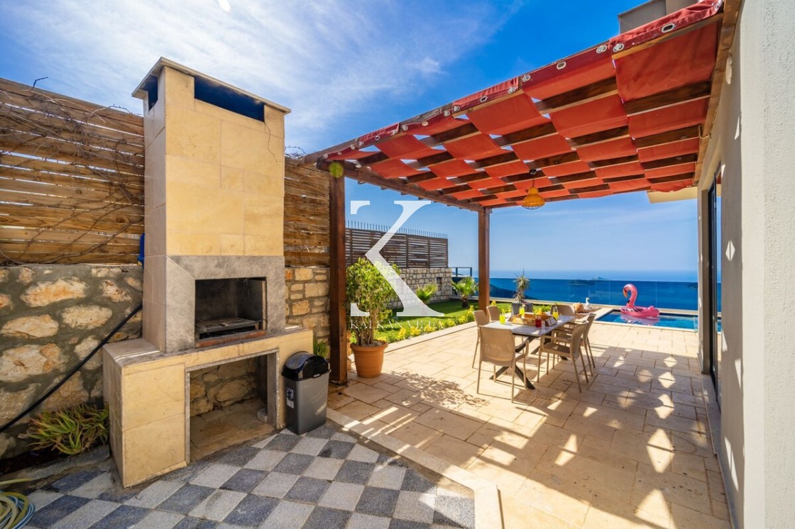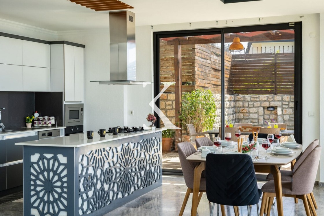 A luxurious 3-bedroom villa nestled in nature with panoramic sea views, sleeping up to 6 people. With privileges like an infinity pool, Turkish bath, sauna, and jacuzzi, it offers peace and comfort. The partially secluded structure of the pool terrace makes it suitable for discerning families and honeymooners.