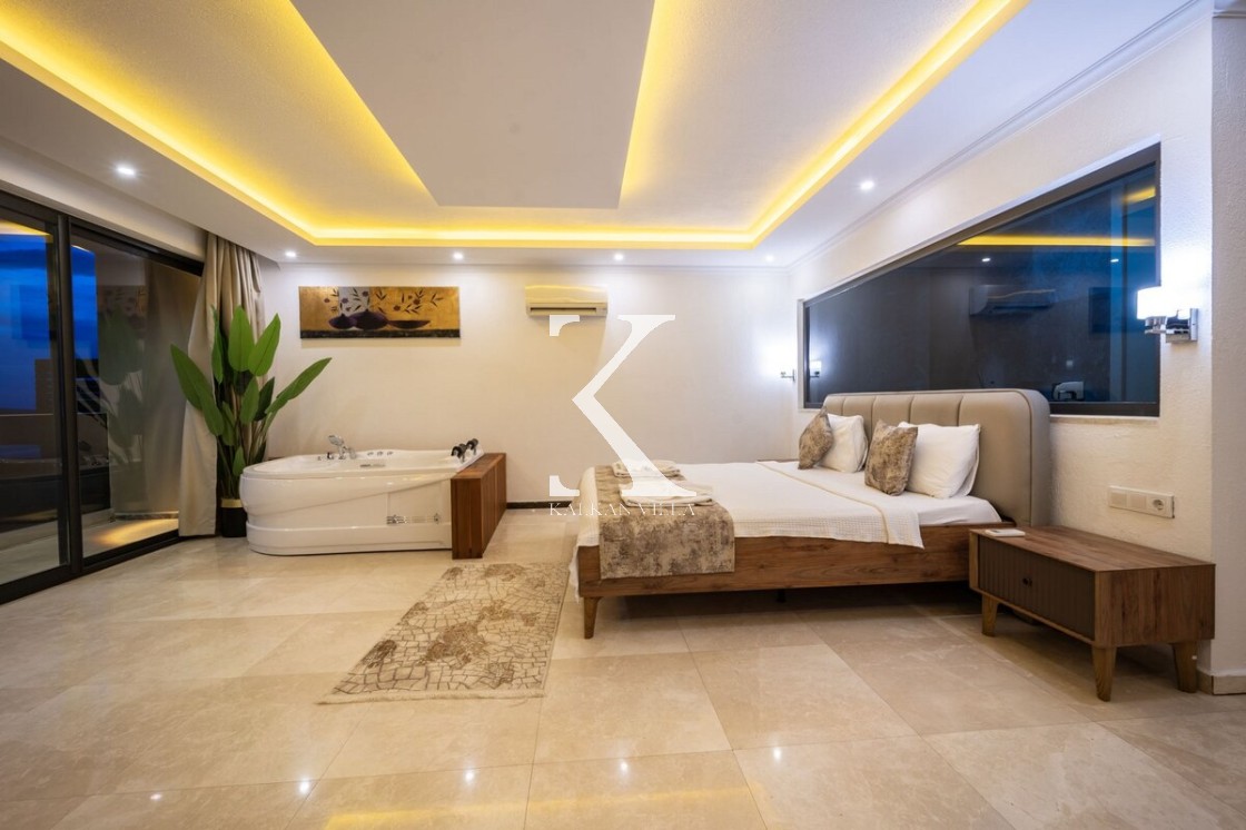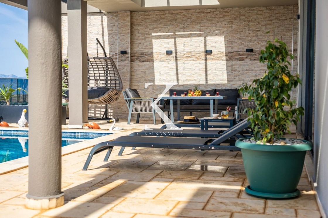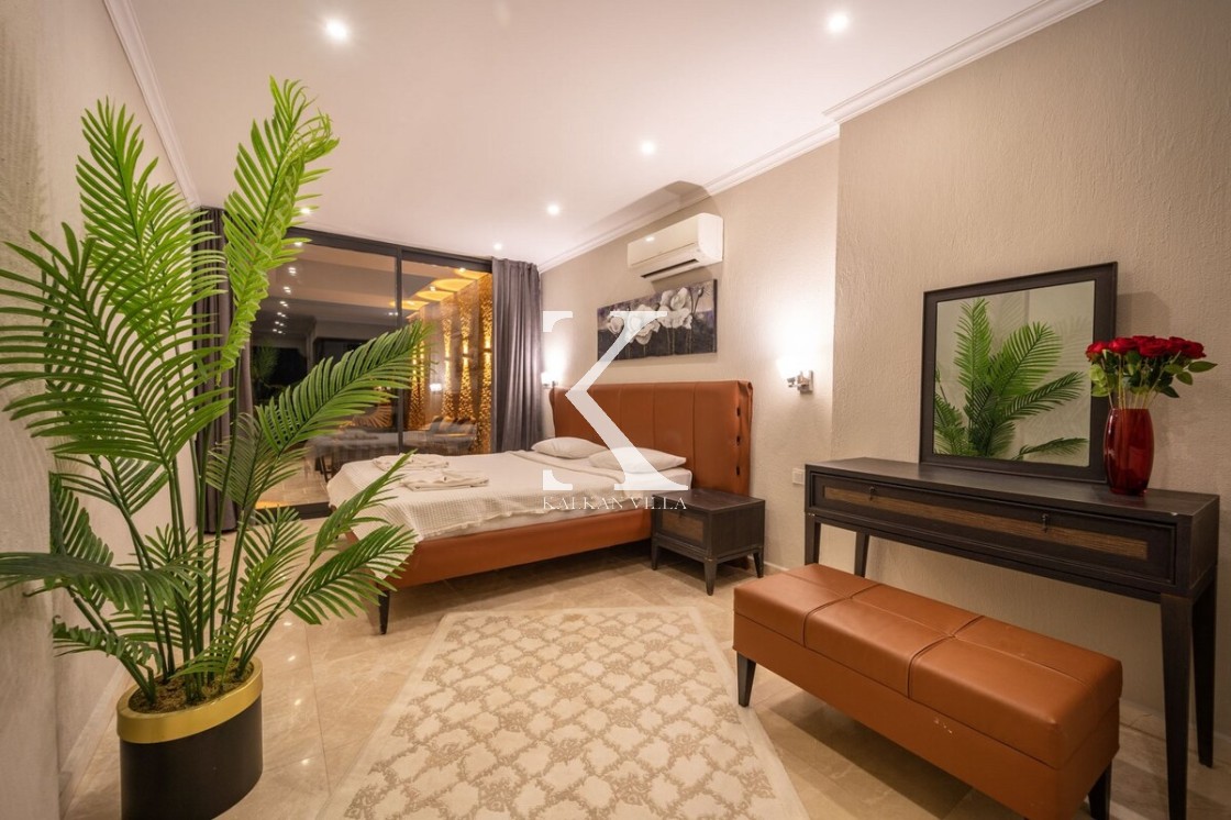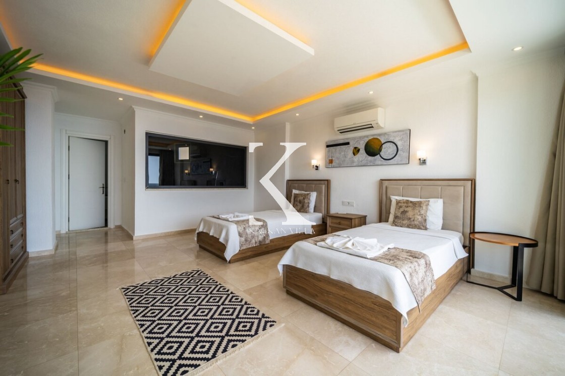 A luxurious 3-bedroom villa nestled in nature with panoramic sea views, sleeping up to 6 people. With privileges like an infinity pool, Turkish bath, sauna, and jacuzzi, it offers peace and comfort. The partially secluded structure of the pool terrace makes it suitable for discerning families and honeymooners.