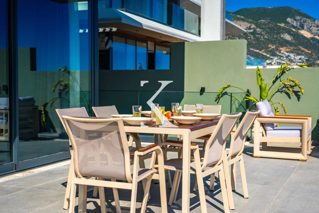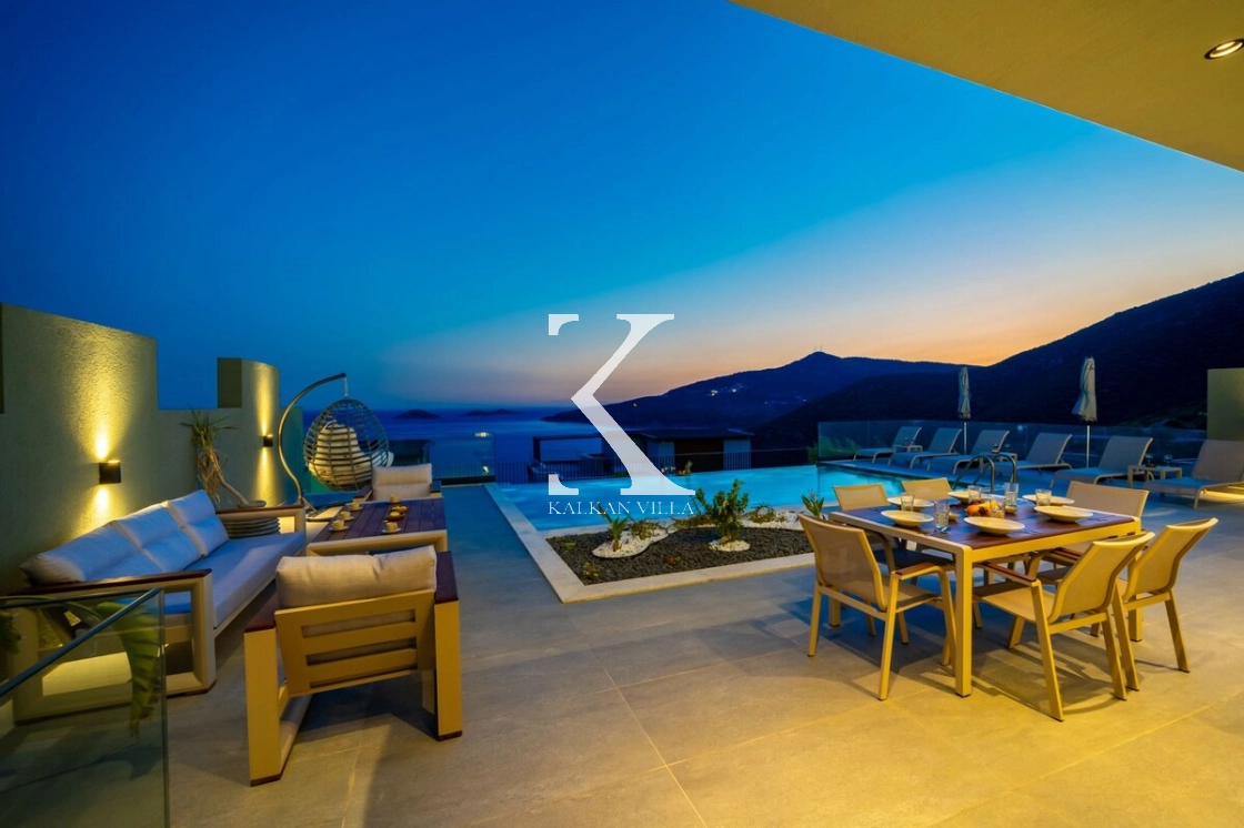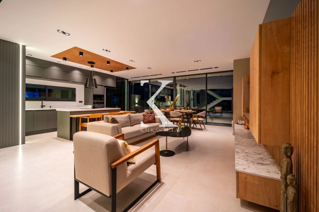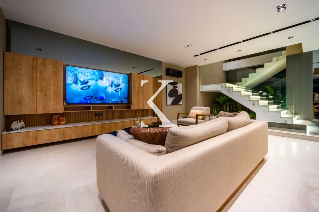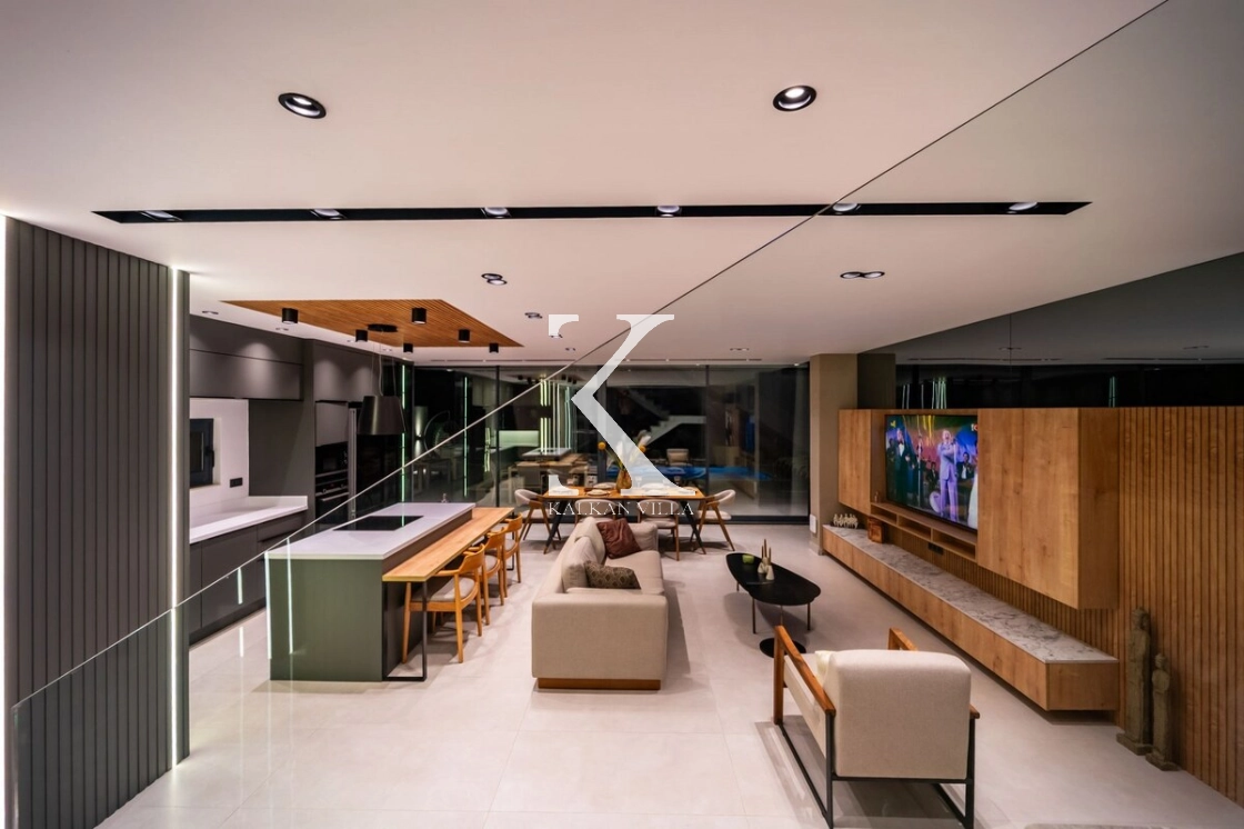 Villa Aura F is a modern holiday villa located in the popular Kalamar area of Kalkan, offering a stunning sea and islands view from almost every room. With its contemporary architecture, bright interiors and proximity to the town centre, it is a perfect choice for families and groups of friends.