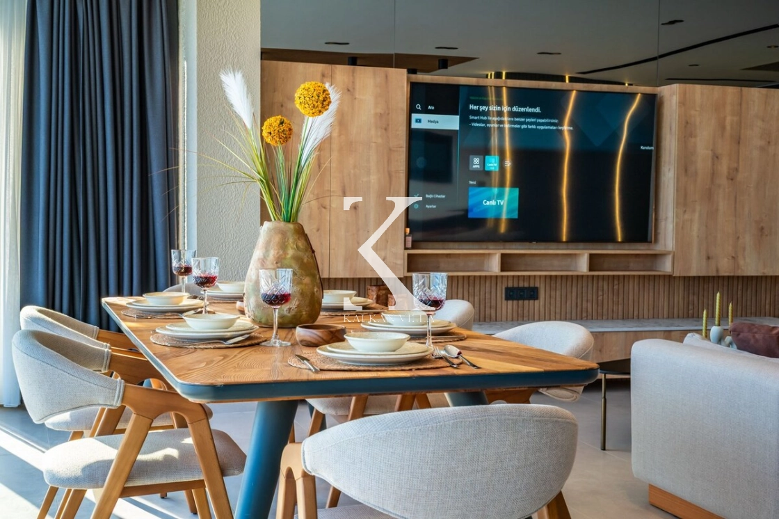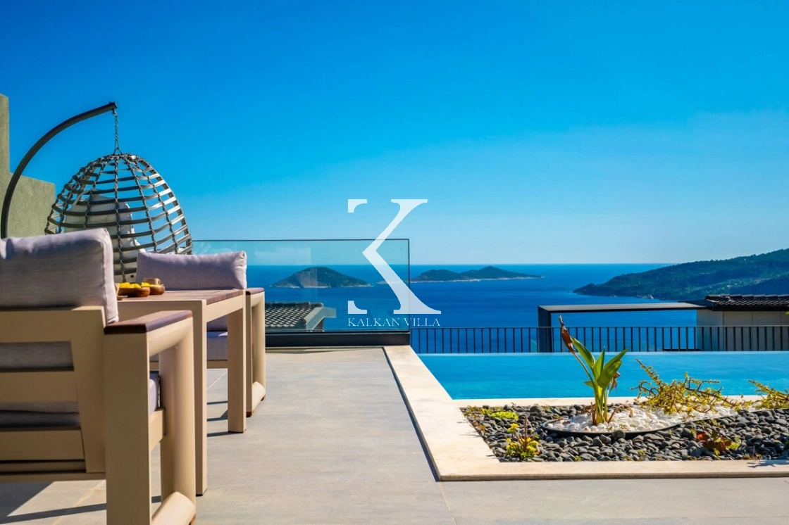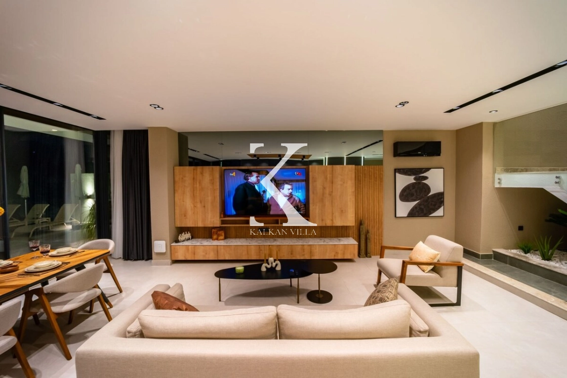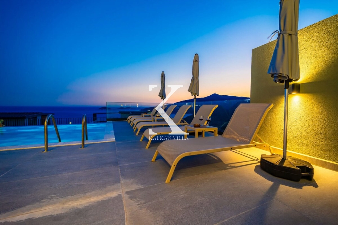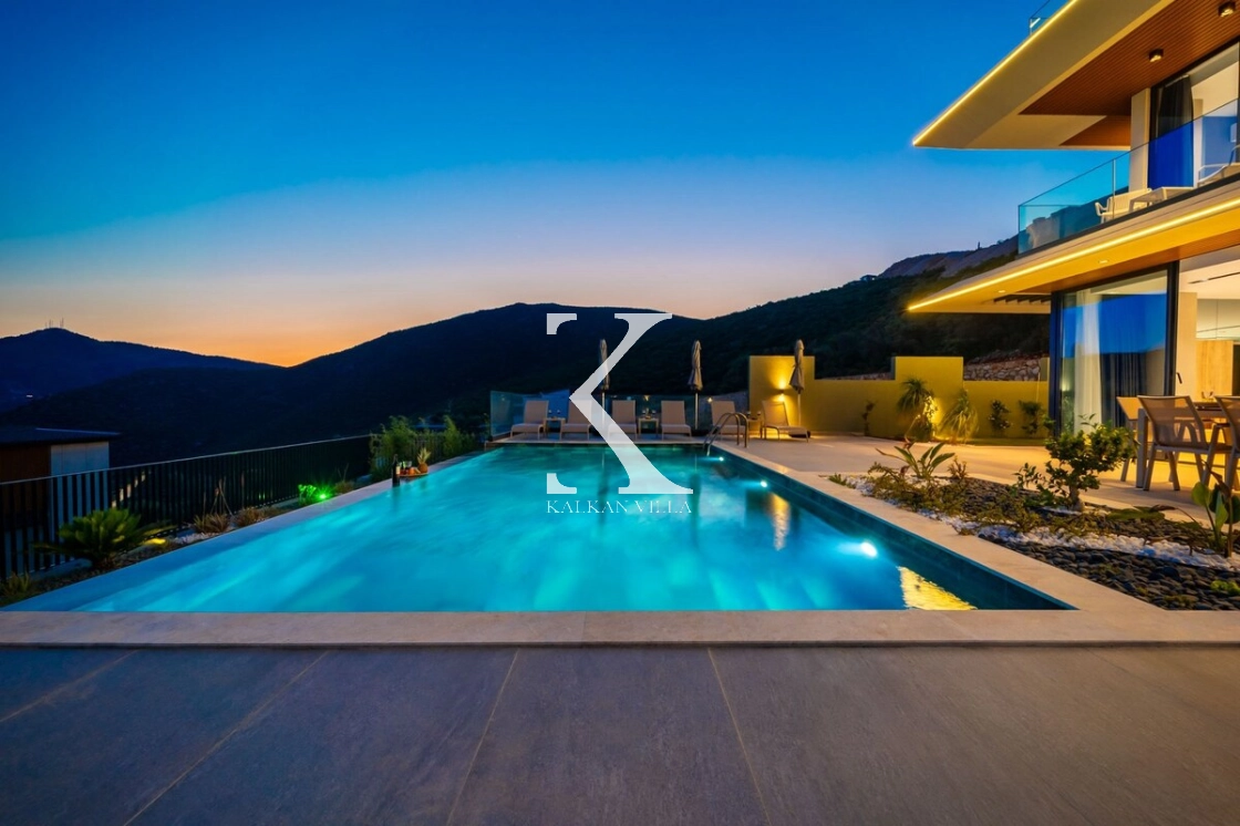 Villa Aura F is a modern holiday villa located in the popular Kalamar area of Kalkan, offering a stunning sea and islands view from almost every room. With its contemporary architecture, bright interiors and proximity to the town centre, it is a perfect choice for families and groups of friends.