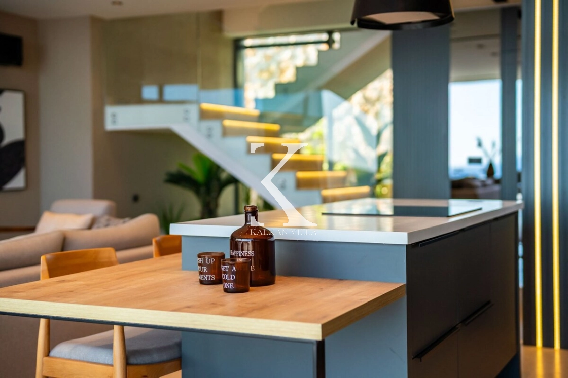On the sun terrace, you will find a private swimming pool, sun loungers, seating areas and an outdoor dining area overlooking the sea. Villa Aura F is located next to Villa Aura C, Villa Aura E and Villa Aura D, all owned by the same proprietor, making it an excellent option for larger groups or multiple families wishing to stay close to each other.