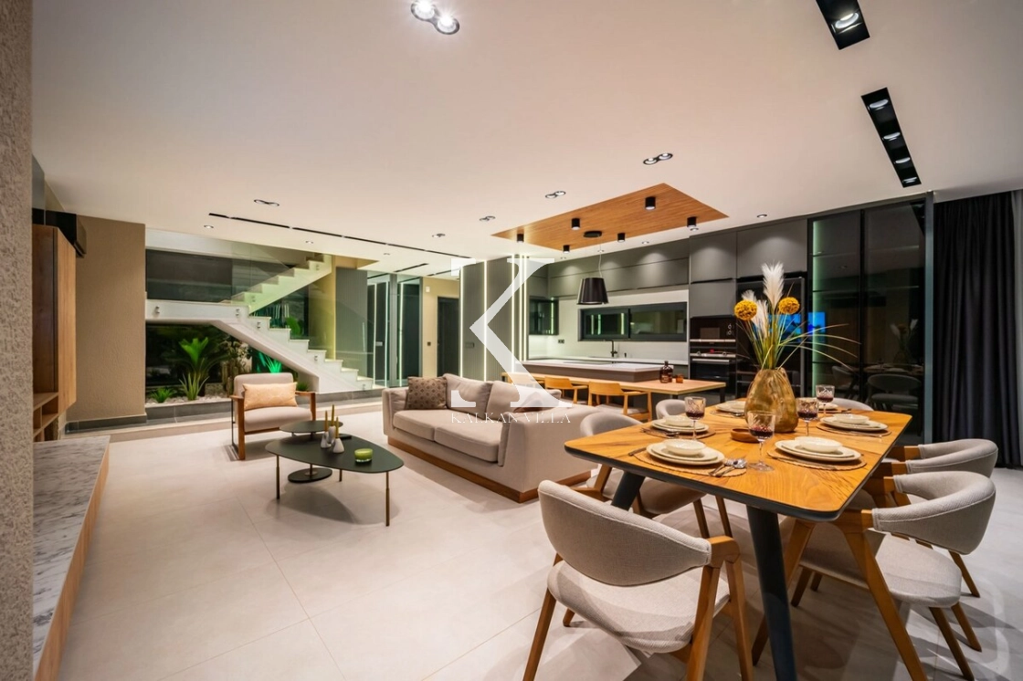 The villa features 3 bedrooms and 3 bathrooms, accommodating up to 6 guests in comfort. All living areas are tastefully furnished with quality furniture, and every detail has been considered for a relaxing and enjoyable stay.