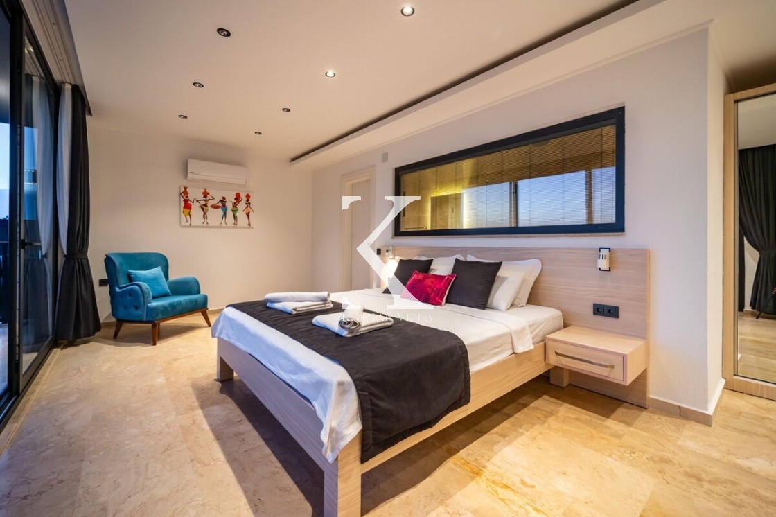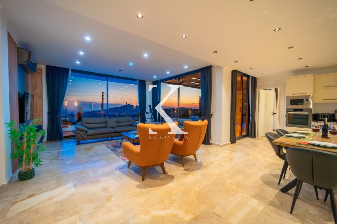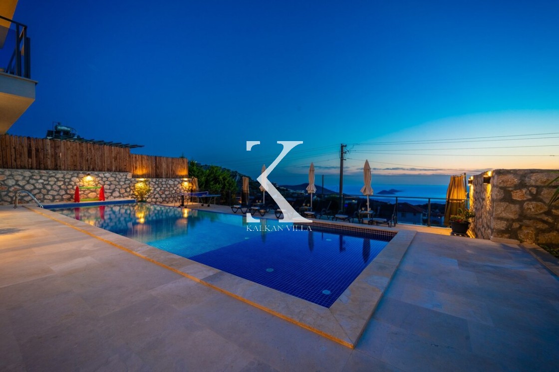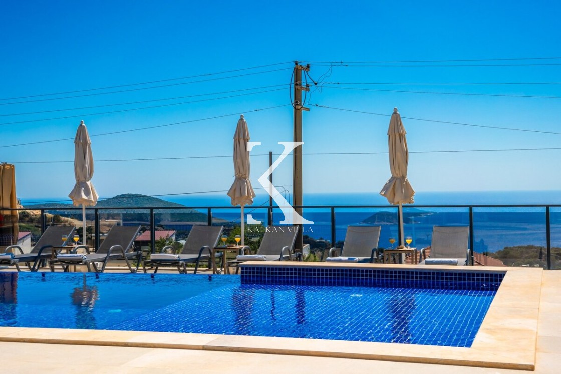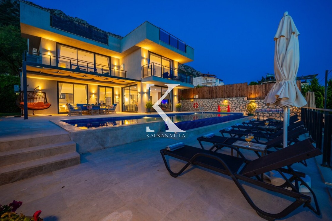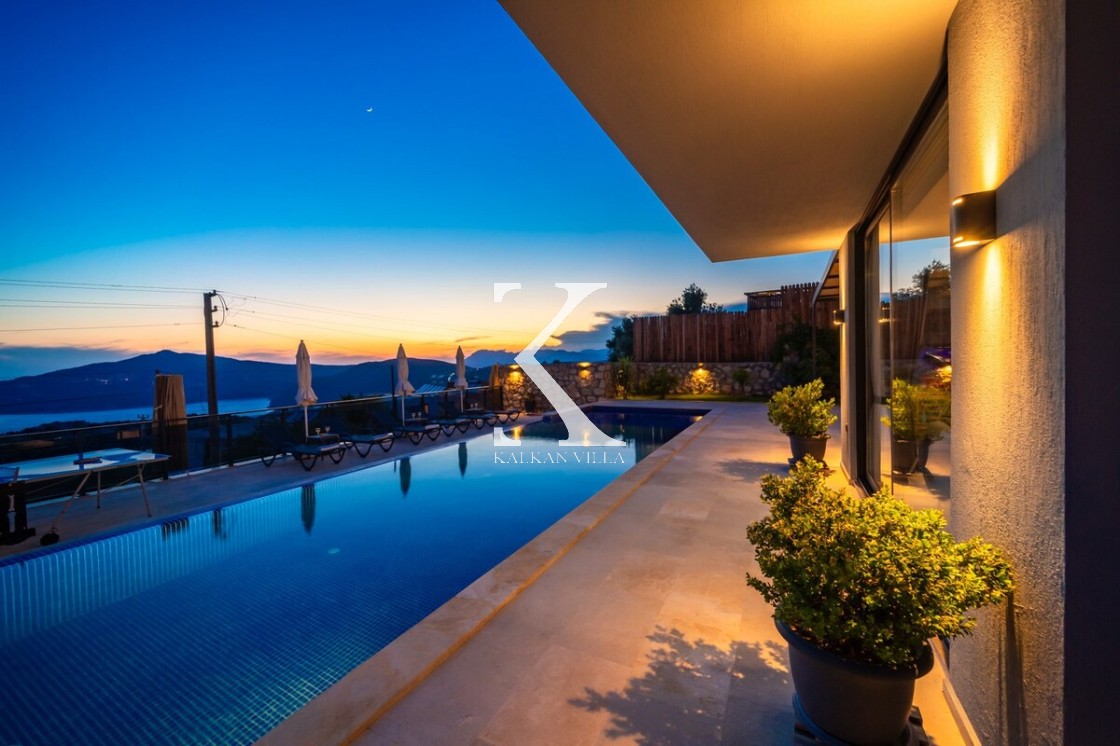 Villa Azde offers a striking aesthetic with its modern architecture, while its large windows bring Kalkan’s unique views to every corner of the villa.