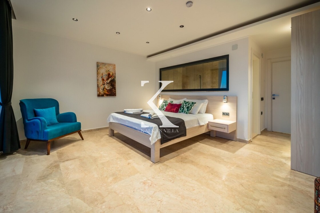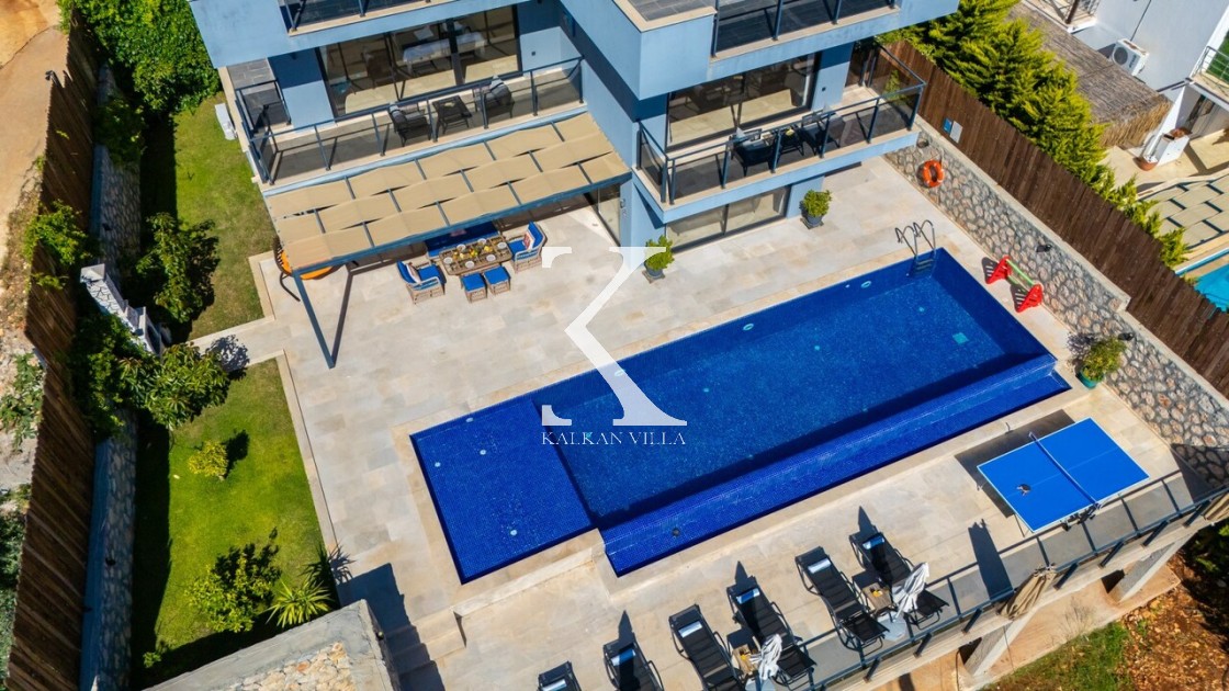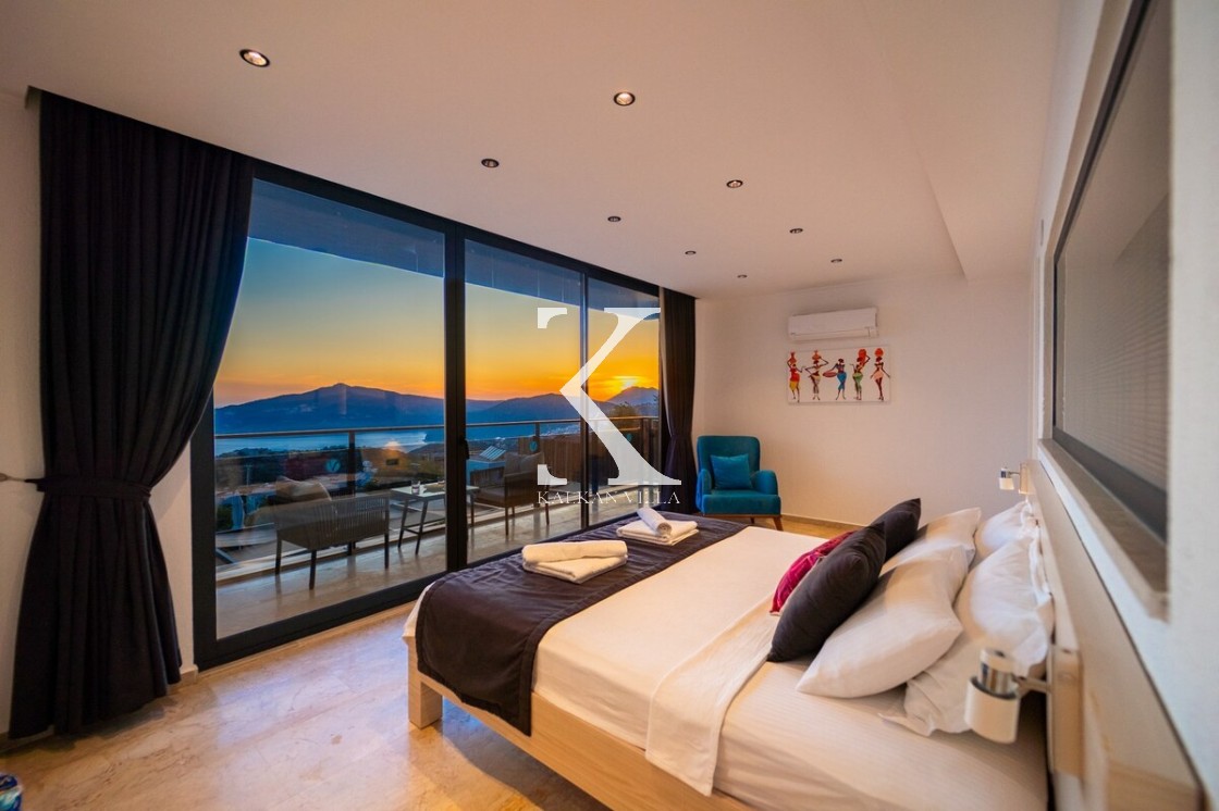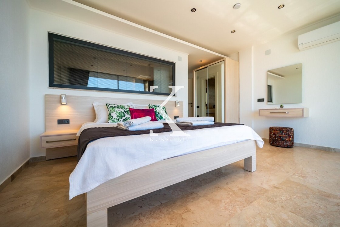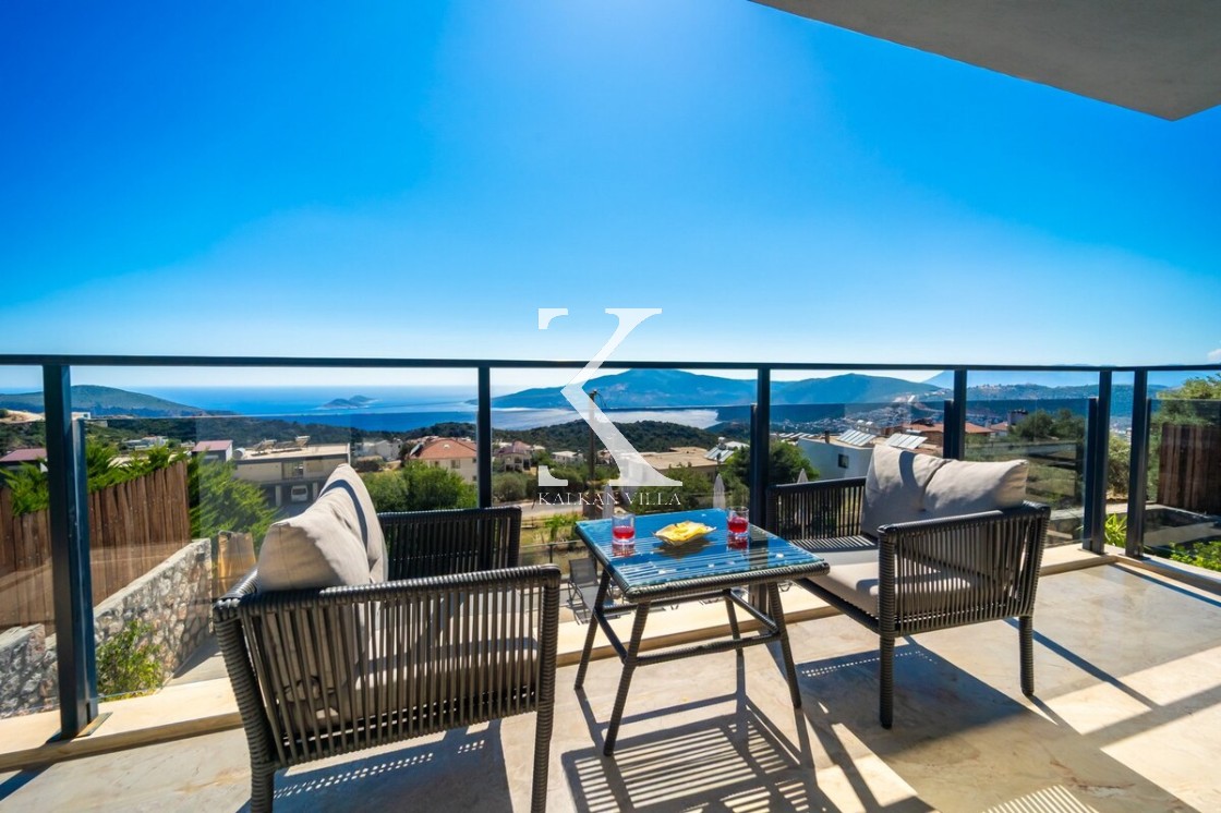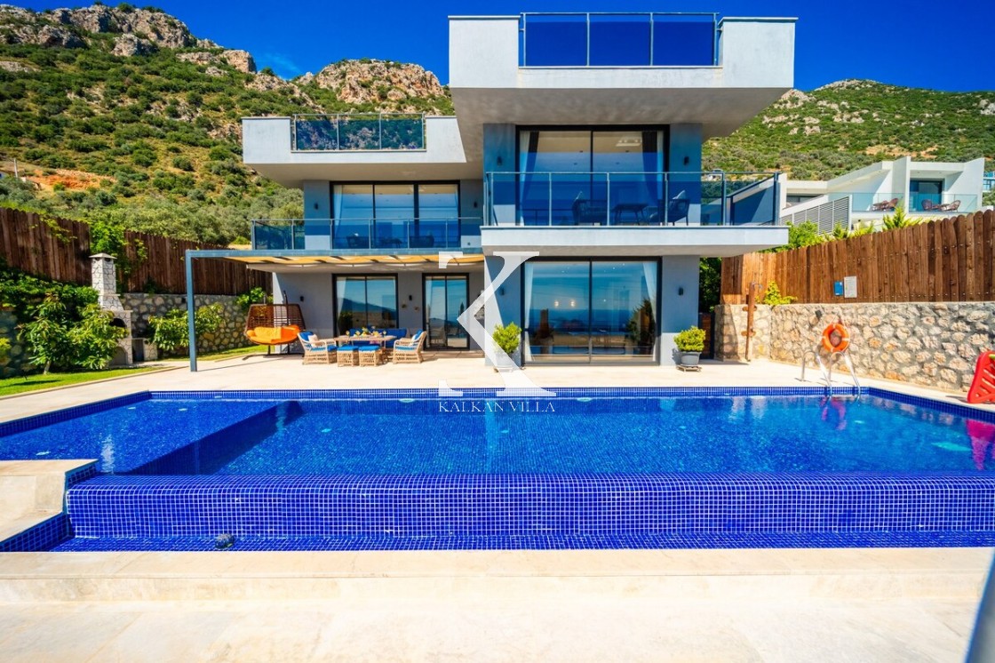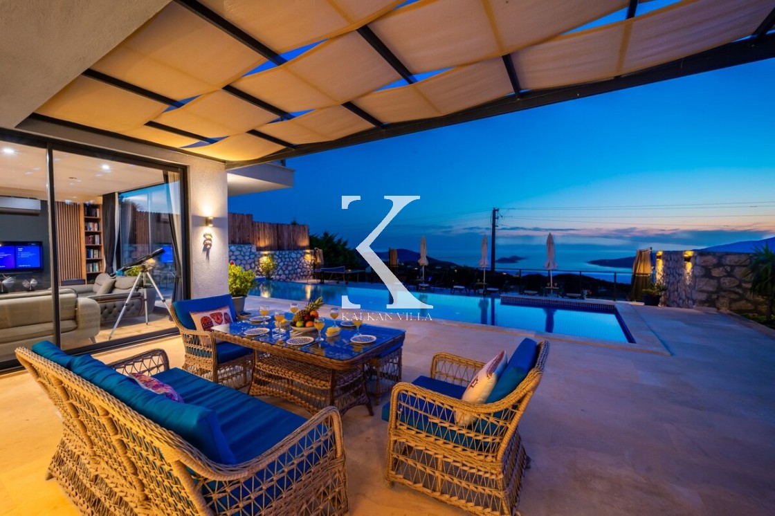 Villa Azde offers a striking aesthetic with its modern architecture, while its large windows bring Kalkan’s unique views to every corner of the villa.