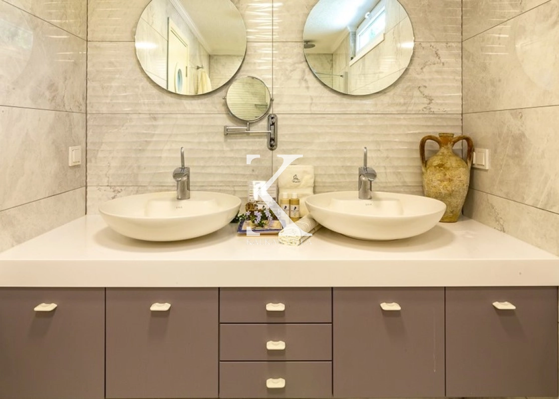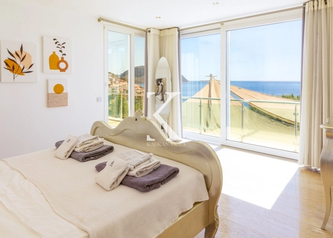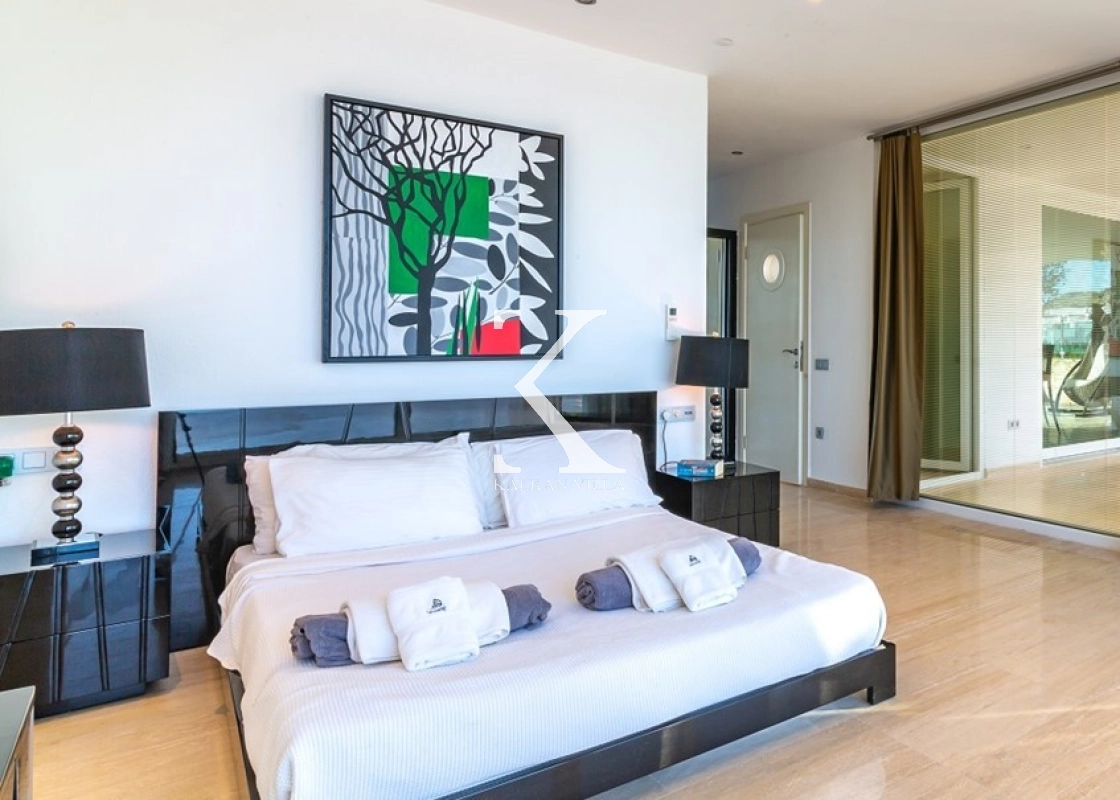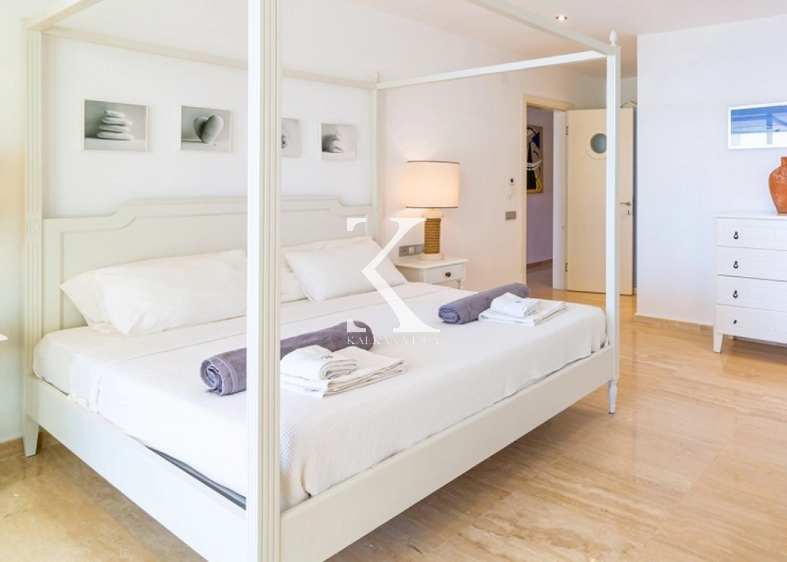 All rooms in the villa boast panoramic sea views. The villa features 5 bedrooms and accommodates up to 10 guests, making it ideal for large families or groups of friends. Each bedroom has its own en-suite bathroom and WC, ensuring maximum comfort and privacy.