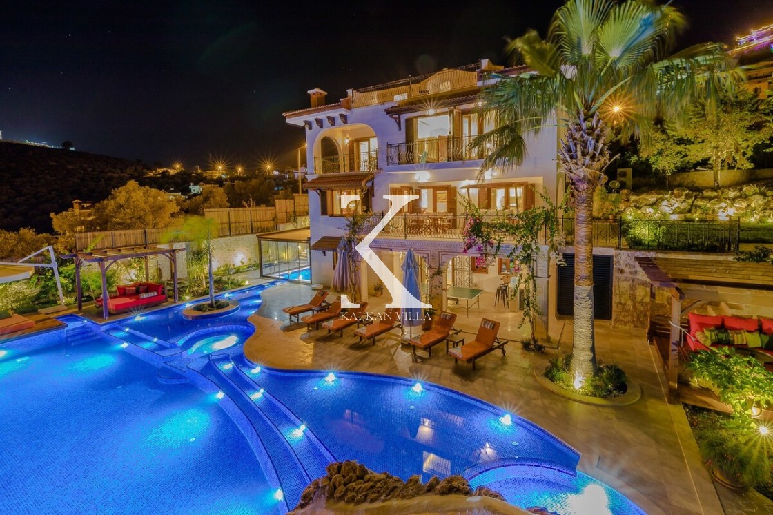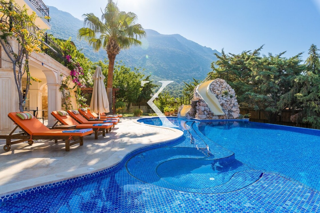 📌 Villa Cactus House is a unique option for those seeking a fun, luxurious, and comfortable family holiday in Kalkan. With its pool with waterfall and slide, indoor pool, and spa facilities, it offers comfort year-round.
