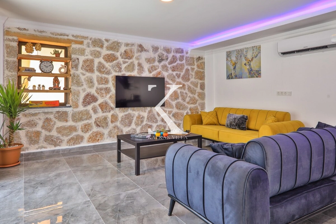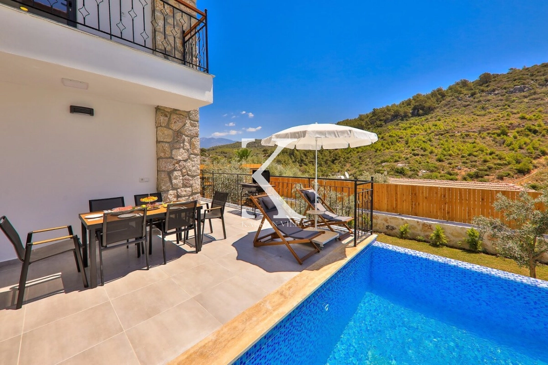 📍 Located in the heart of nature in the Kalkan – Patara region, Villa Delfin Green offers a stylish and modern holiday experience with its 3 bedrooms and accommodation capacity for 6 people. It is an ideal option for guests looking for privacy with its half-stone, half-concrete garden and sheltered pool terrace.