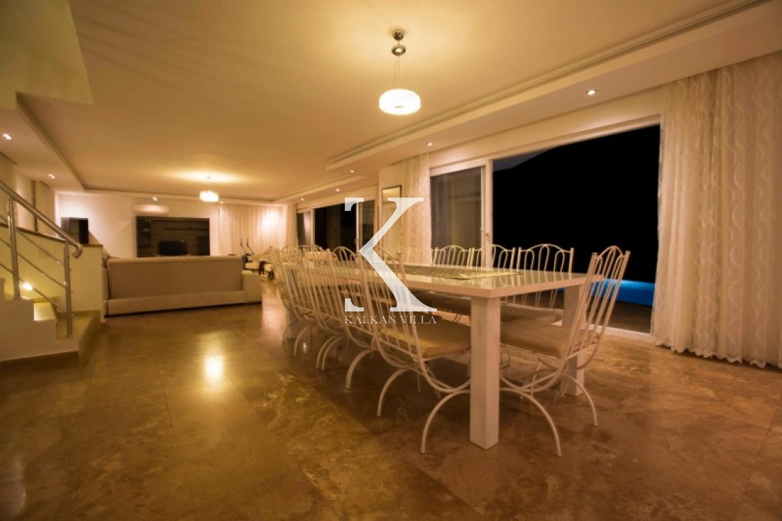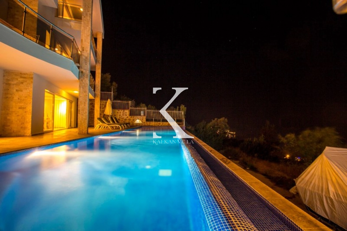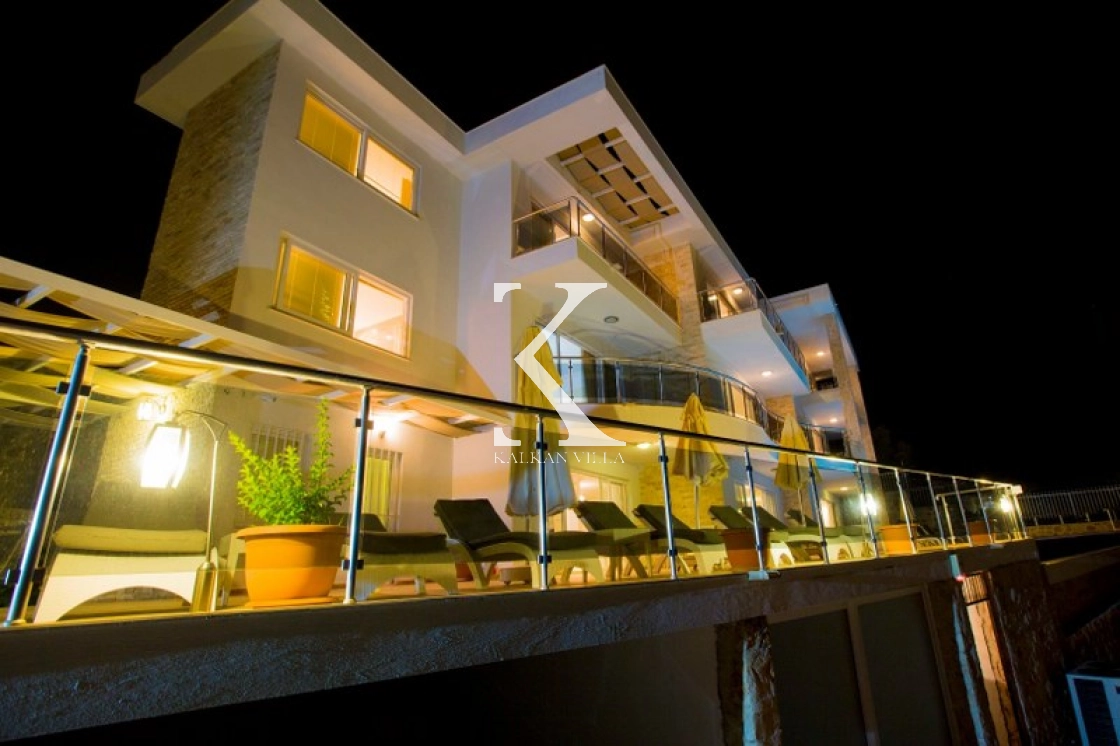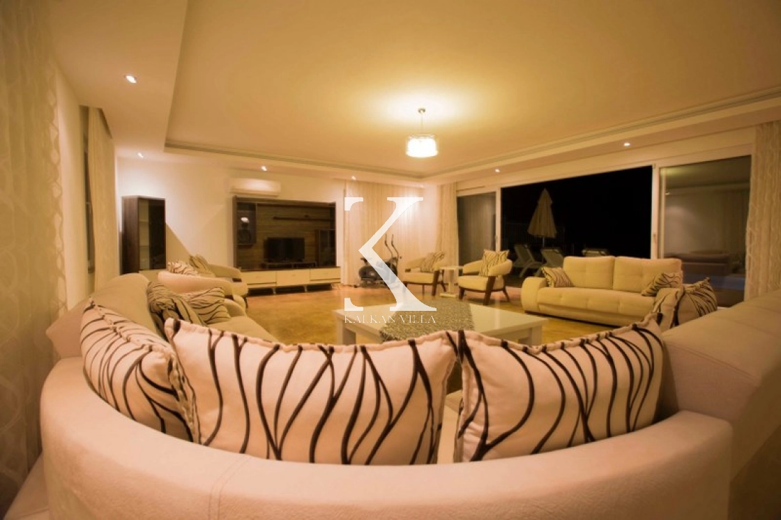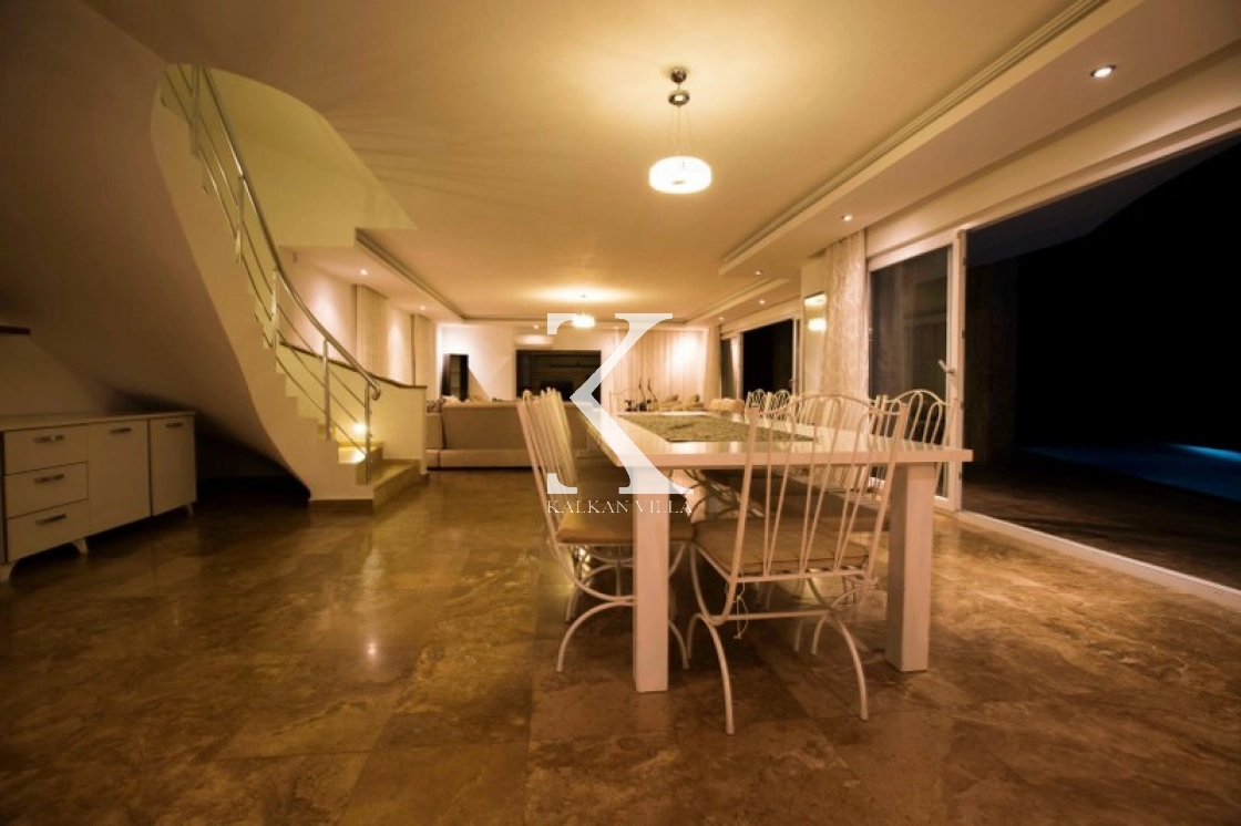 This luxurious villa, with 6 bedrooms and 12 guests, offers sea and nature views, making it ideal for large families and groups of friends. Modern decor, spacious living spaces, and a 13x4 m private pool offer comfortable accommodations.