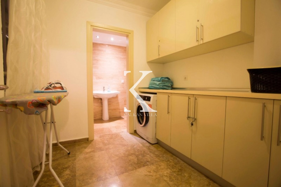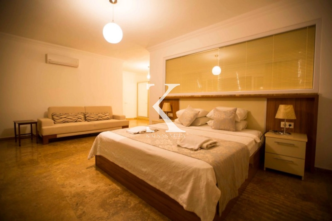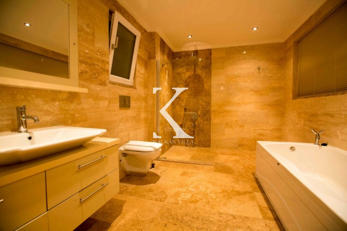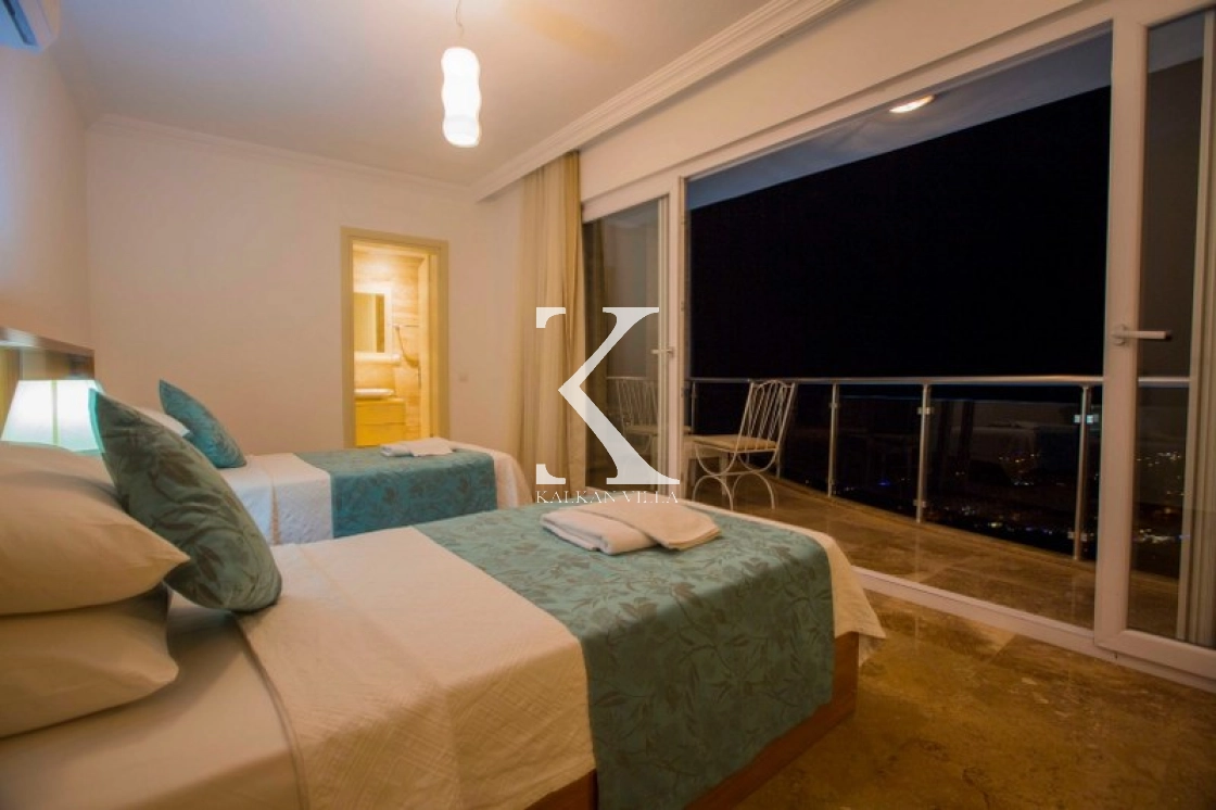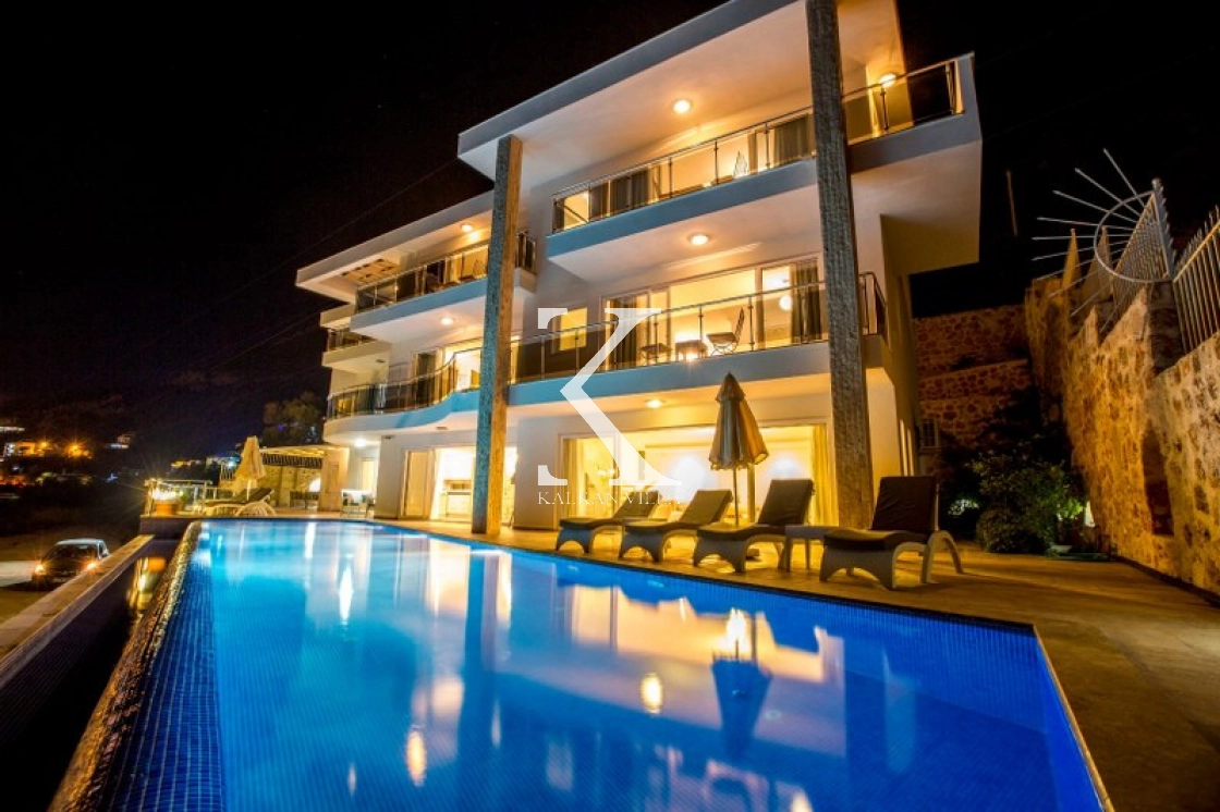 This luxurious villa, with 6 bedrooms and 12 guests, offers sea and nature views, making it ideal for large families and groups of friends. Modern decor, spacious living spaces, and a 13x4 m private pool offer comfortable accommodations.