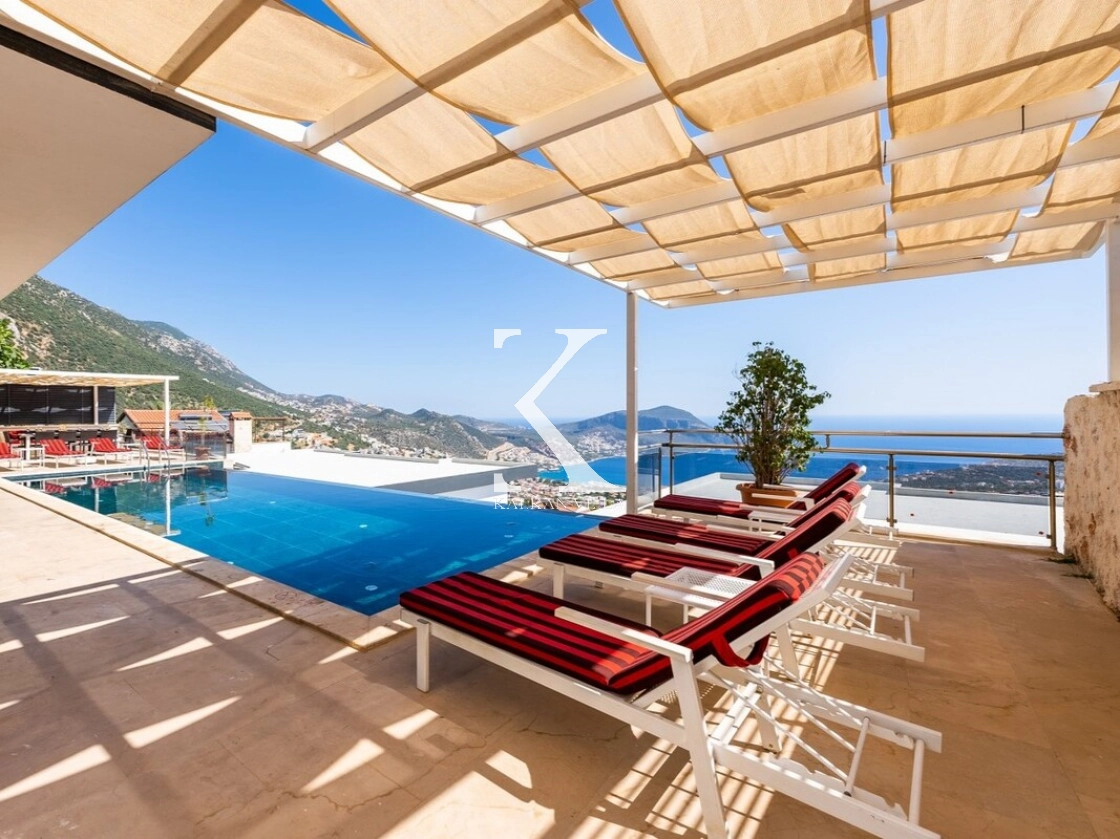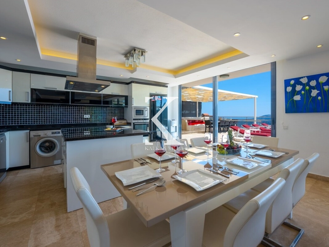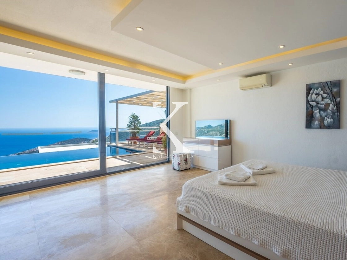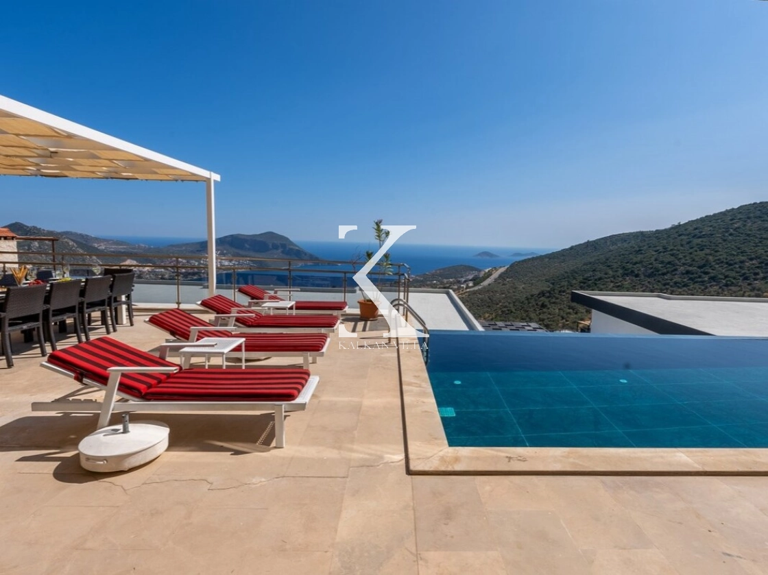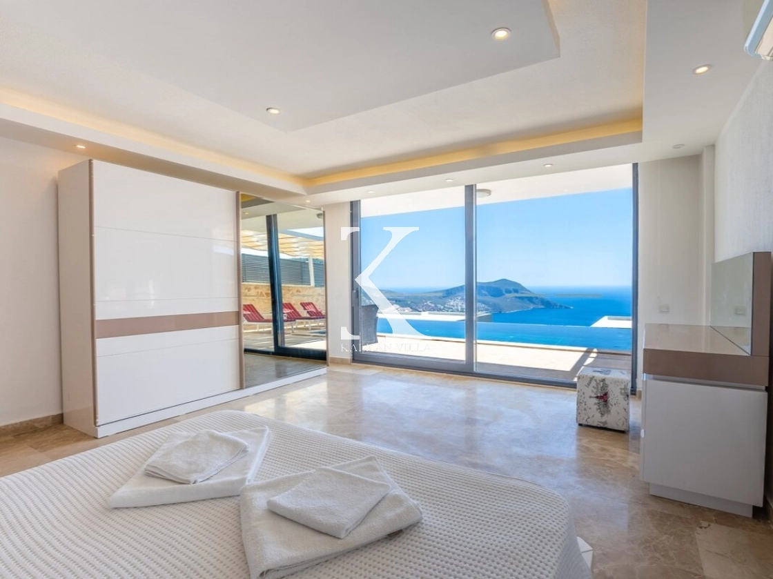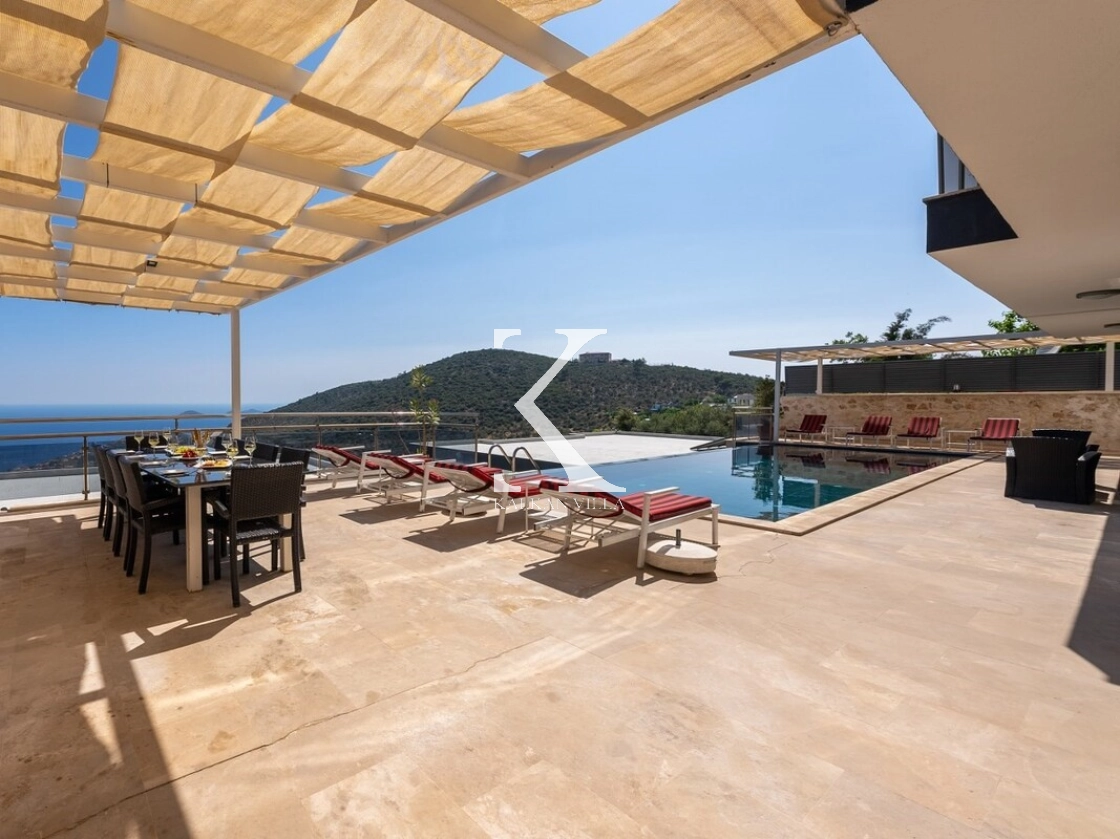 From its large windows and terraces, you can fully enjoy the breathtaking views of Kalkan Bay and the Islands. The infinity pool on the terrace takes this view experience to the next level.