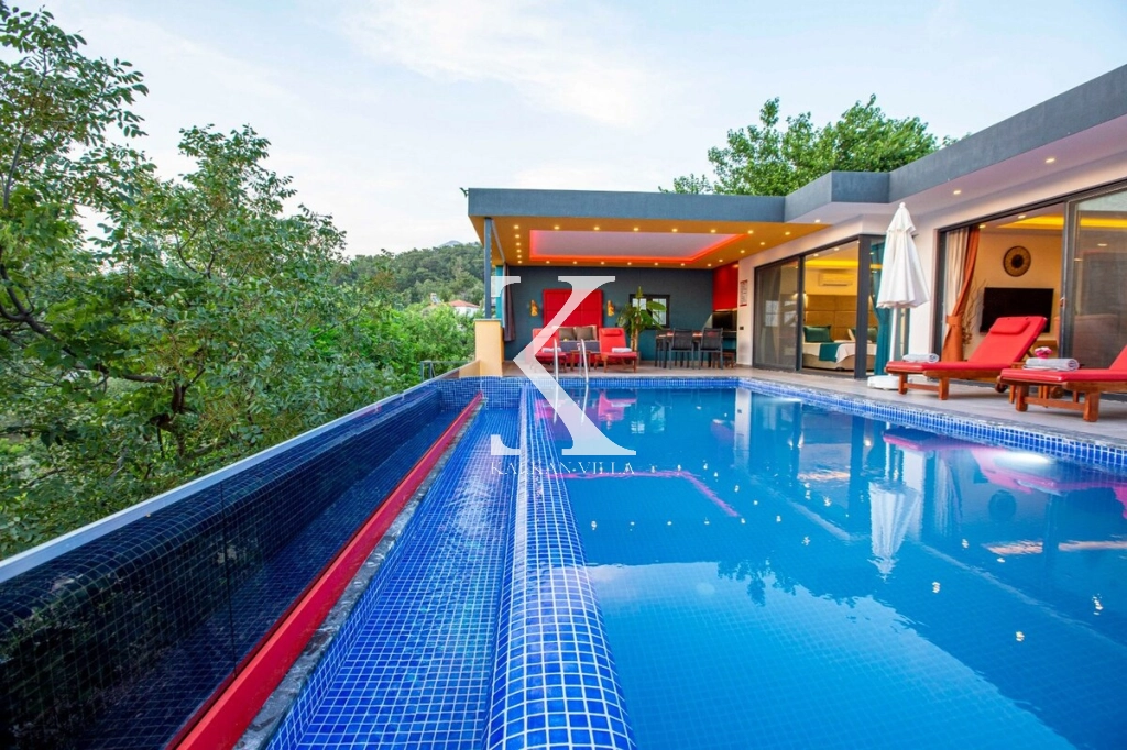 Villa Gold Premium ist eine Villa im Bezirk Kalkan Üzümlü, umgeben von Bäumen und fällt mit ihrem luxuriösen und modernen Design auf. Mit 2 Schlafzimmern und Unterkunft für 4 Personen bietet es einen idealen Rückzugsort für Hochzeitsreisende und kleine Familien. Während die Innenräume der Villa mit ihrer modernen amerikanischen Küche und dem geräumigen, von Orangetönen dominierten Wohnzimmer den Komfort eines Zuhauses bieten, werden Sie im Außenbereich mit dem privaten Pool, den Sonnenliegen, der Sitzecke, dem Grillbereich und dem Esstisch ein unvergessliches Urlaubserlebnis haben.