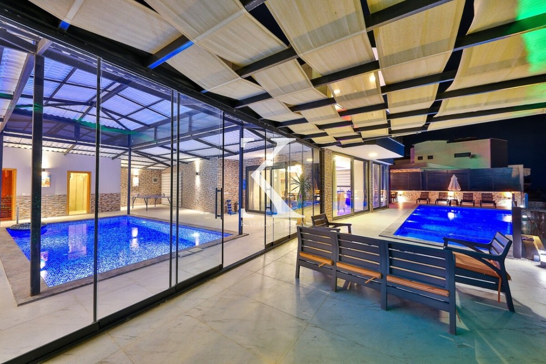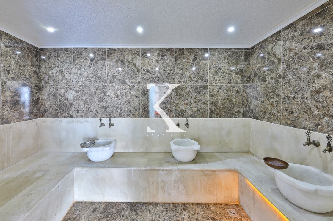 The villa boasts two indoor and outdoor pools, a sauna, and a Turkish bath. These features make Villa Grand Kördere a unique option for a delightful stay not only in summer but also in winter.
