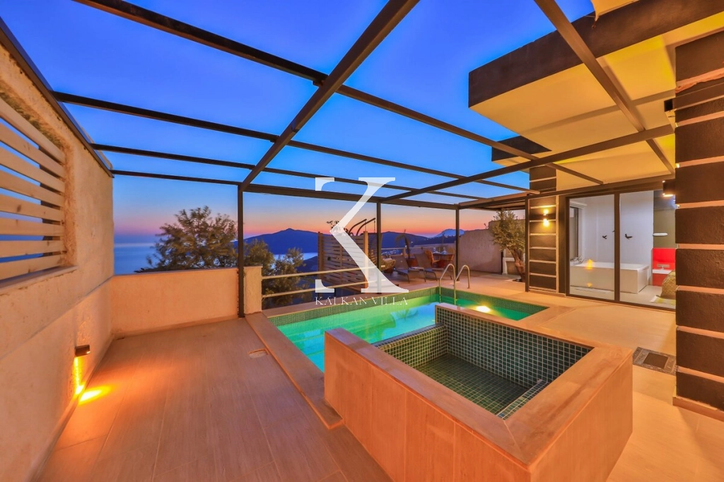 Villa Gusto 3 is a romantic honeymoon villa located in the Kördere region of Kalkan, with a unique sea and nature view. With 1 bedroom and a capacity of 2 people, this villa offers a special atmosphere for honeymoon couples. The jacuzzi and the enchanting view in the villa decorated in red tones are just a few of the details that will make your holiday unforgettable.