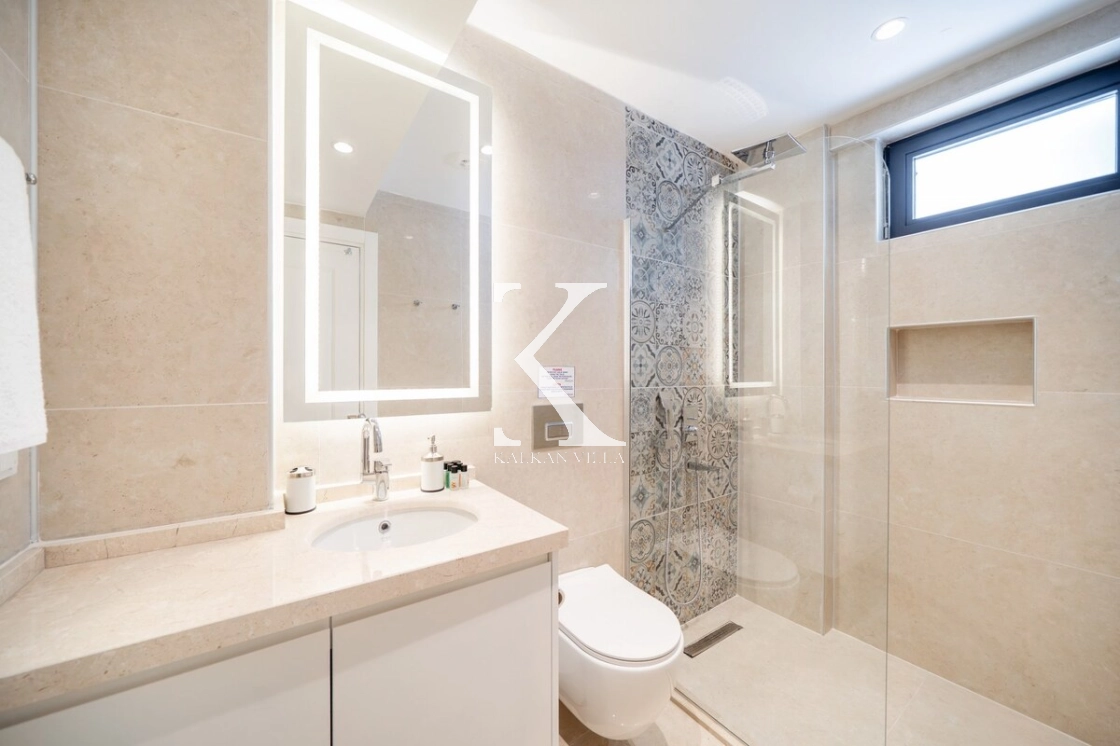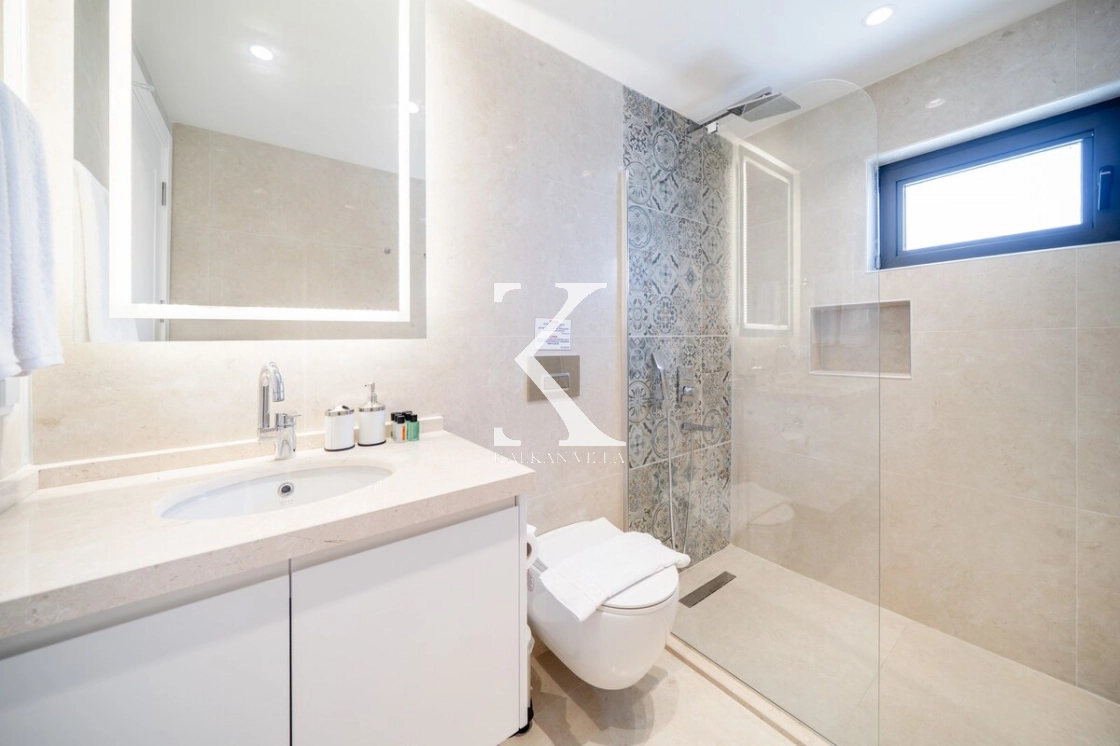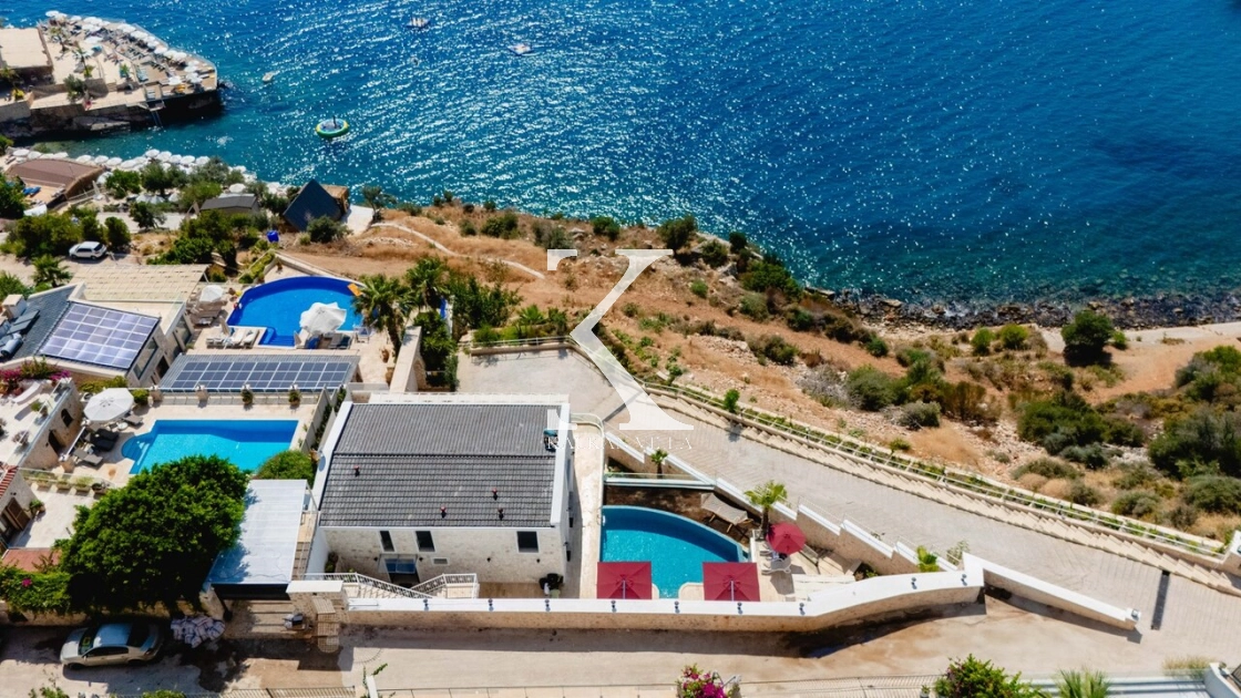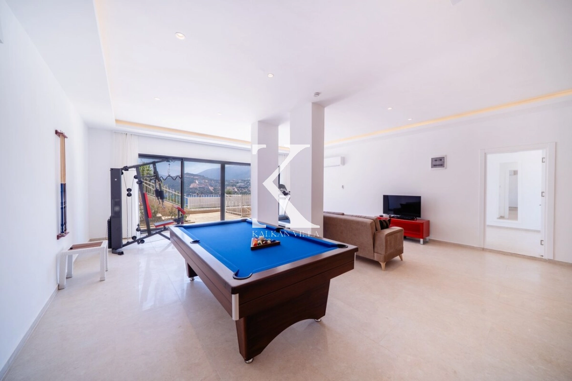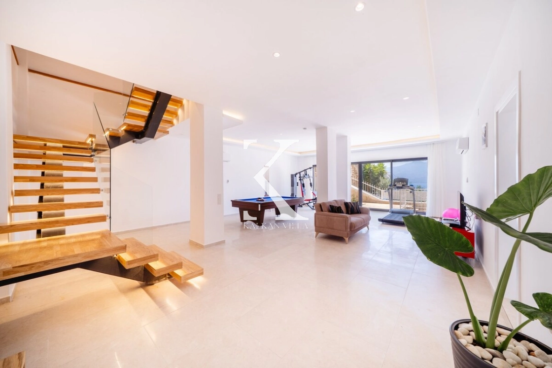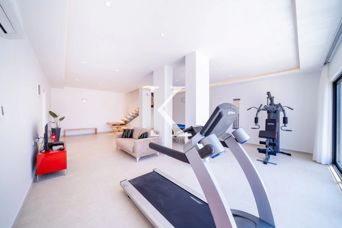 The villa features spacious outdoor living and dining areas, perfectly designed for Mediterranean-style relaxation and alfresco meals against a stunning sea backdrop. In addition, a dedicated recreation room equipped with games and fitness equipment offers entertainment for guests of all ages, adding an extra layer of enjoyment to your stay.