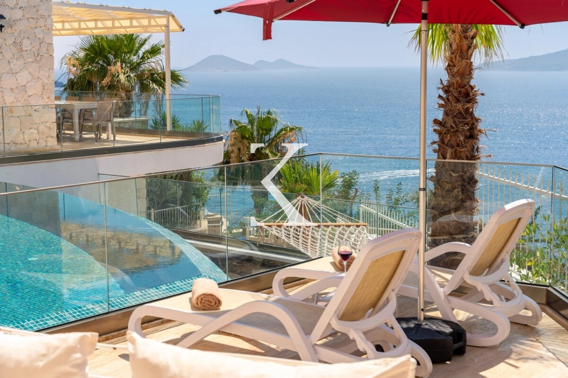 Villa Lalin enjoys an enviable position overlooking Kalkan Beach, the harbour, and the picturesque Snake and Mouse Islands. Thanks to its elevated location, uninterrupted Mediterranean views can be enjoyed from most areas of the property. All five bedrooms are en-suite and tastefully furnished with modern details, ensuring comfort, privacy, and a high-end holiday experience.