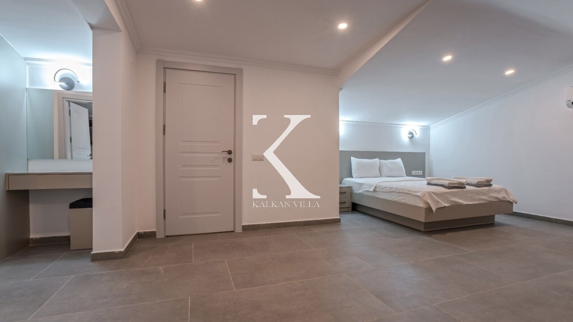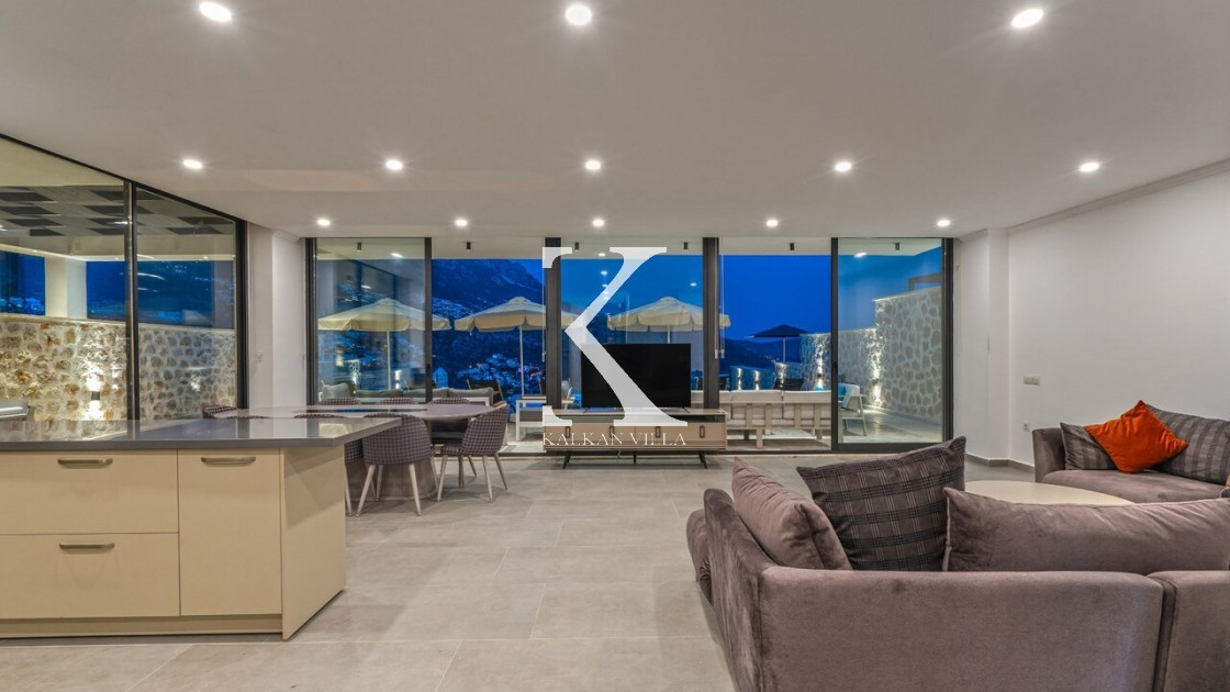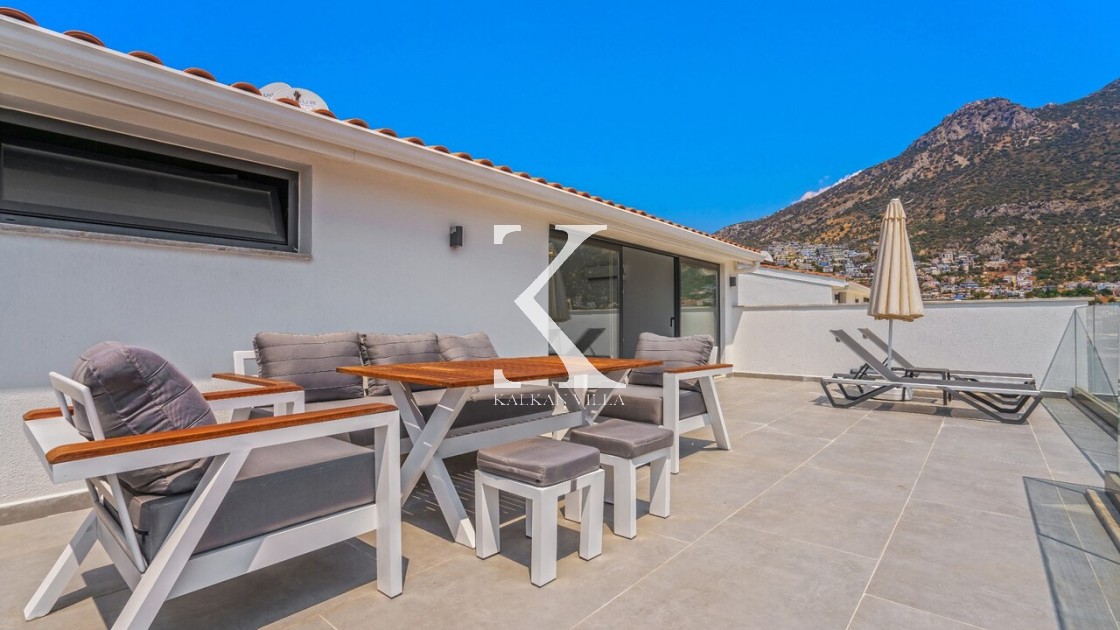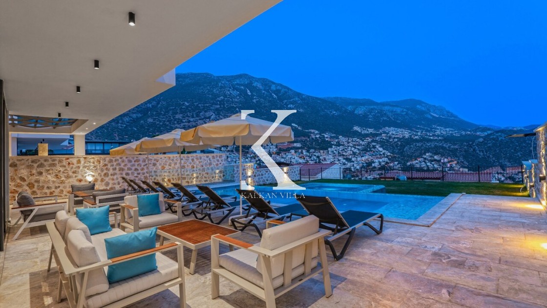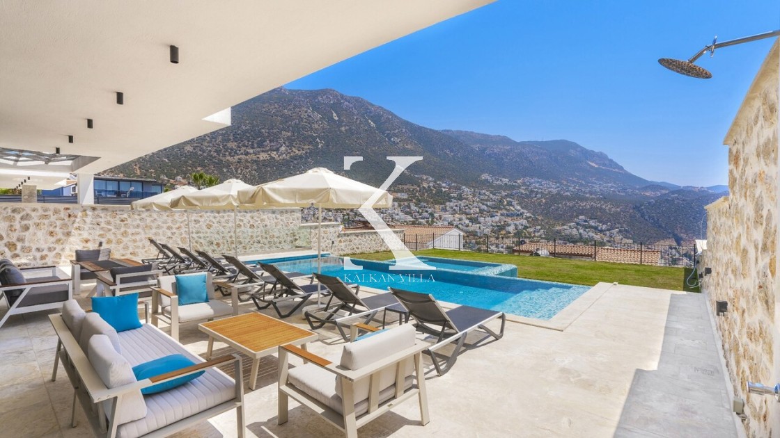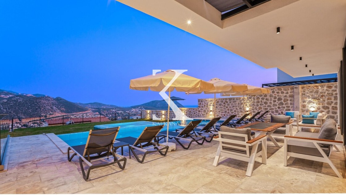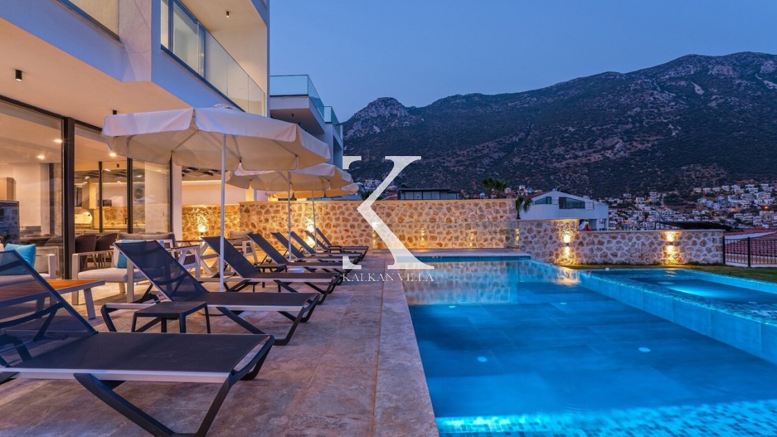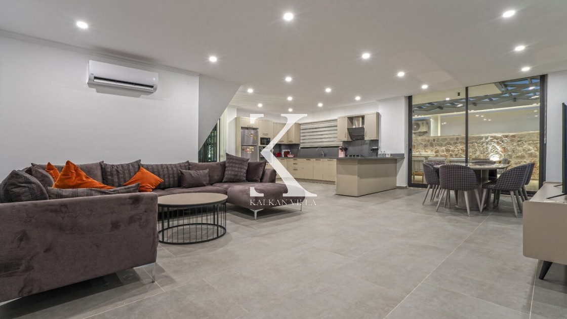 Located in the Ortaalan area of Kalkan, Villa Lion is an ideal holiday villa for large families and groups of friends, boasting spacious interiors, luxurious design, and a central location.