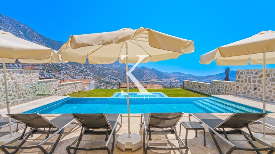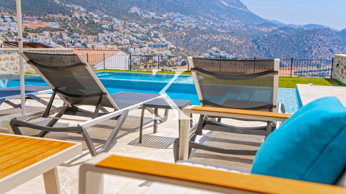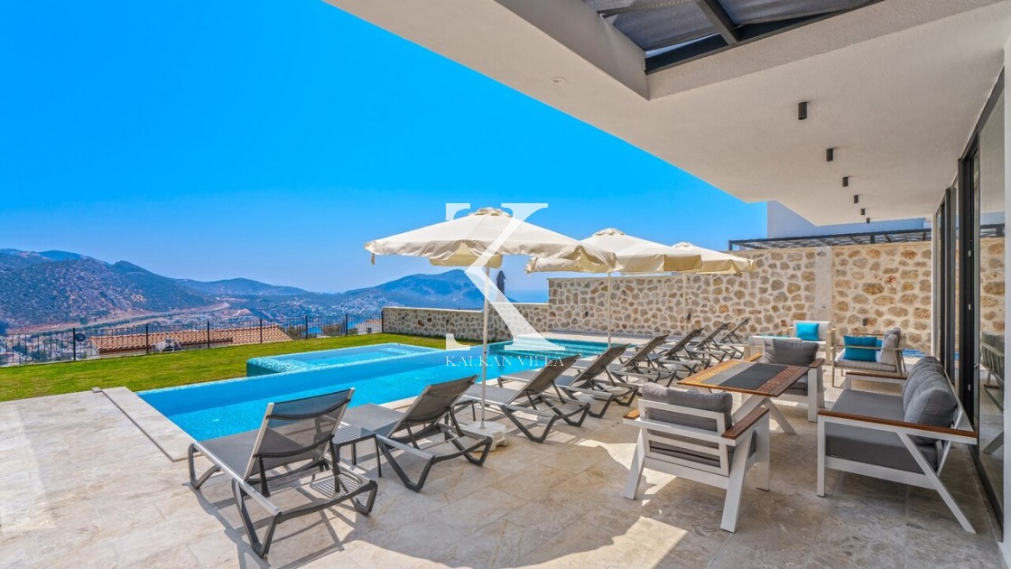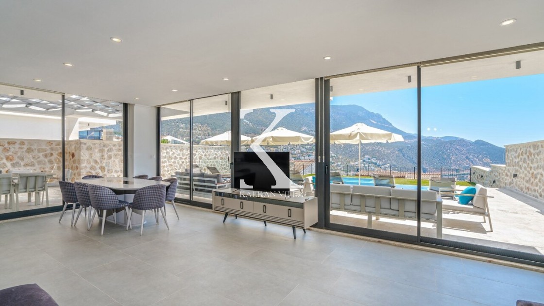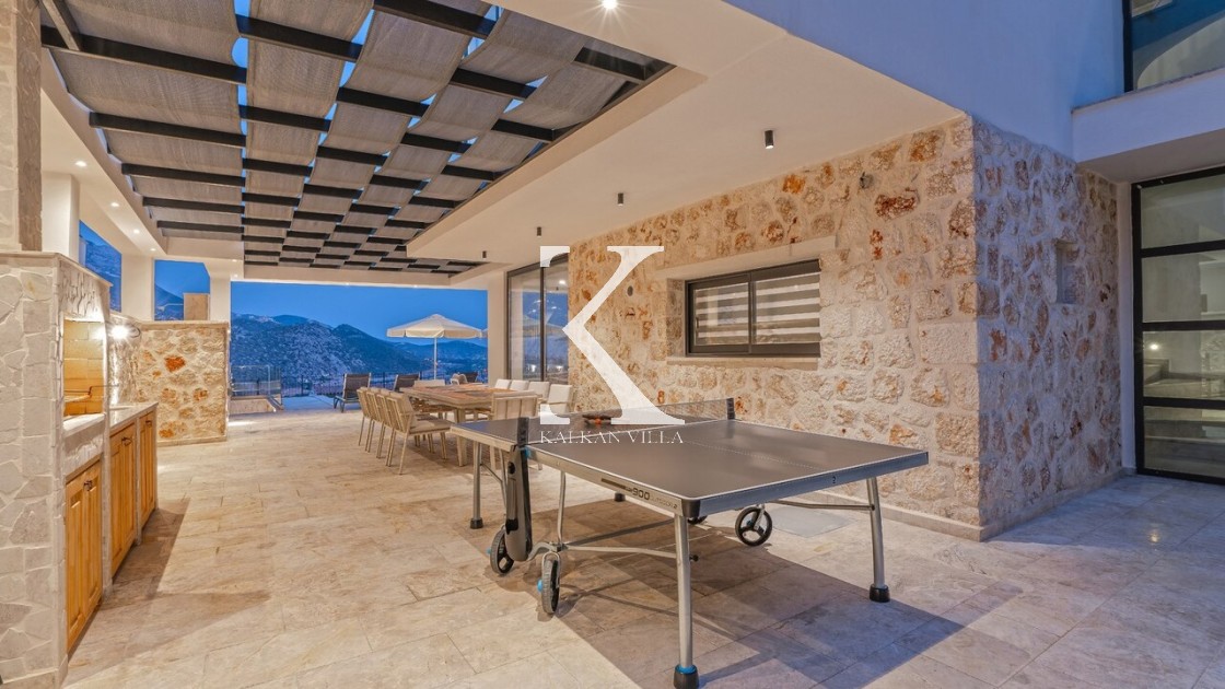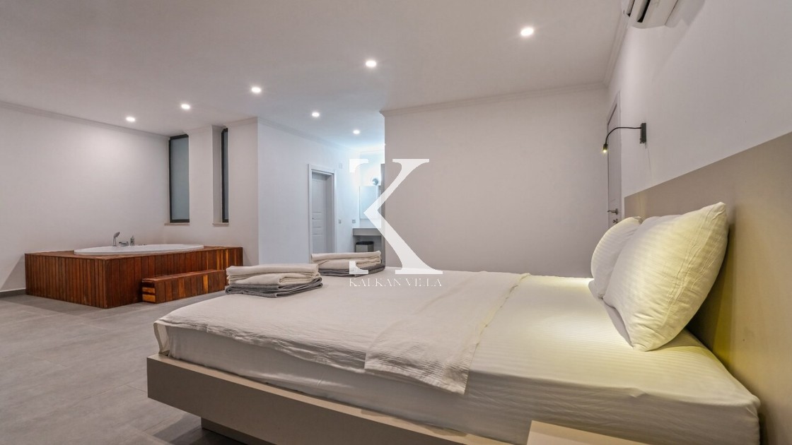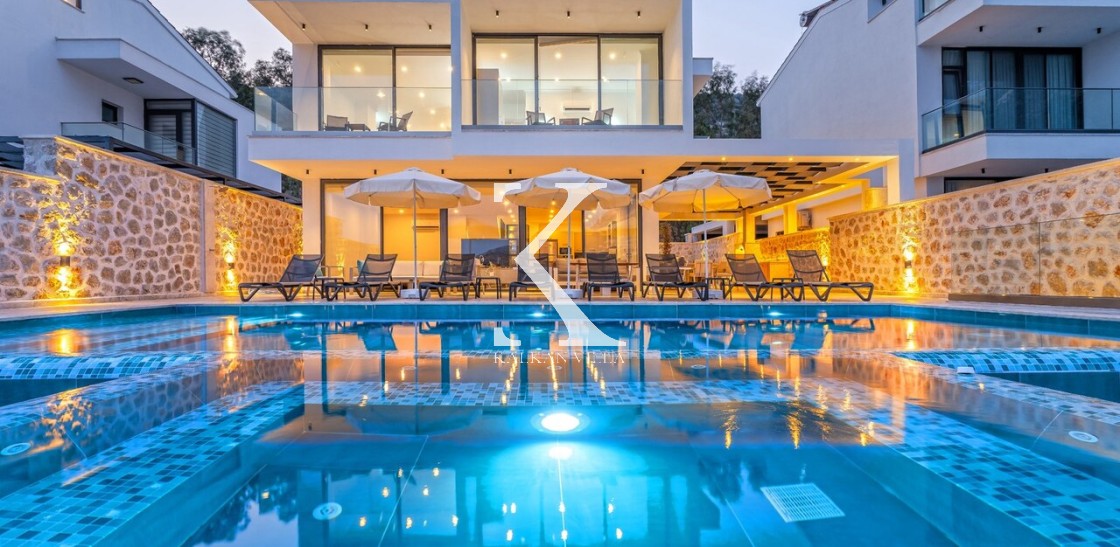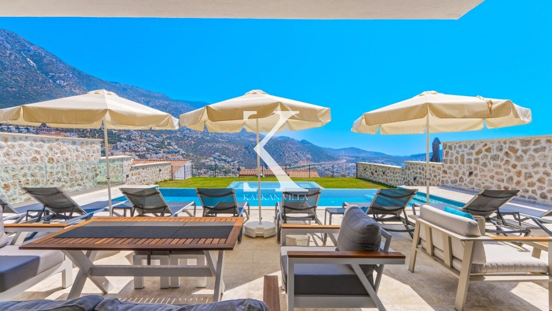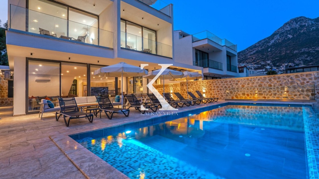 Located in the Ortaalan area of Kalkan, Villa Lion is an ideal holiday villa for large families and groups of friends, boasting spacious interiors, luxurious design, and a central location.
