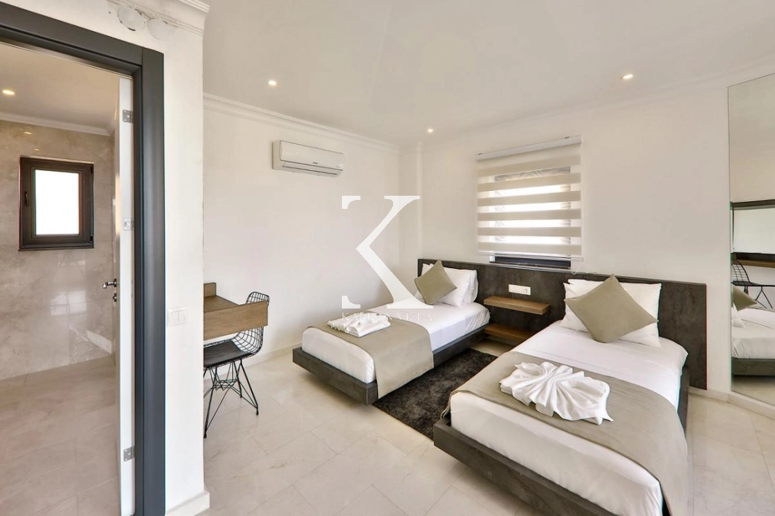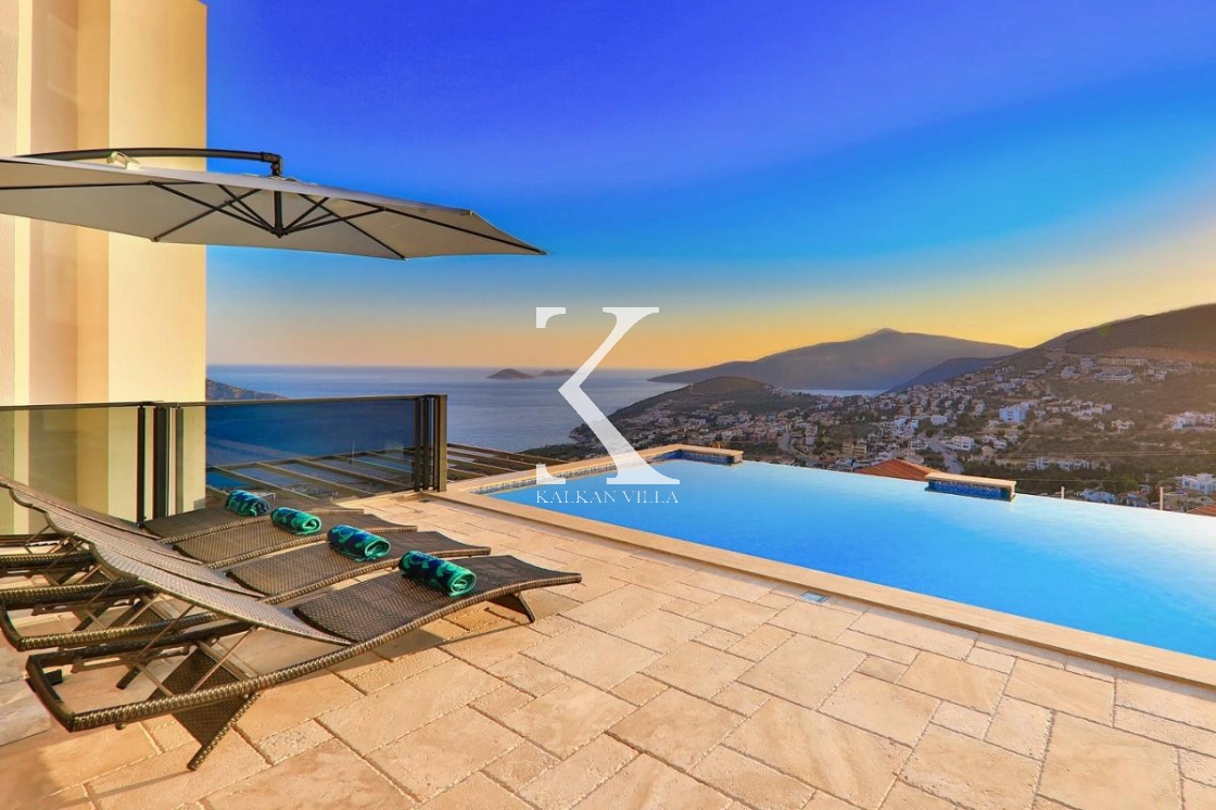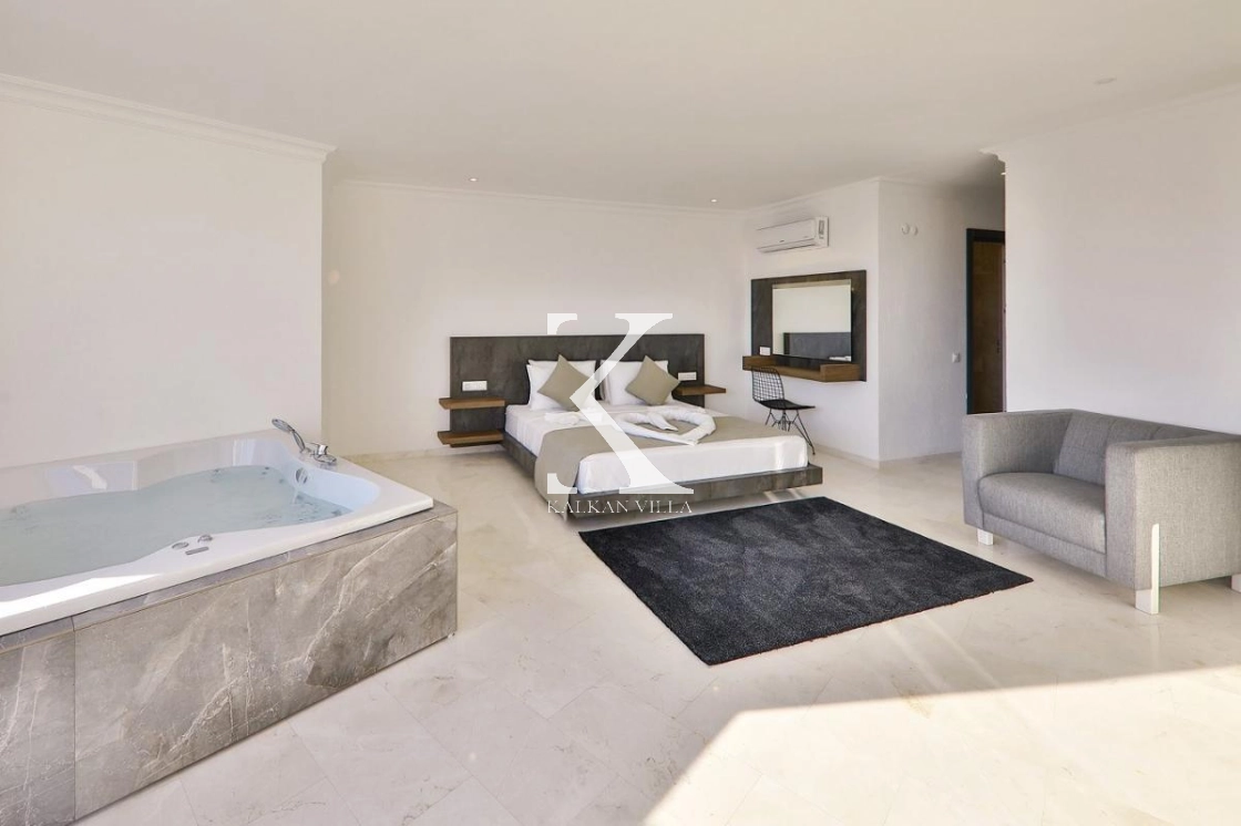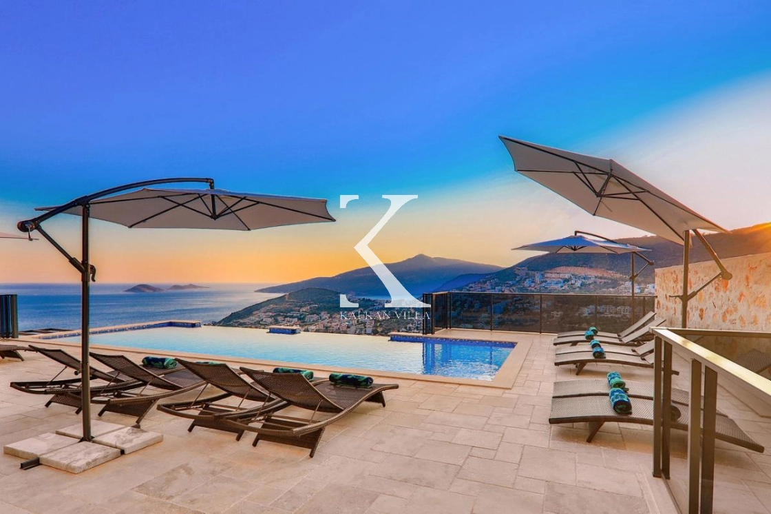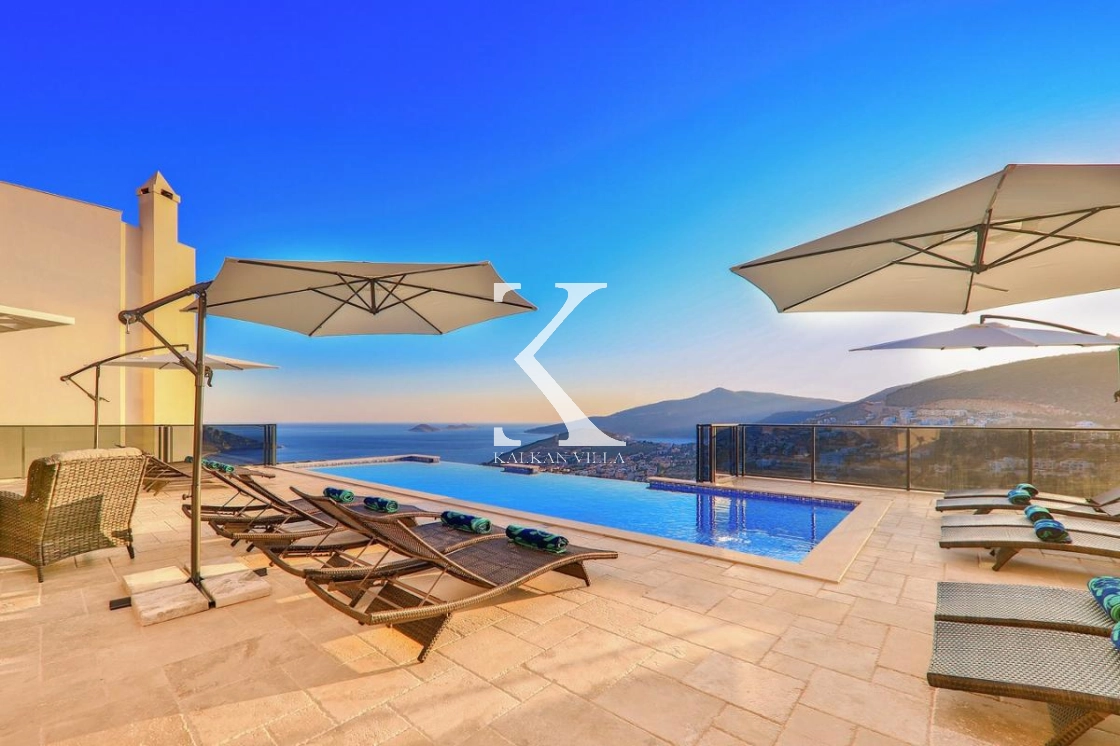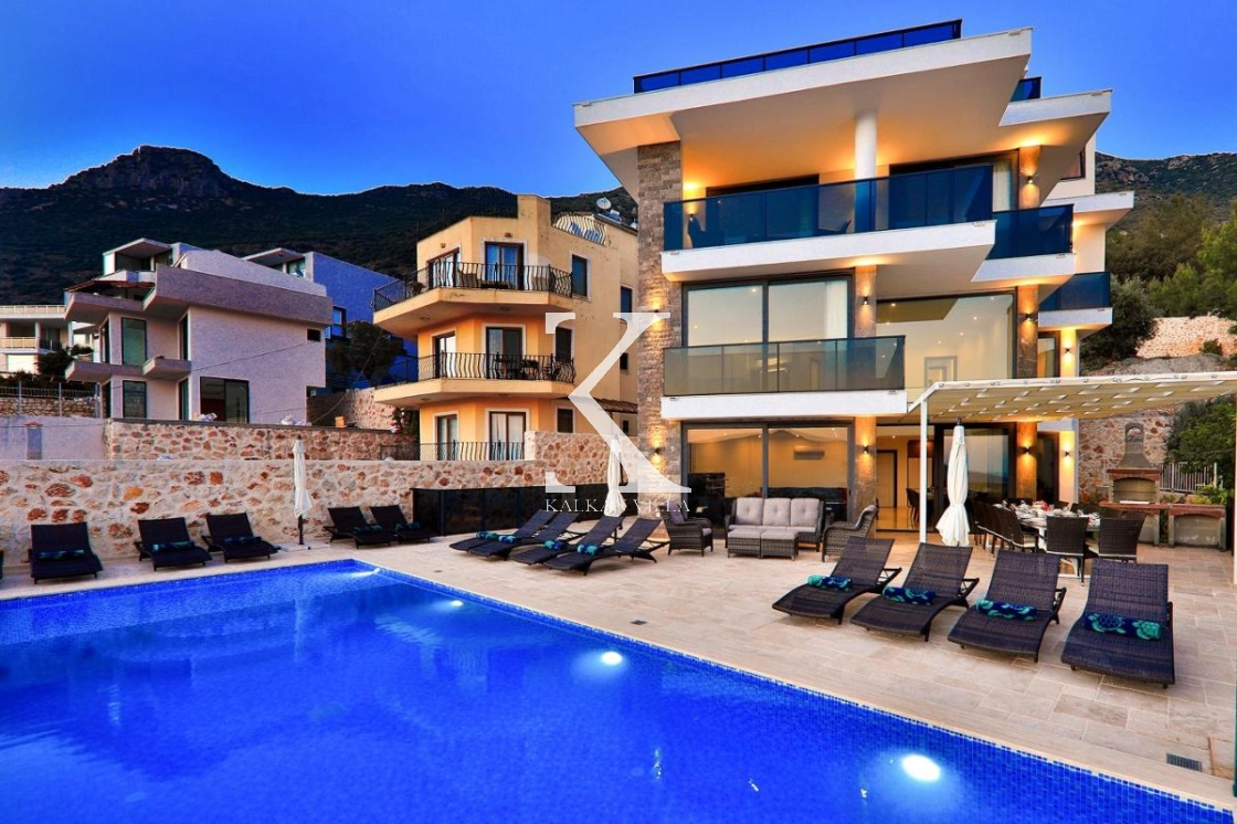 Villa Luxury is a luxury holiday villa located in the prestigious Kızıltaş area of Kalkan, offering stunning panoramic sea and nature views. With 7 bedrooms and a total accommodation capacity of 14 guests, this exclusive villa is an ideal choice for large families, groups of friends, and luxury holiday seekers.