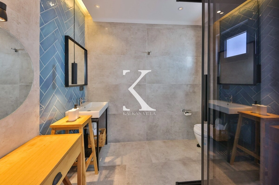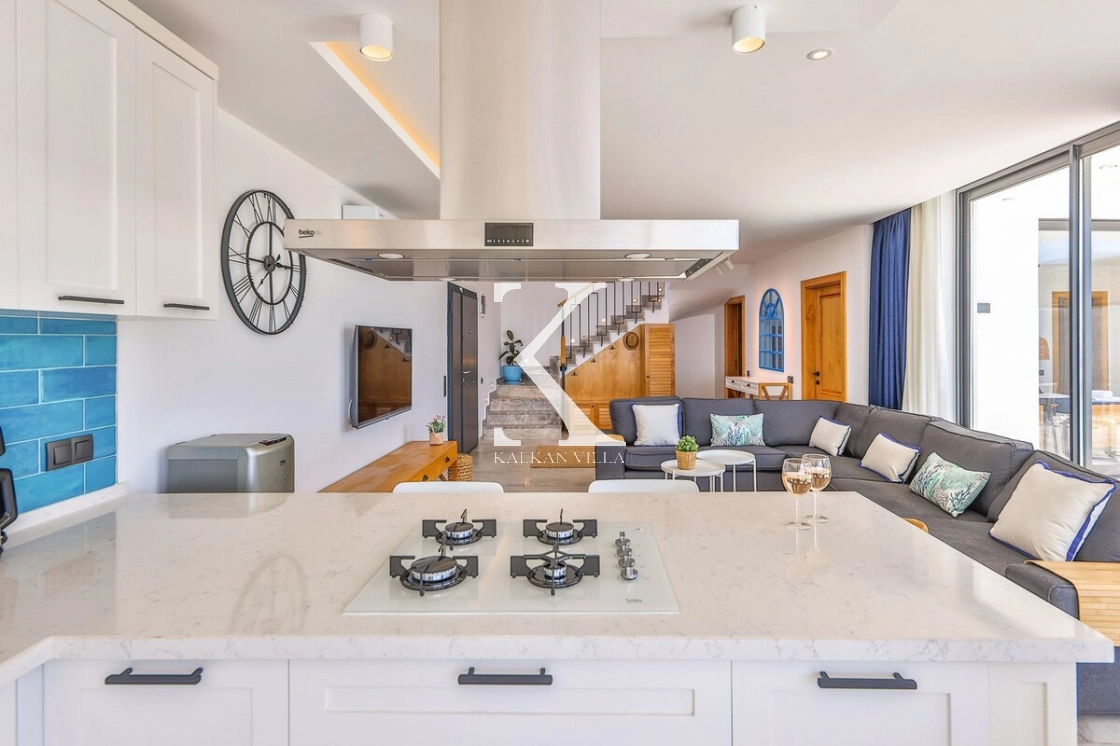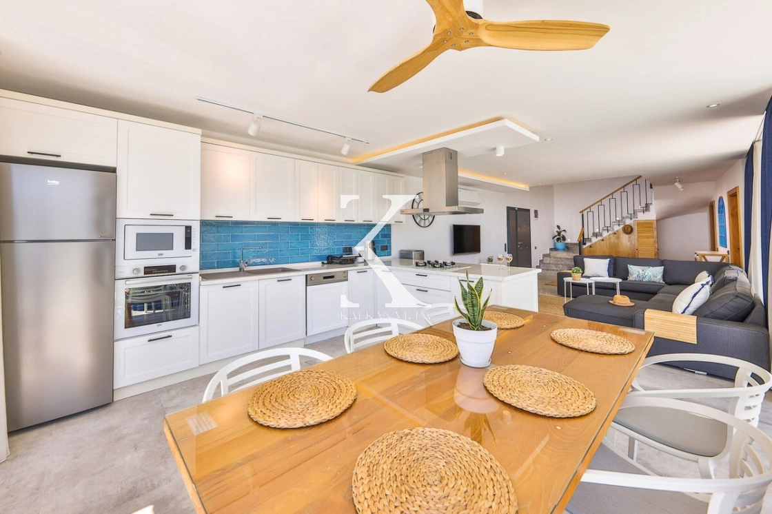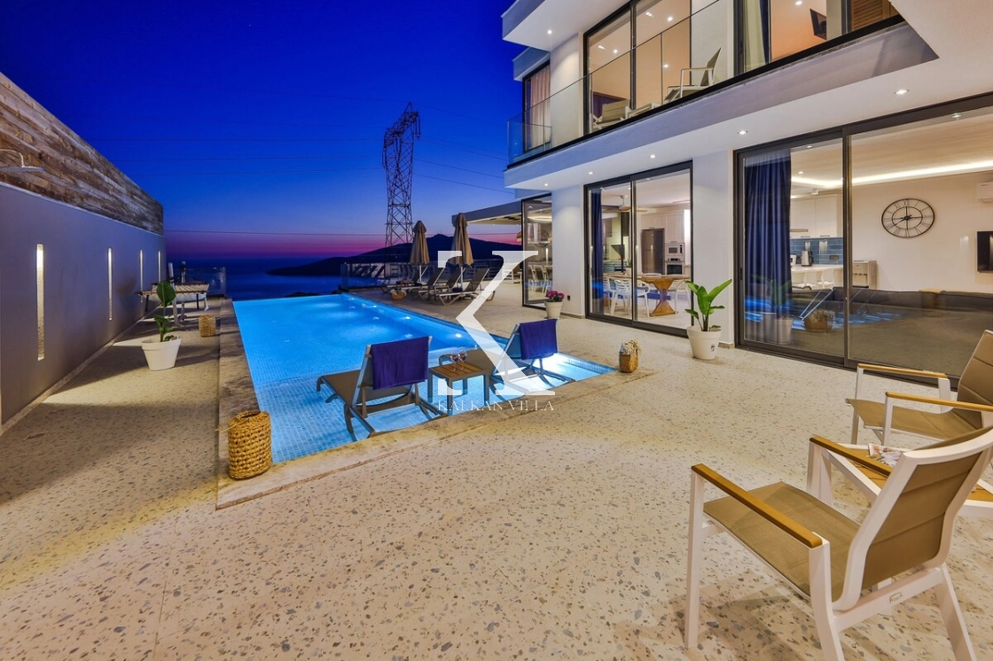 Located in the Kördere District of Kalkan, Villa Mare Mare is a stylish and spacious villa decorated in a modern and bohemian style. With its 3 bedrooms and 6-person accommodation capacity, it offers ideal accommodation for families and groups of friends. With its magnificent sea view and sheltered pool terrace, it offers its guests a peaceful and luxurious holiday experience.