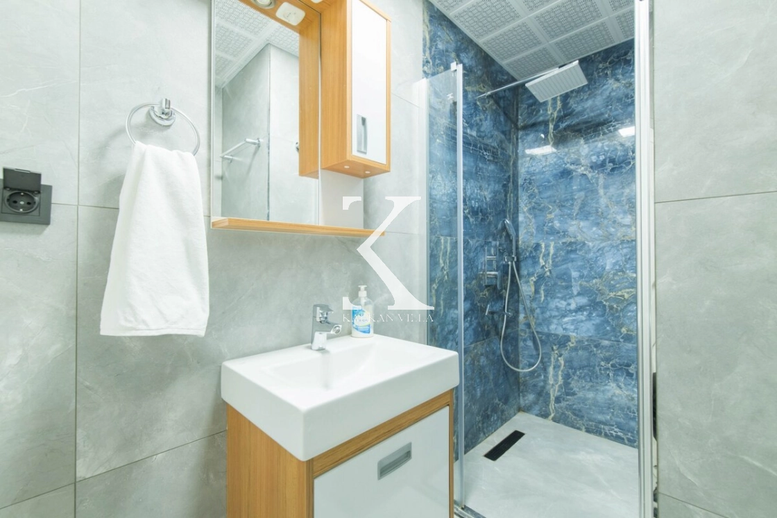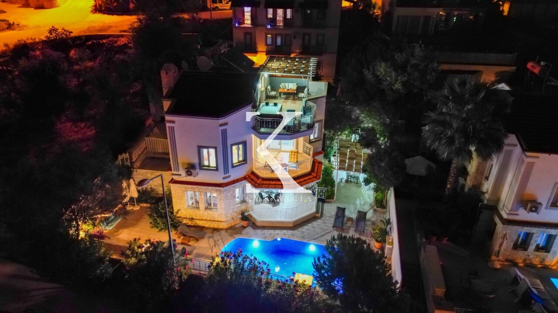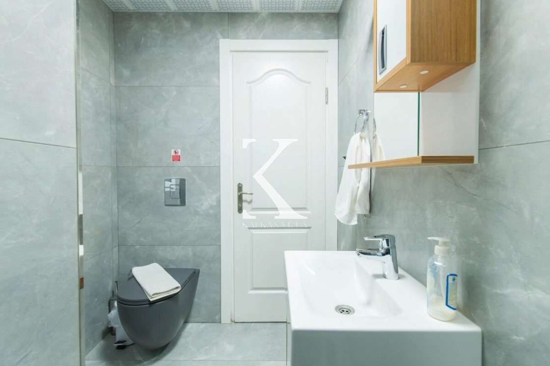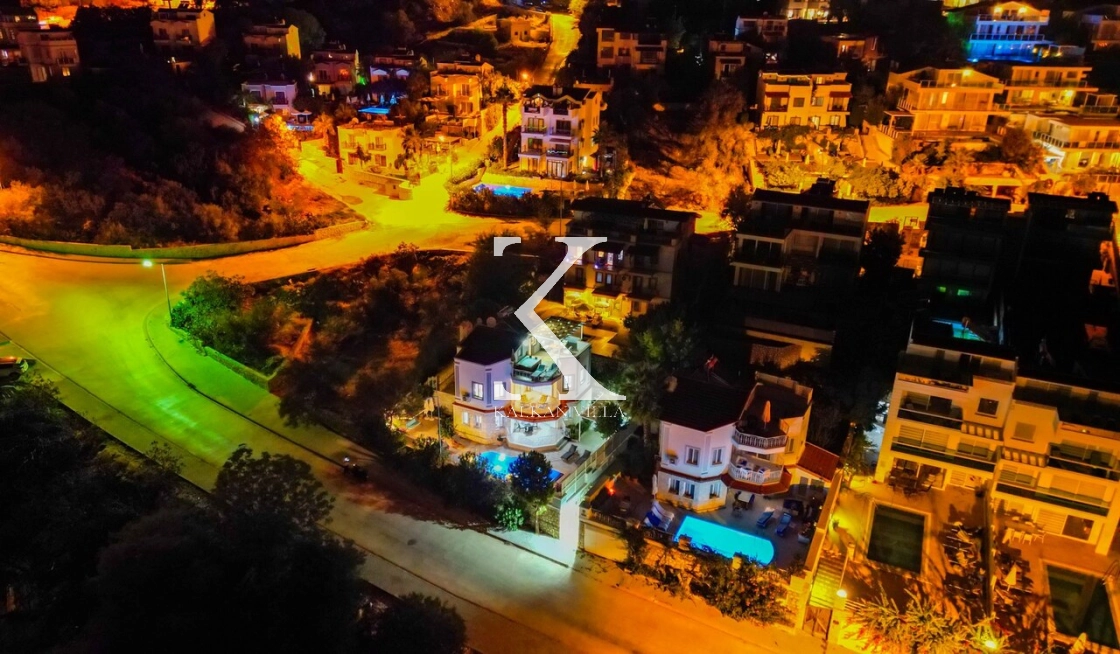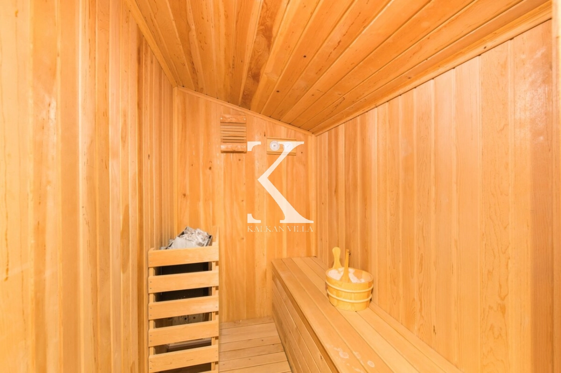 The villa features a spacious private garden, a sea-view jacuzzi, and a sauna, combining luxury and relaxation in one place. Its modern design, spacious living areas, and high-quality furnishings ensure a comfortable stay.