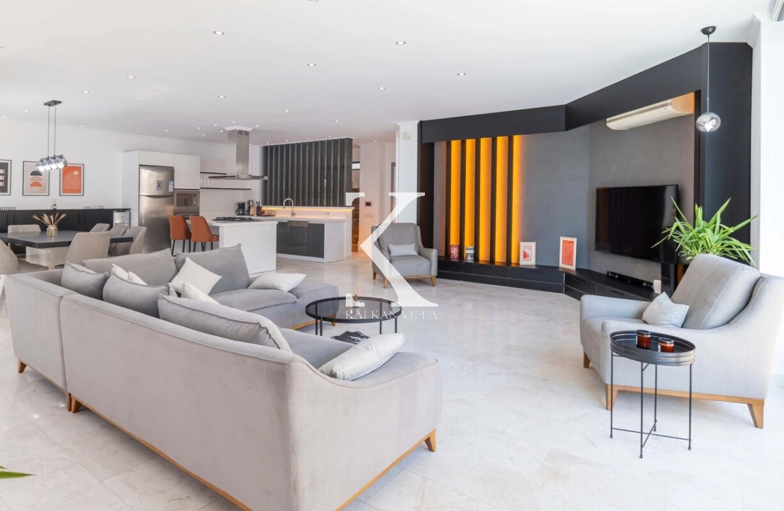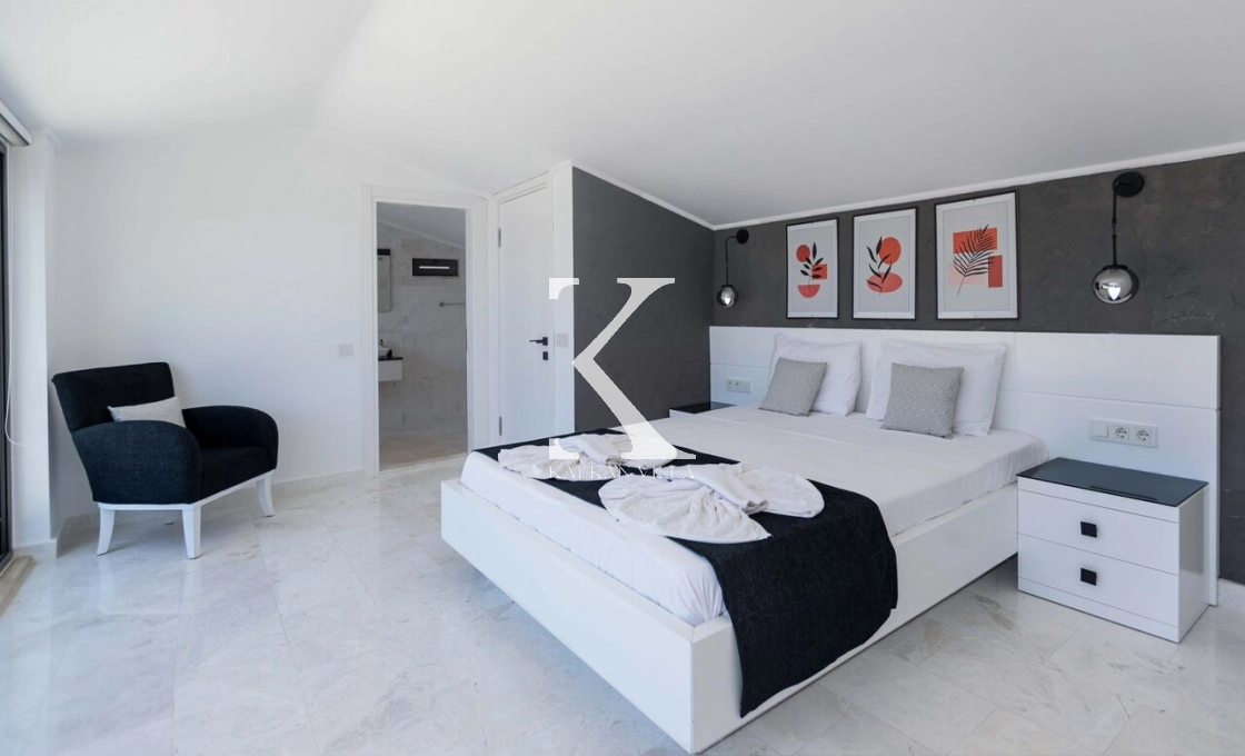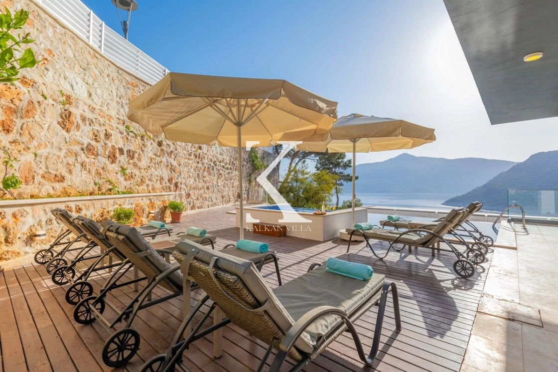 Located in Kalamar, one of the most prestigious areas of Kalkan, Villa Maris Kalamar offers an exceptional holiday experience with its breathtaking sea view and modern architectural design. With 5 bedrooms and a capacity of up to 10 guests, it is an ideal choice for large families and groups of friends.