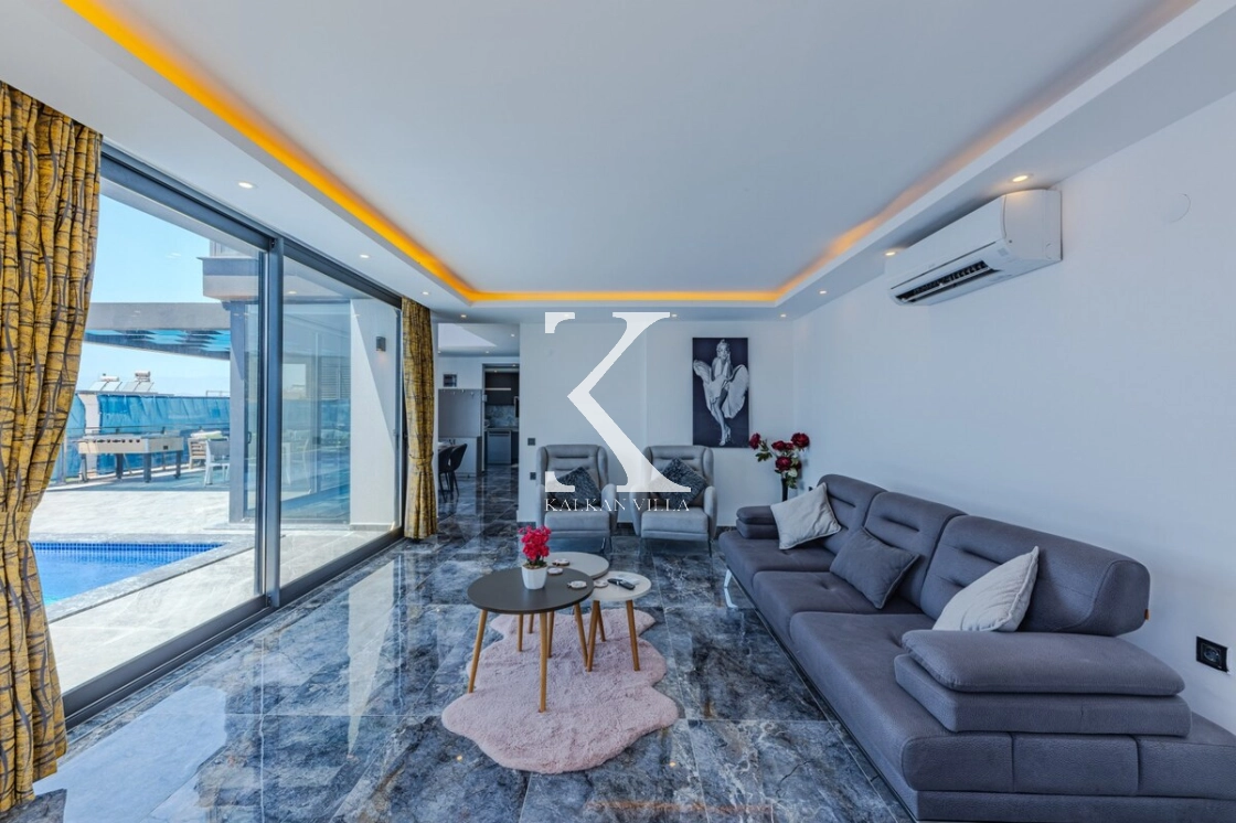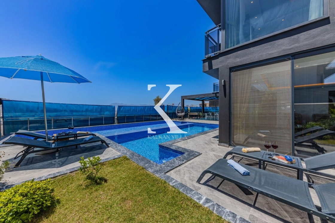 Villa Melida Trio is located in the peaceful Yeşilköy District of Kalkan and offers a quiet holiday experience surrounded by nature. Ideal for families and honeymooners with its 2-bedroom, 4-person accommodation capacity, this villa prioritizes your comfort with its modern and spacious interior design.
