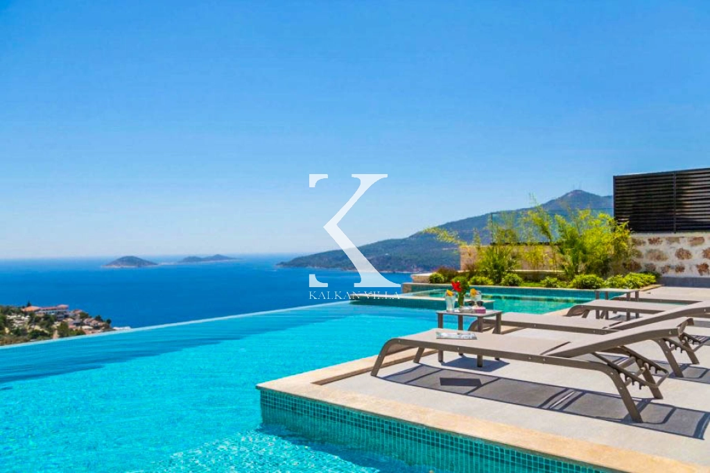 Villa Mirada 1 is a luxury holiday home built in 2019, located in Kalamar Region, Kalkan and offers accommodation capacity for 10 people with 5 bedrooms. It offers a perfect accommodation option for large families and groups of friends, accompanied by the fascinating sea view of Kalamar Bay. It is an ideal choice for those who want to rent a villa close to the sea and the center, as it is 2 km away from the beach, market, cafe, restaurant, shopping mall and entertainment venues.