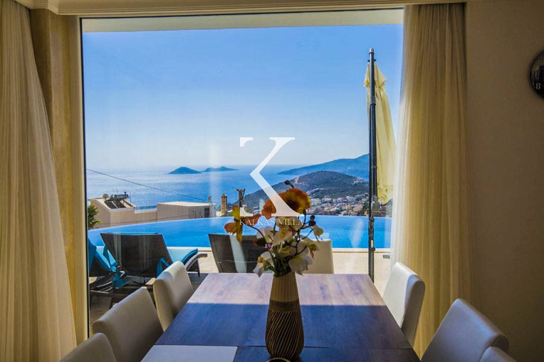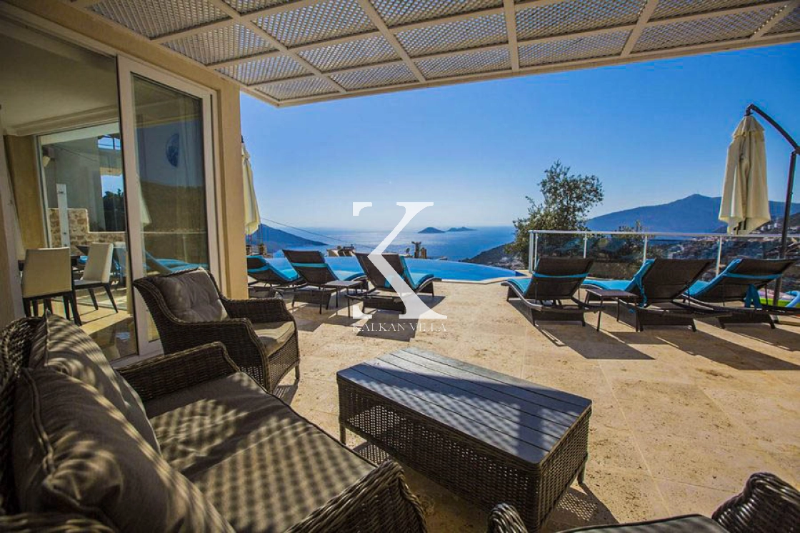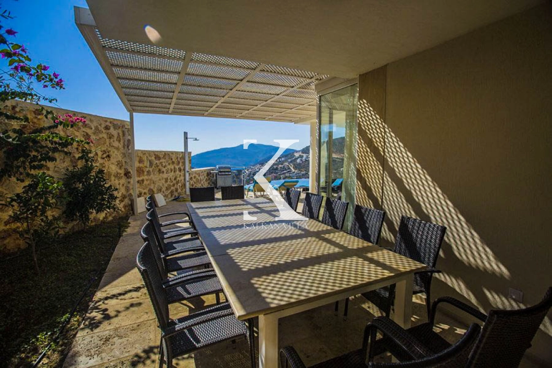 The villa is located approximately 5 minutes from Kalkan town center, allowing guests to enjoy both easy access to the town and a peaceful holiday environment.