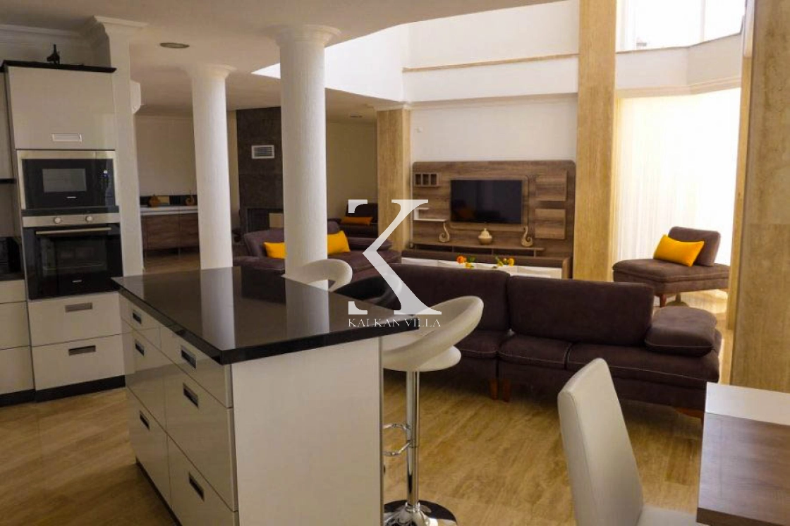 The living room of the villa is designed to provide maximum comfort. Its spacious layout and large windows allow natural light to fill the room throughout the day.