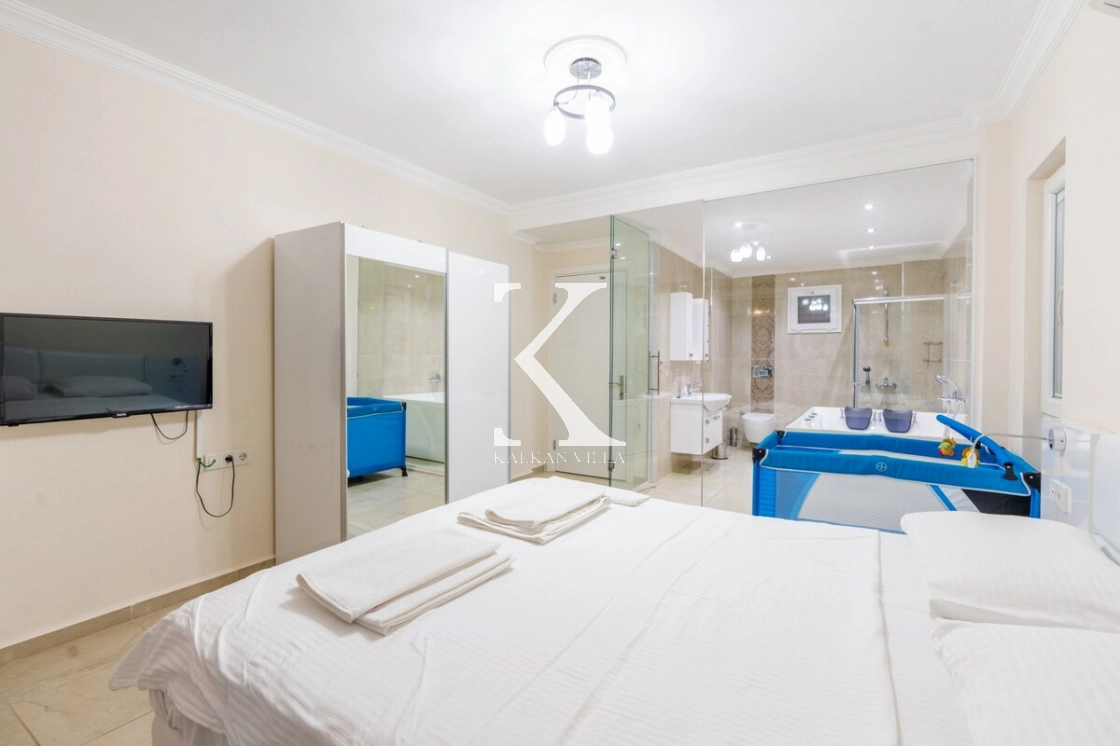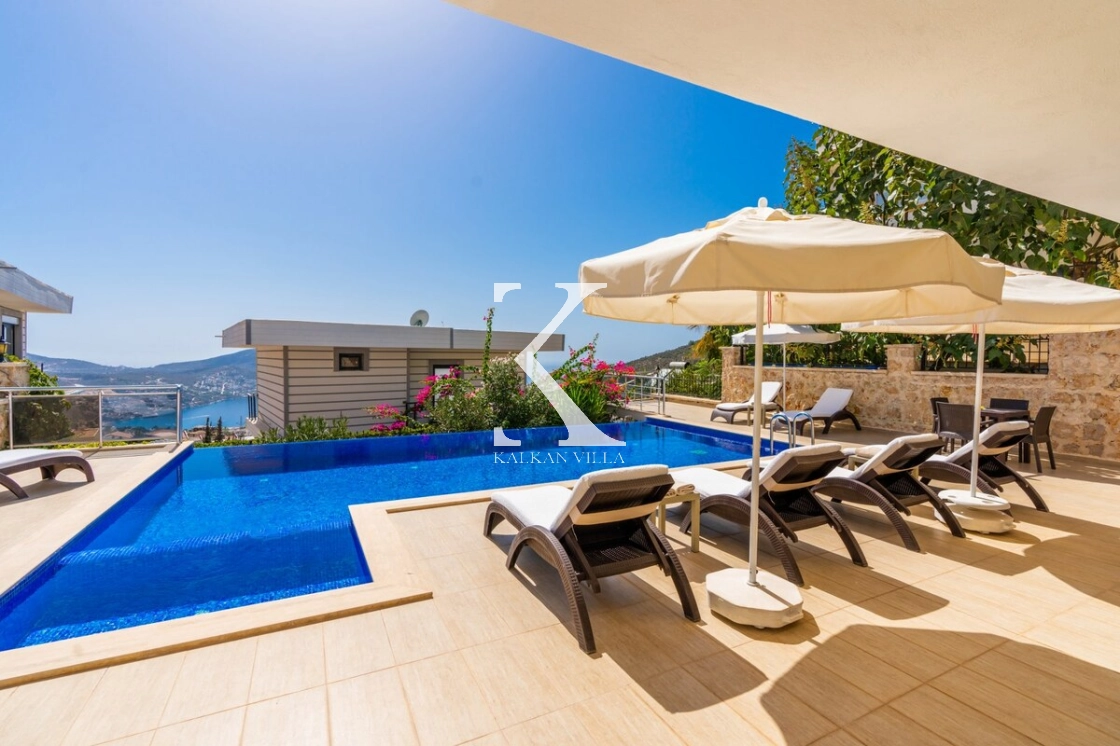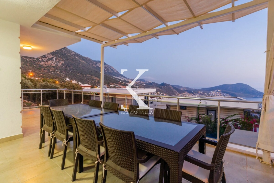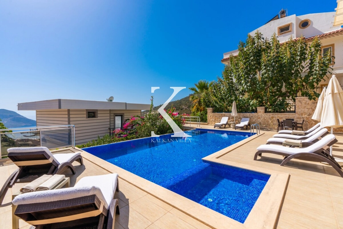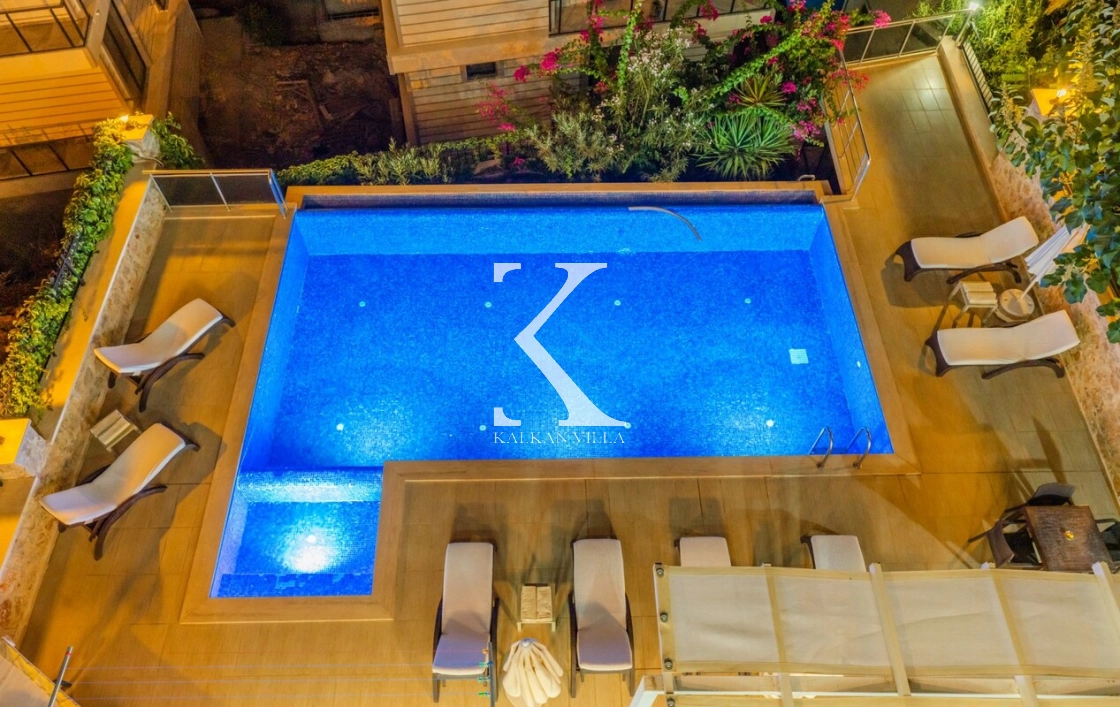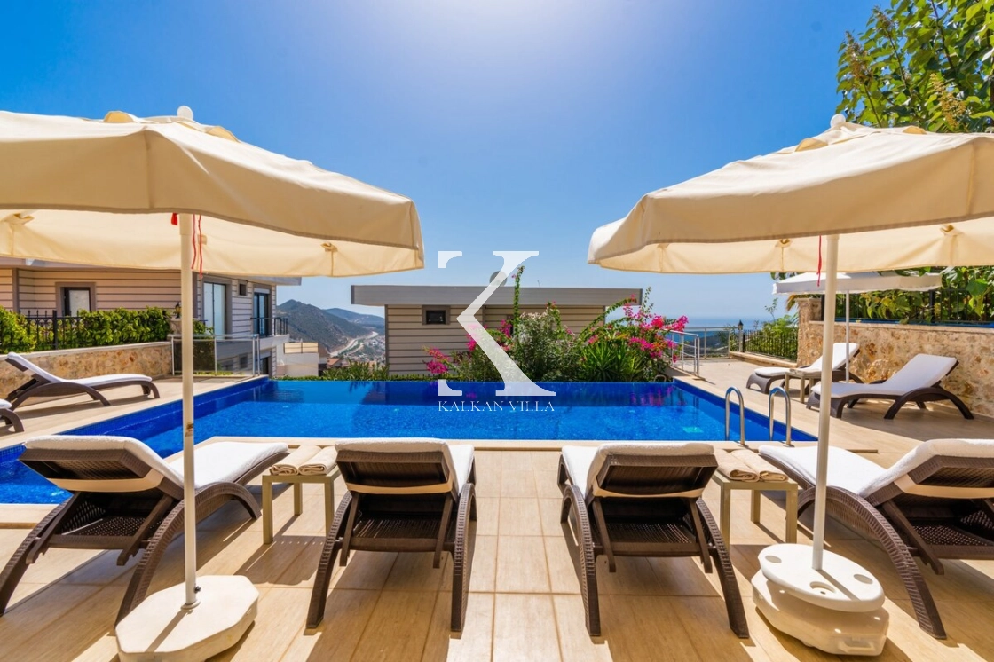 Villa Optimum is a luxury holiday home located in Kalkan Ortaalan Region, where you can enjoy uninterrupted views of the fascinating sea and city. With 5 bedrooms and a capacity of 10 people, this villa is ideal for large families and groups of friends, and promises unforgettable memories to its guests with its elegant and contemporary design.