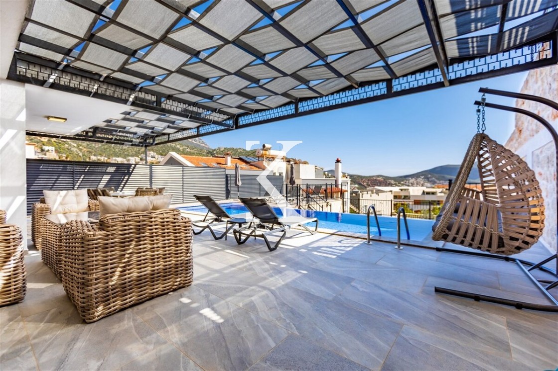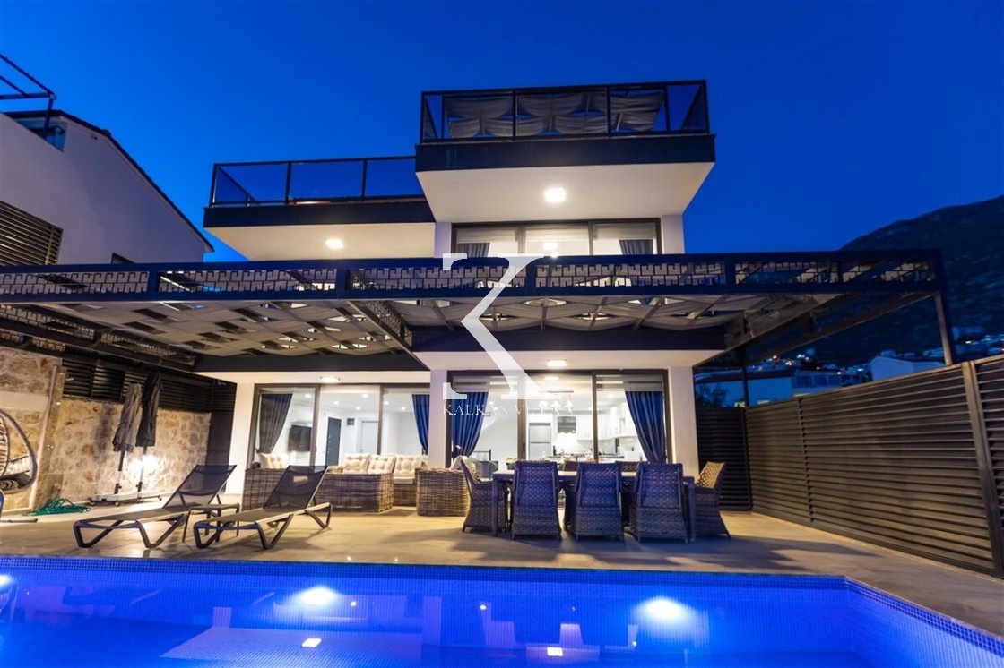 Villa Royal Hills 1 is a modern, 5-bedroom, private villa with a capacity of 10 people, located in the center of Kalkan, offering both sea and city views.