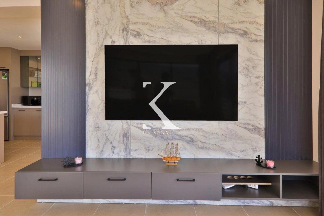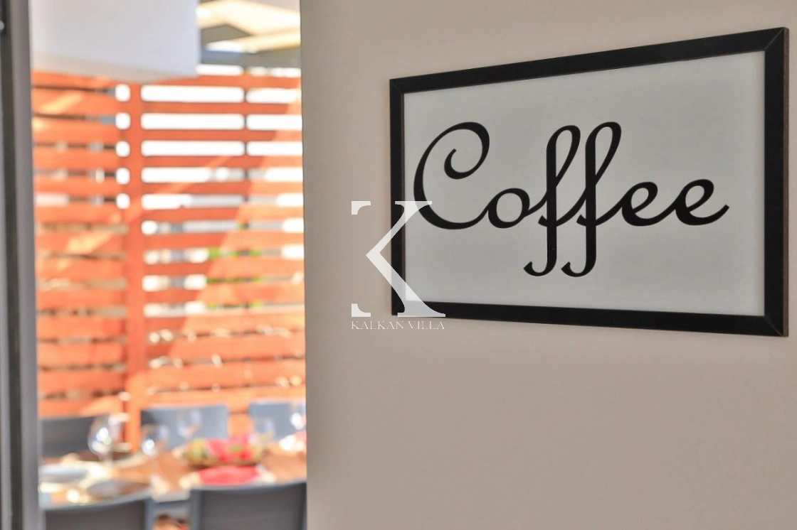 The villa features a private and secluded garden with a swimming pool, sun loungers, seating area, outdoor dining table and barbecue. Inside, the villa is furnished with modern luxury details. One bedroom includes a private fitness & entertainment area with a billiard table, treadmill, dumbbells and pull-up bar. Additionally, a jacuzzi in one bedroom and on the terrace adds comfort and relaxation to your holiday.