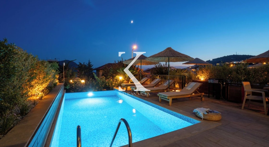 Located in the heart of Kalkan, within walking distance of the beach, markets, restaurants, and cafes, Villa Sole Sidyma stands out with its central location and sea views. With 3 bedrooms and a capacity of 6, it’s ideal for small families and groups of friends. The garden features a private pool, seating area, dining table, and barbecue.
