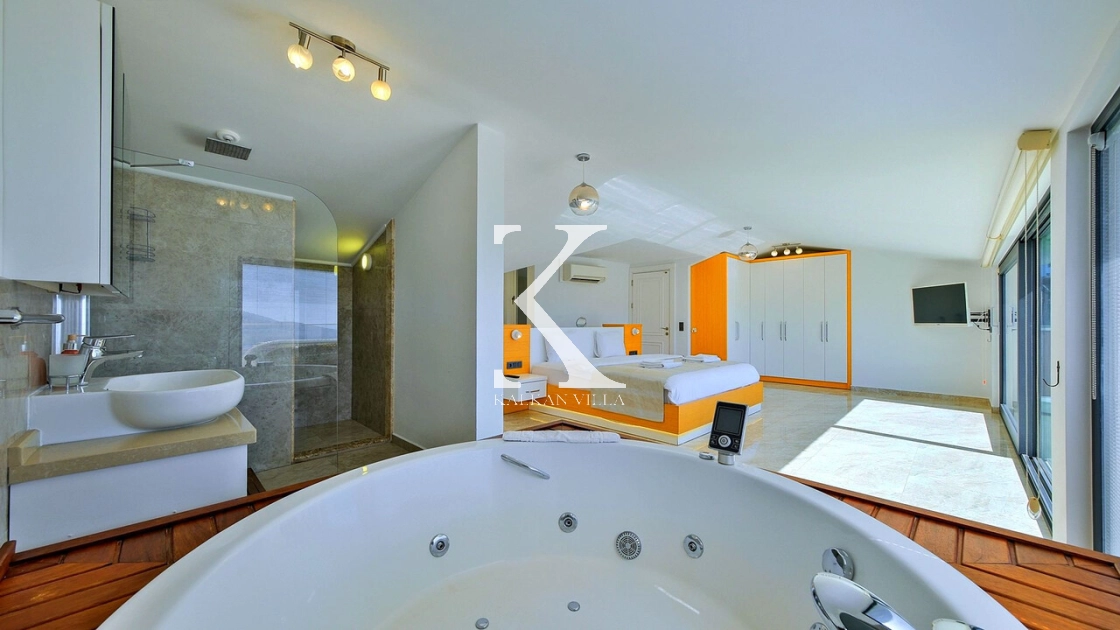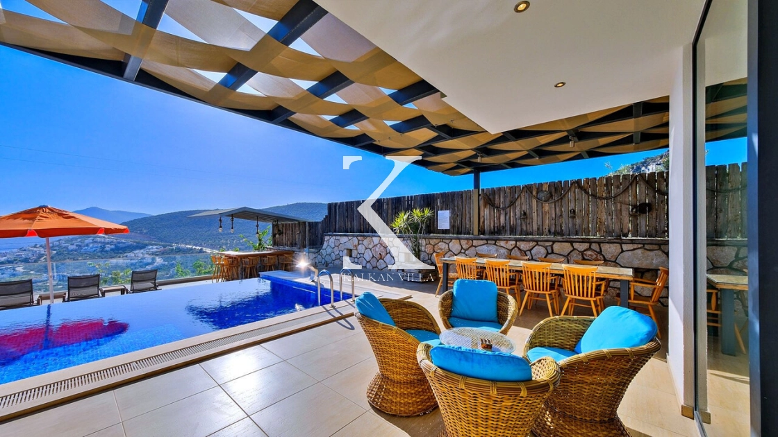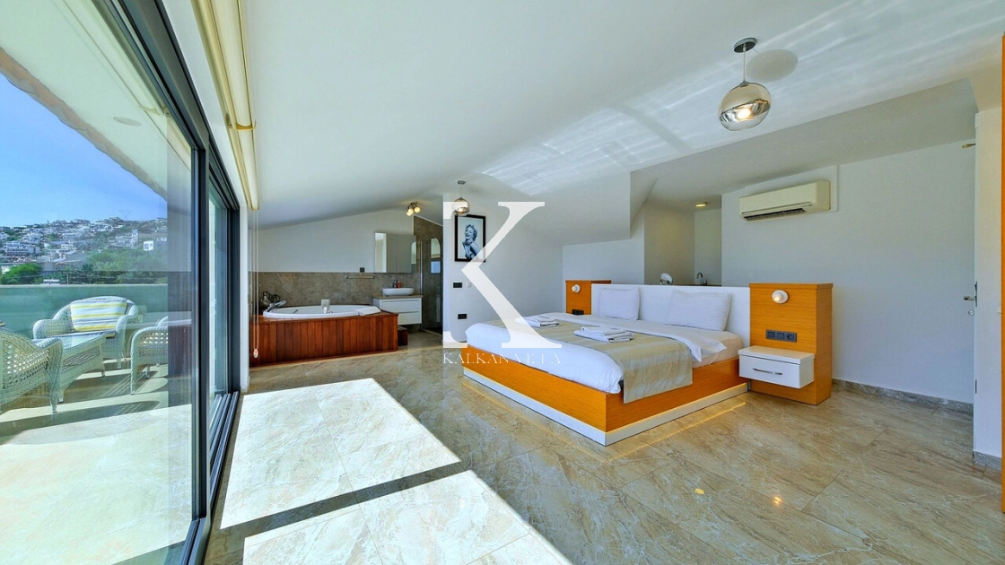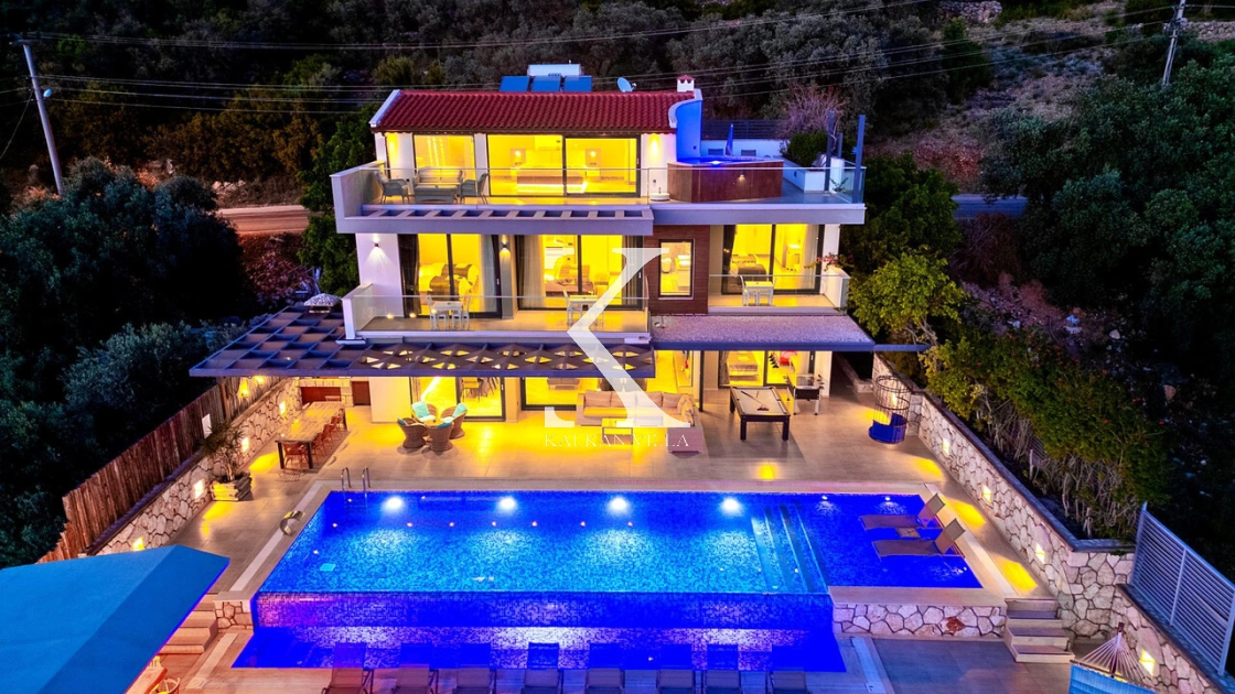 Villa Topcu Duo is a stylish and comfortable holiday villa located in the Kızıltaş area of Kalkan. With 5 bedrooms, 5 bathrooms, and a capacity of up to 10 guests, it is an excellent choice for large families and groups of friends seeking a relaxing and private getaway.